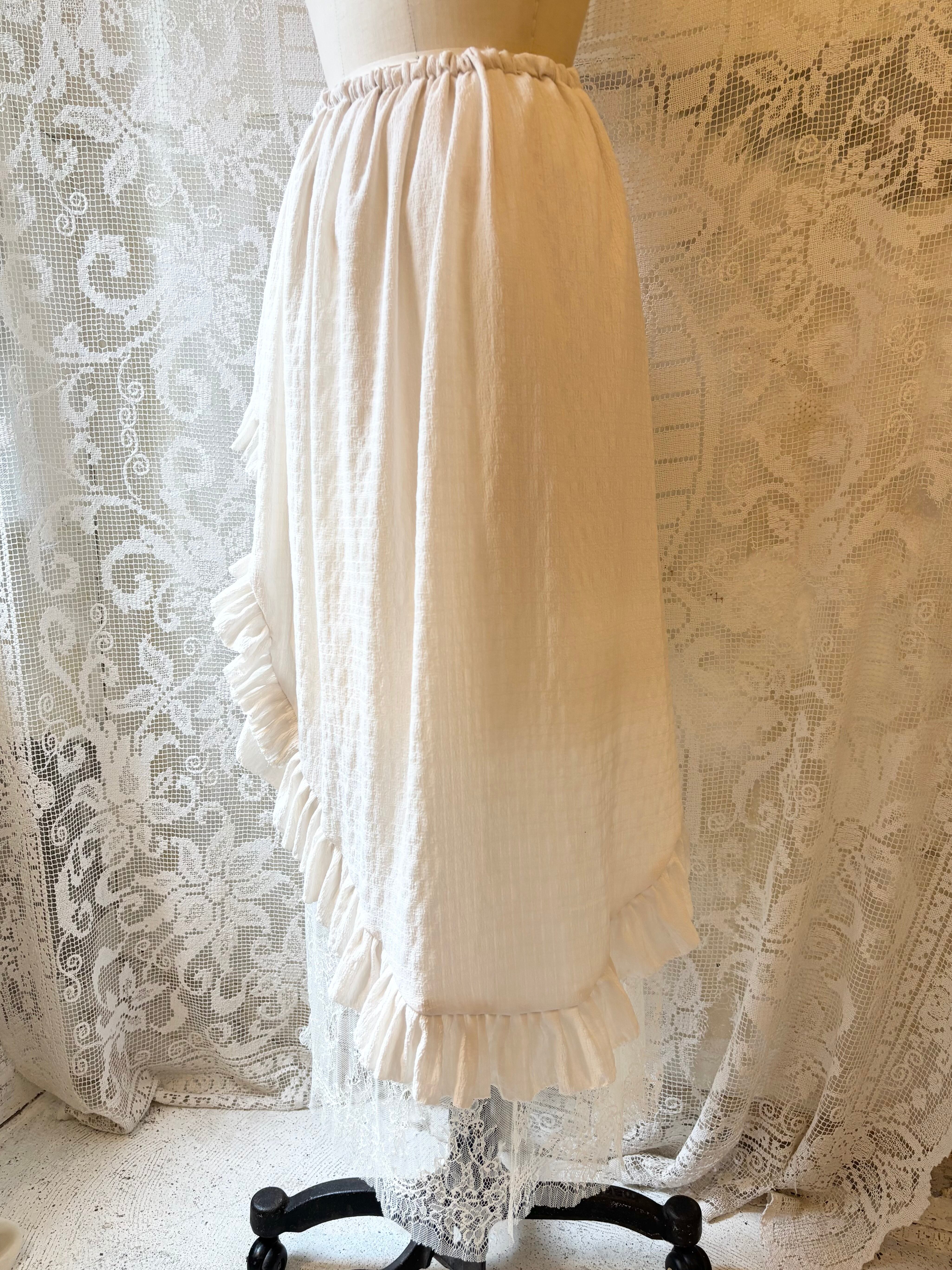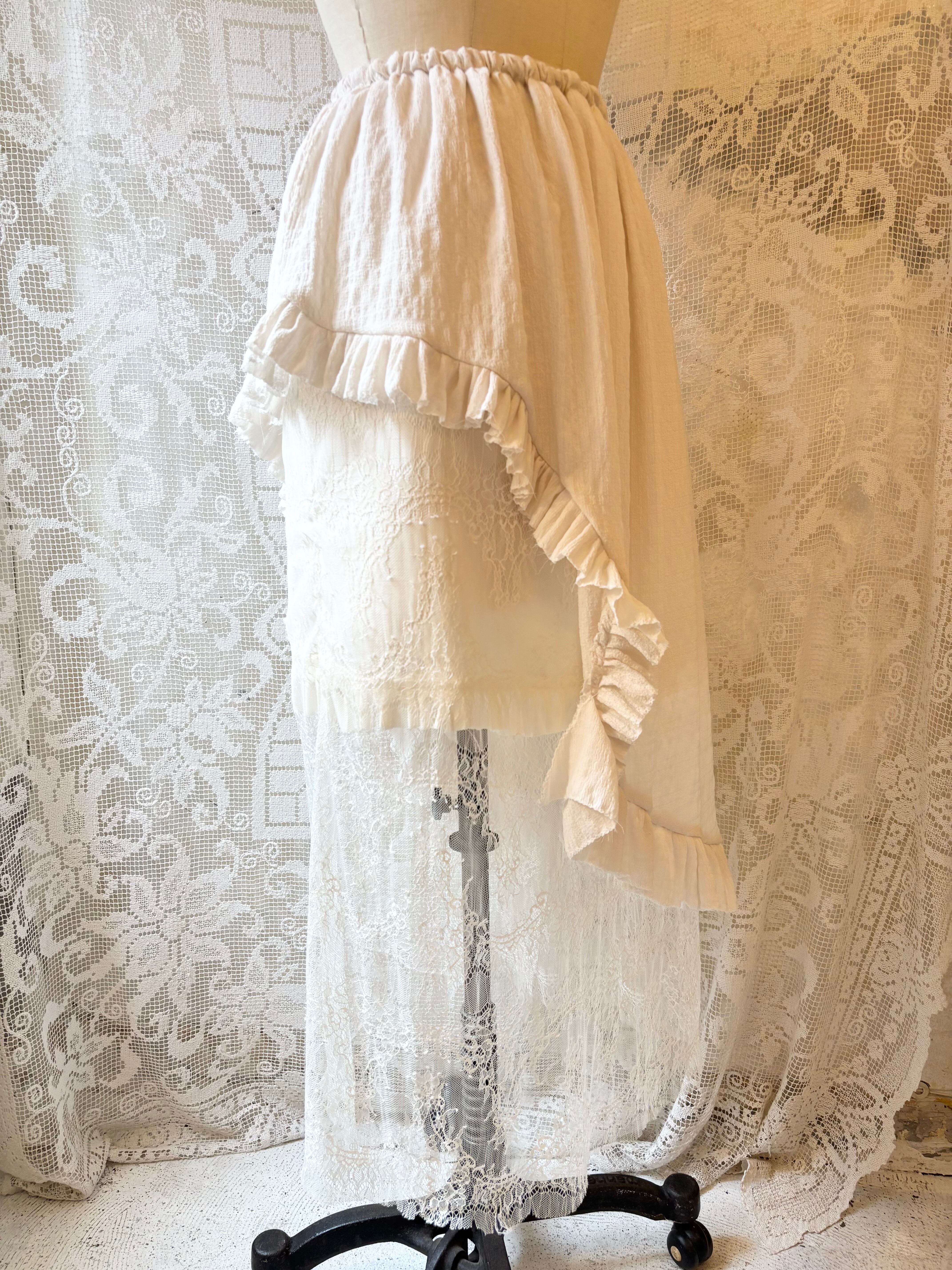柔らかい生成り色の生地をベースにいろいろな種類のコットン、レース、チュール素材を贅沢に使用していてとても綺麗です。