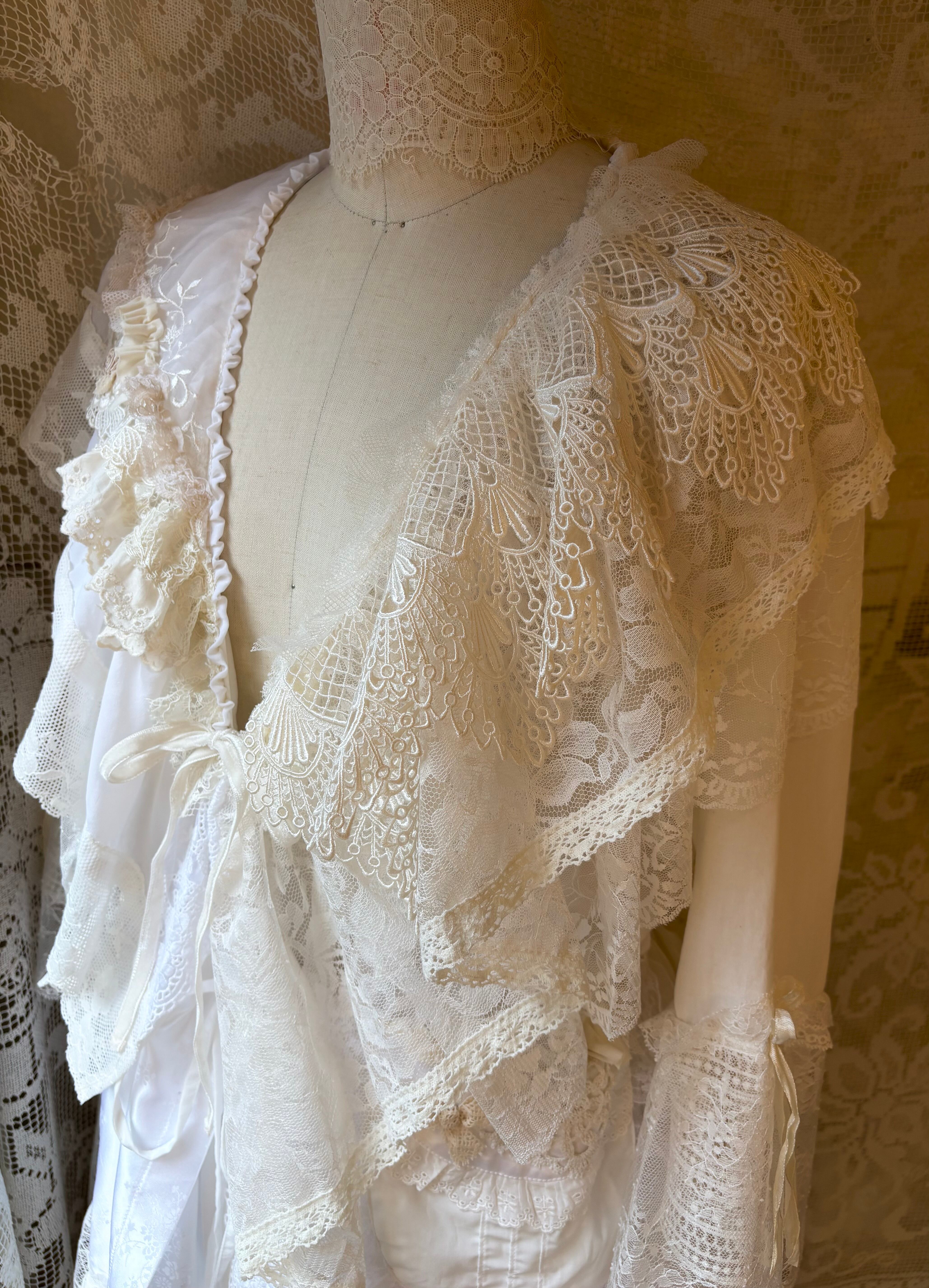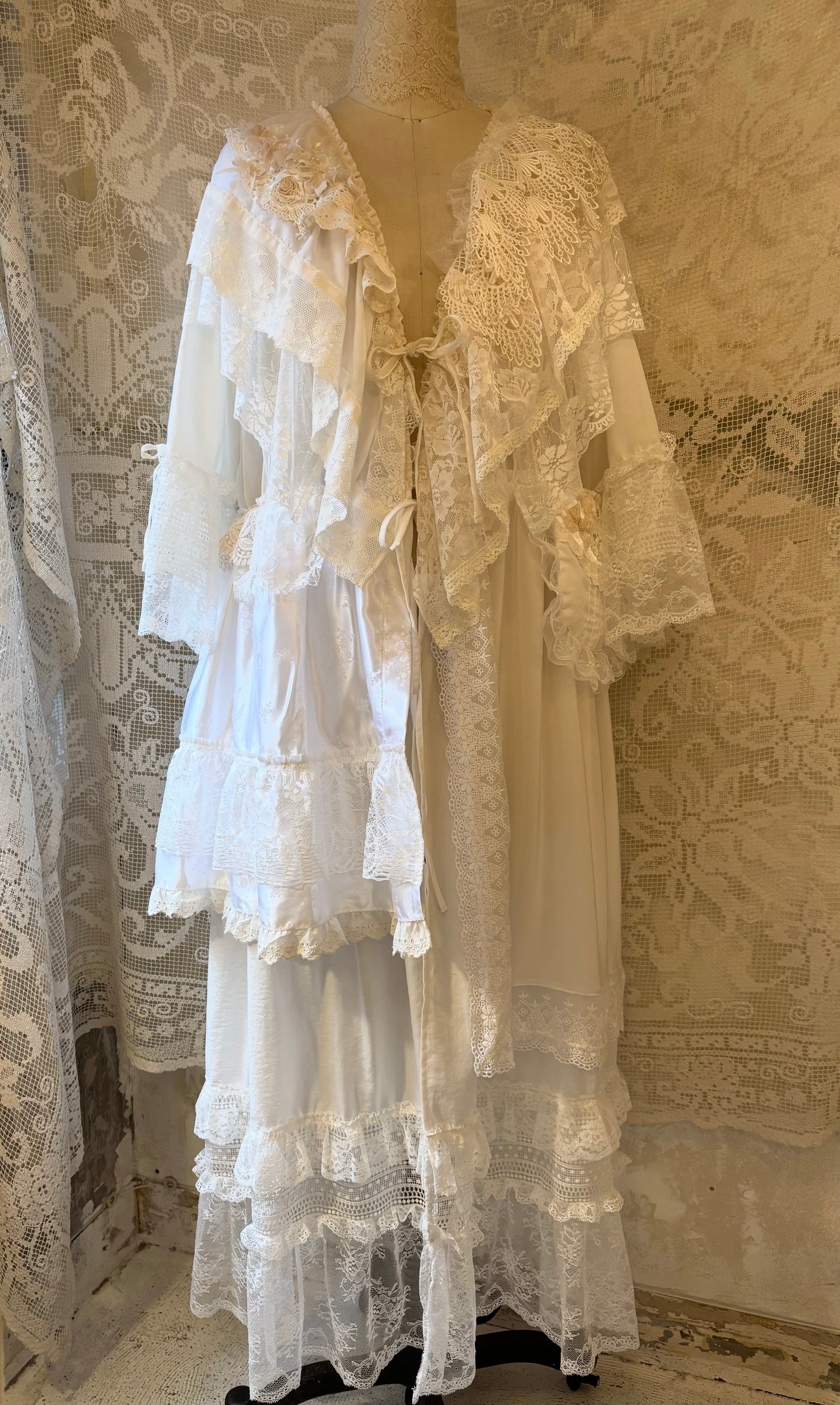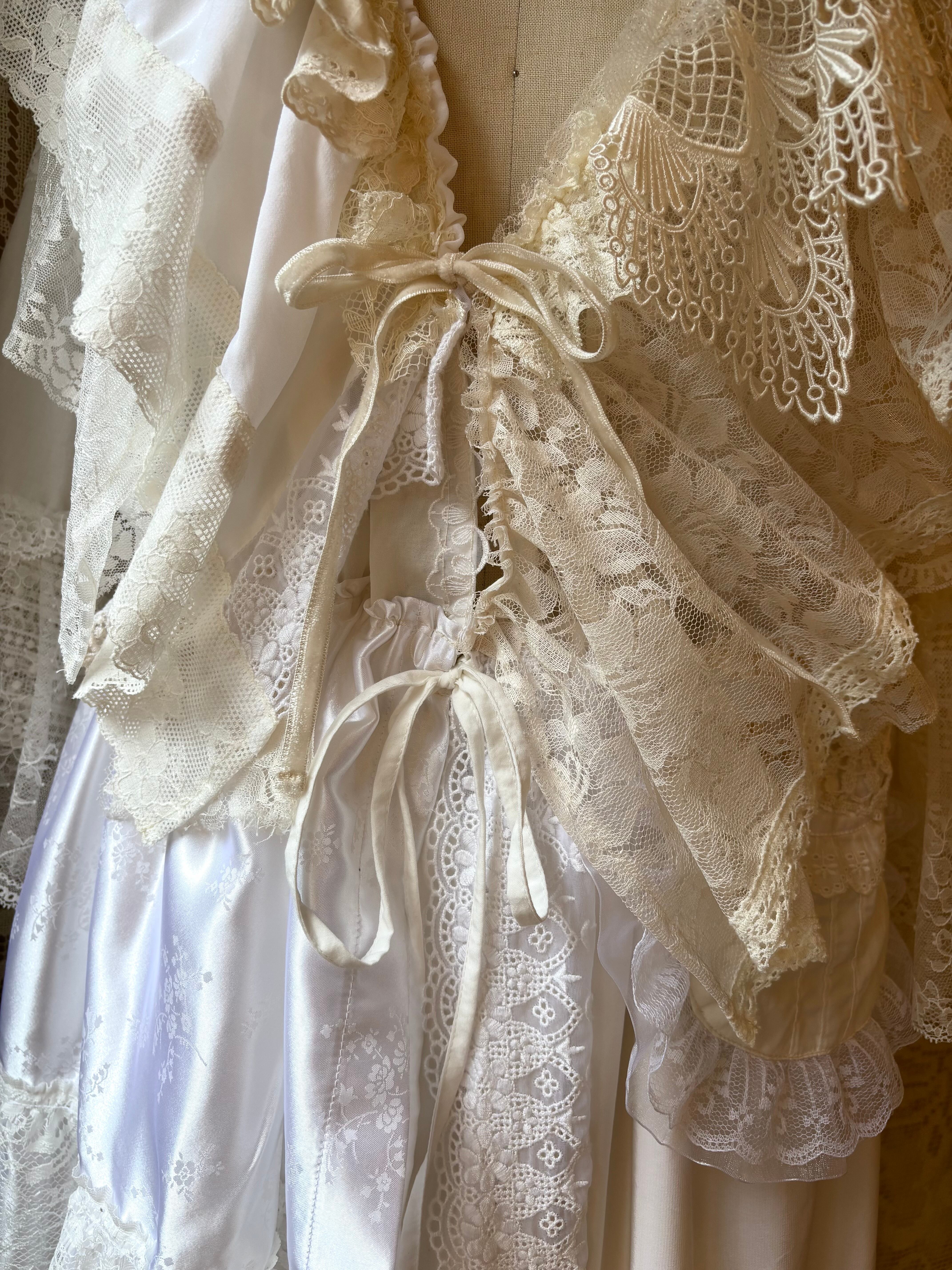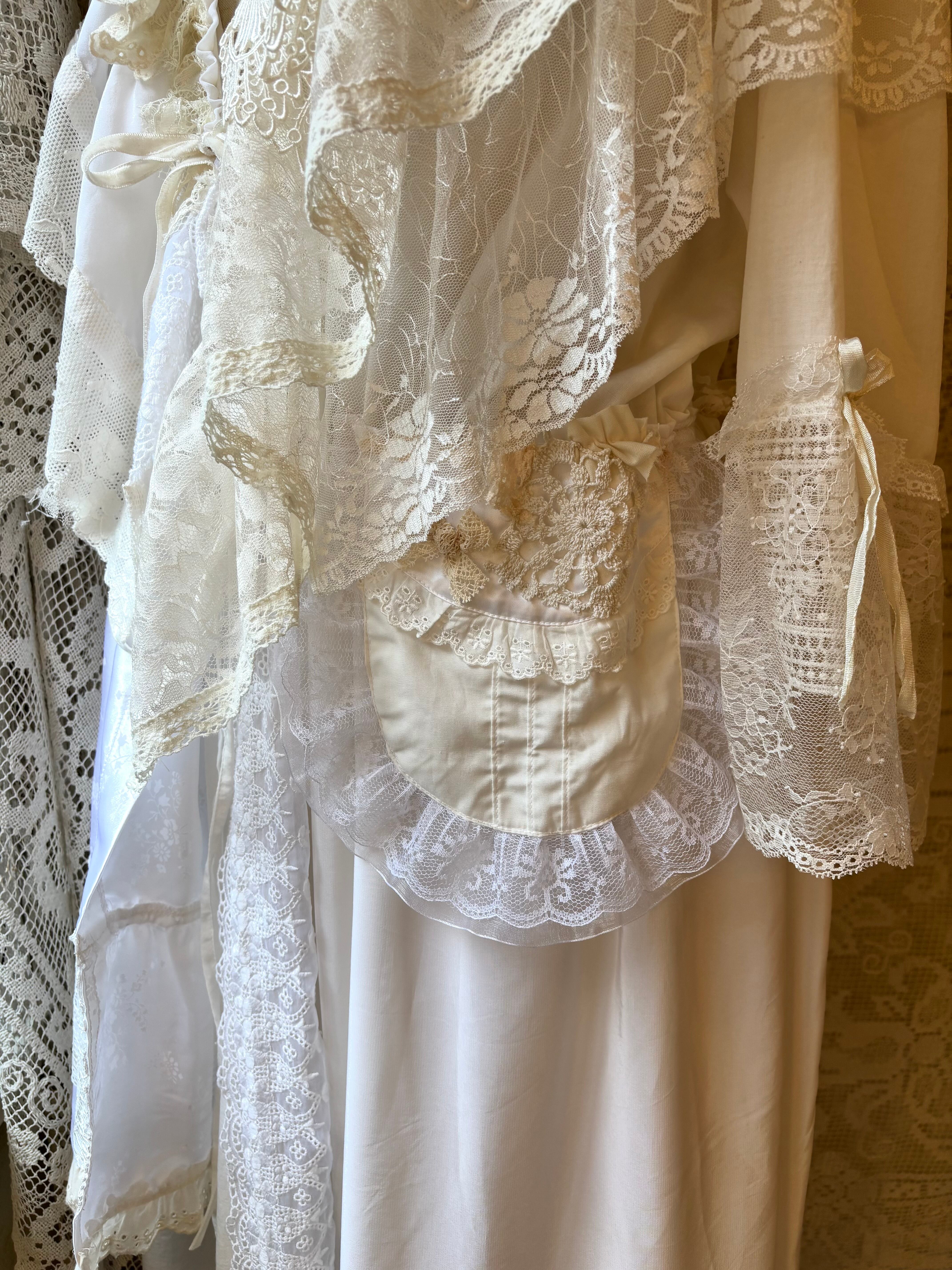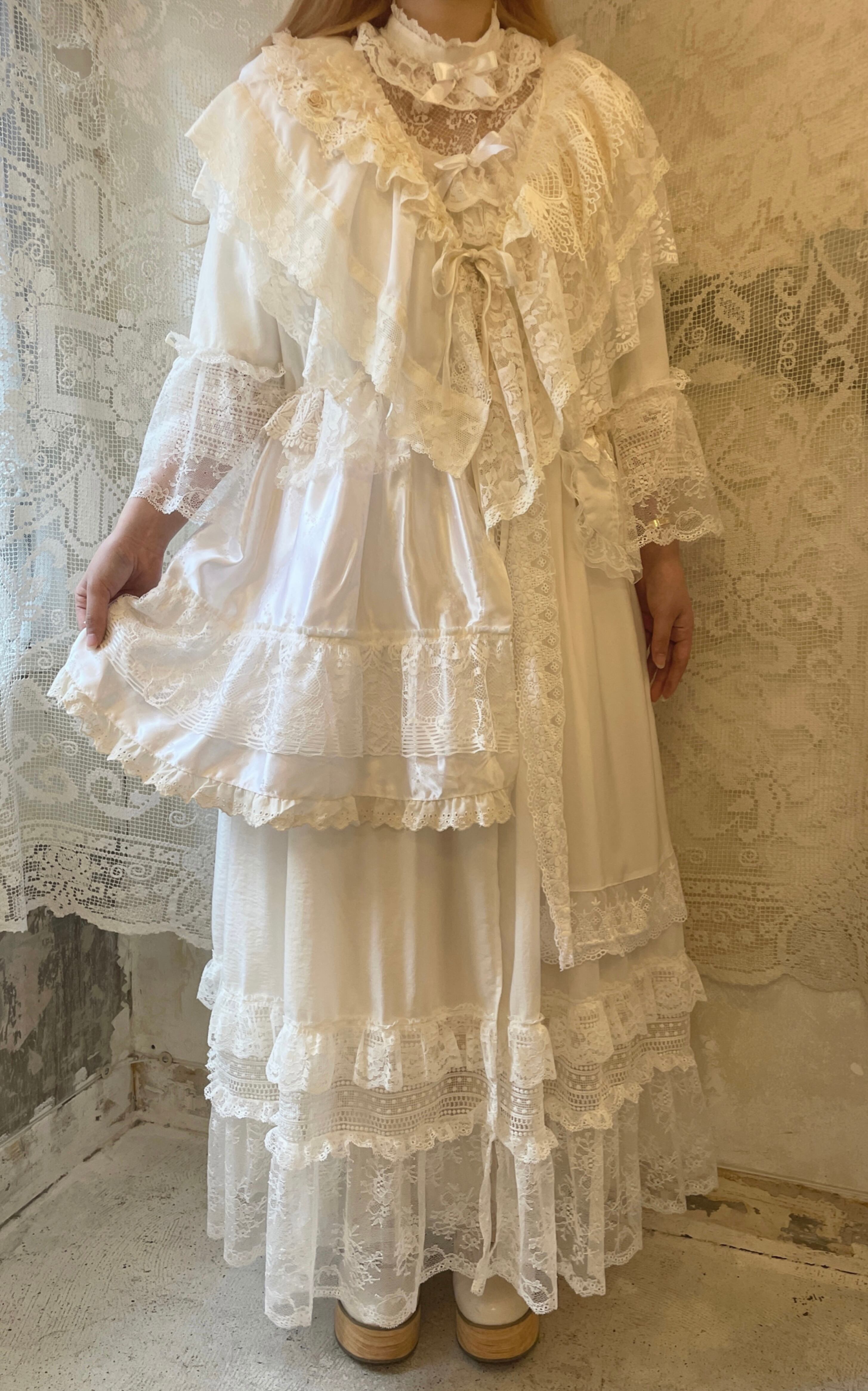 vintageのレースや古着のかけら等をたっぷり装飾したリメイクレースガウン