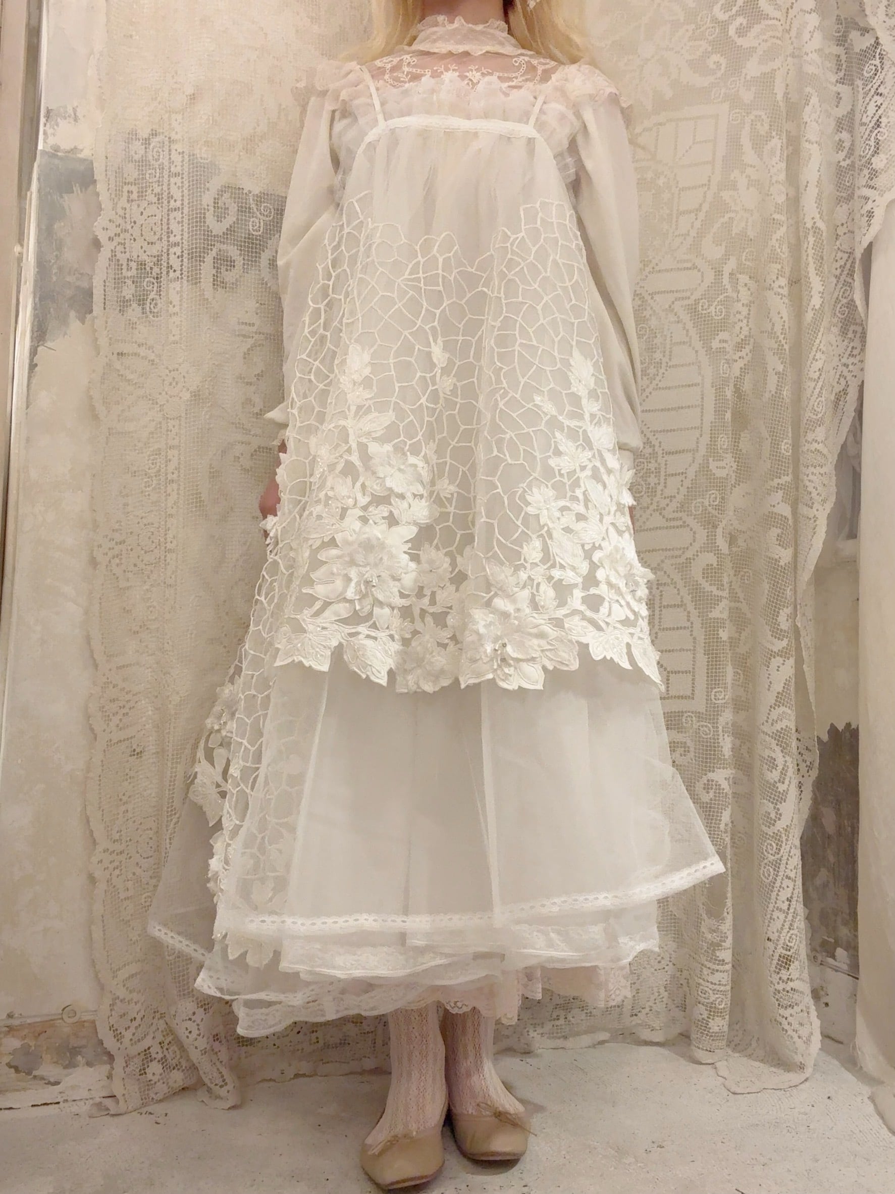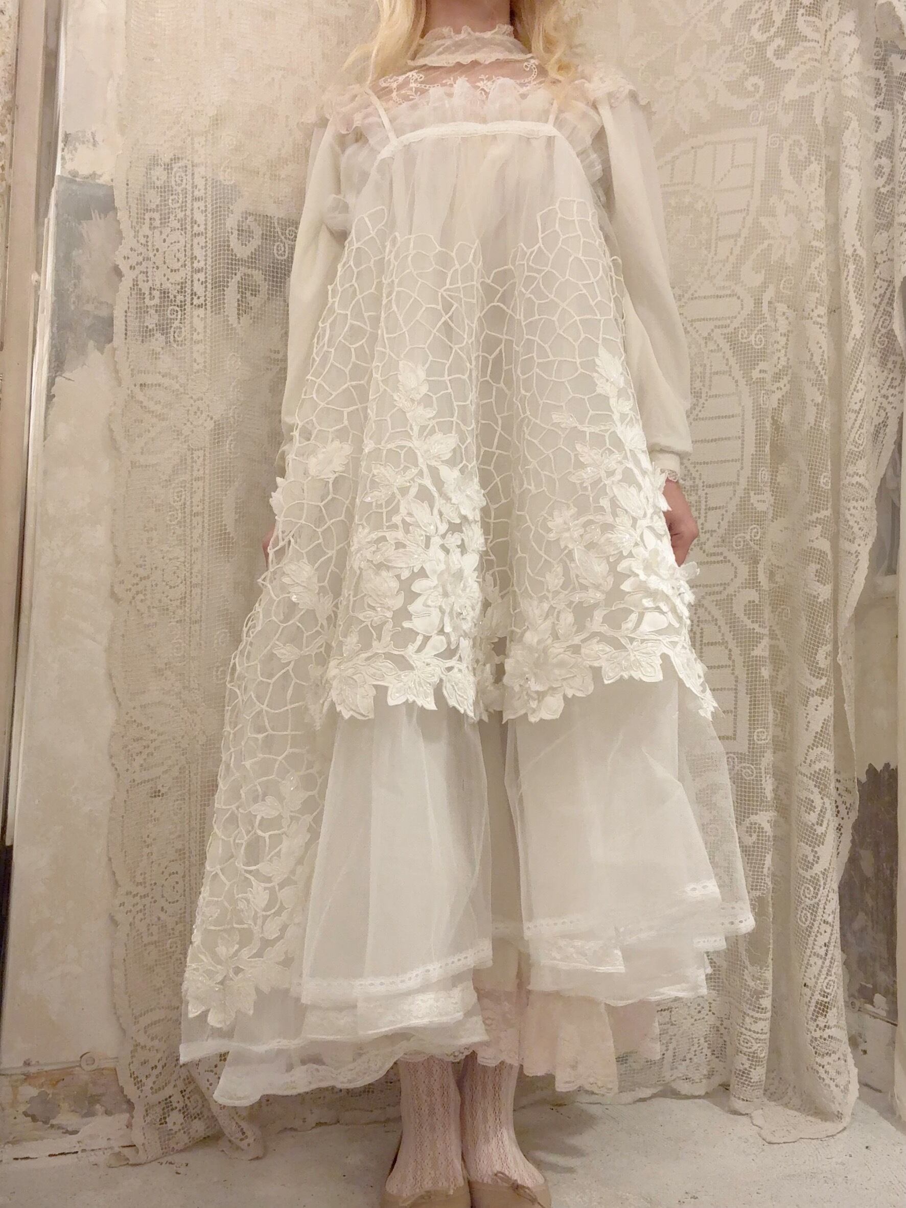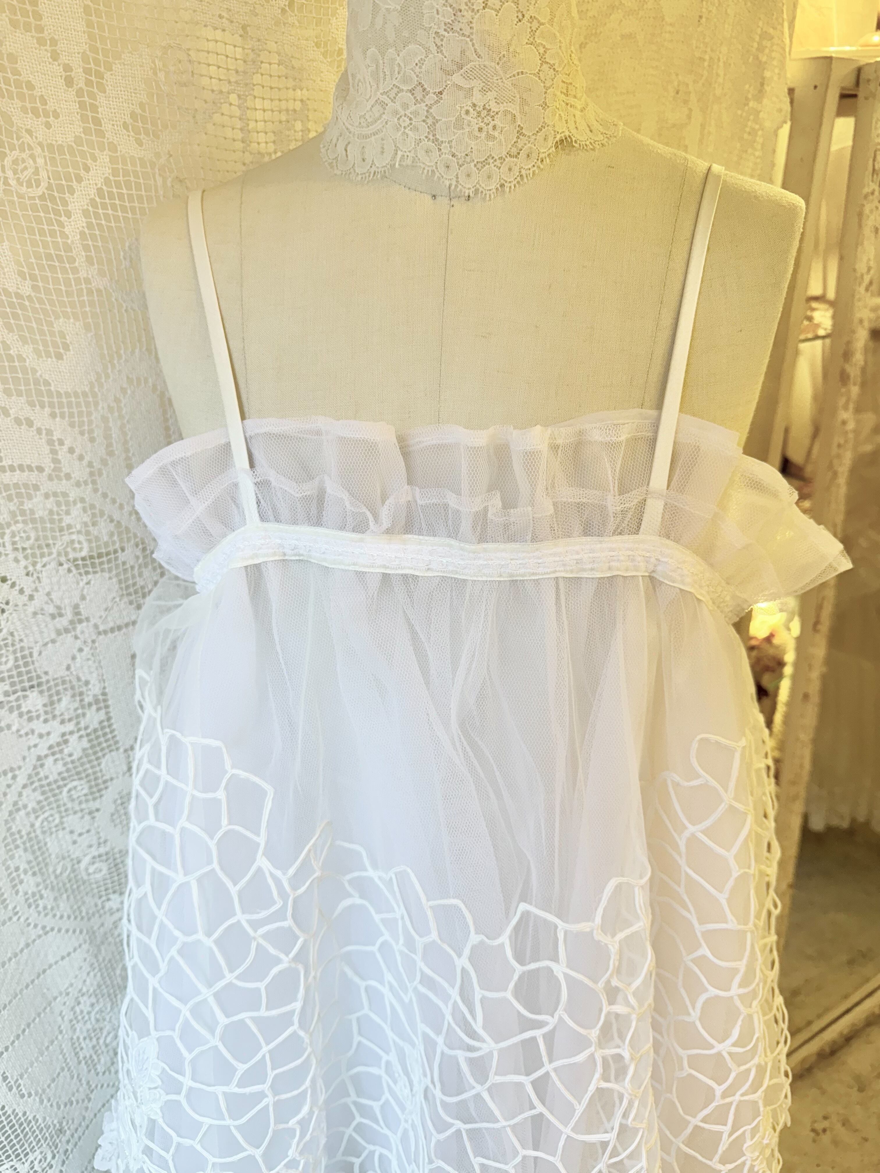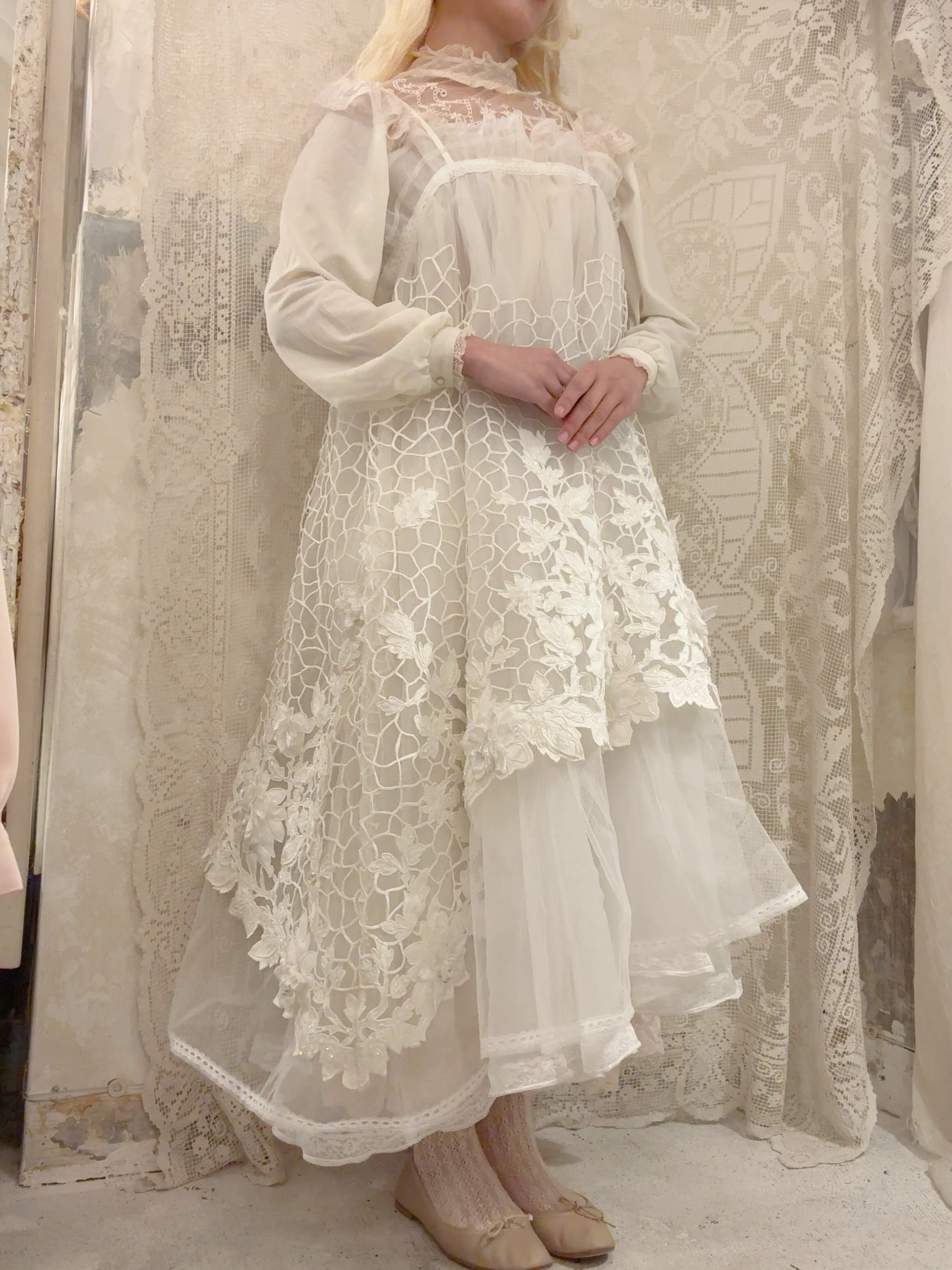 ボリュームシルエットが可愛いHURRY TO ITOのwhite sheer one-piece。