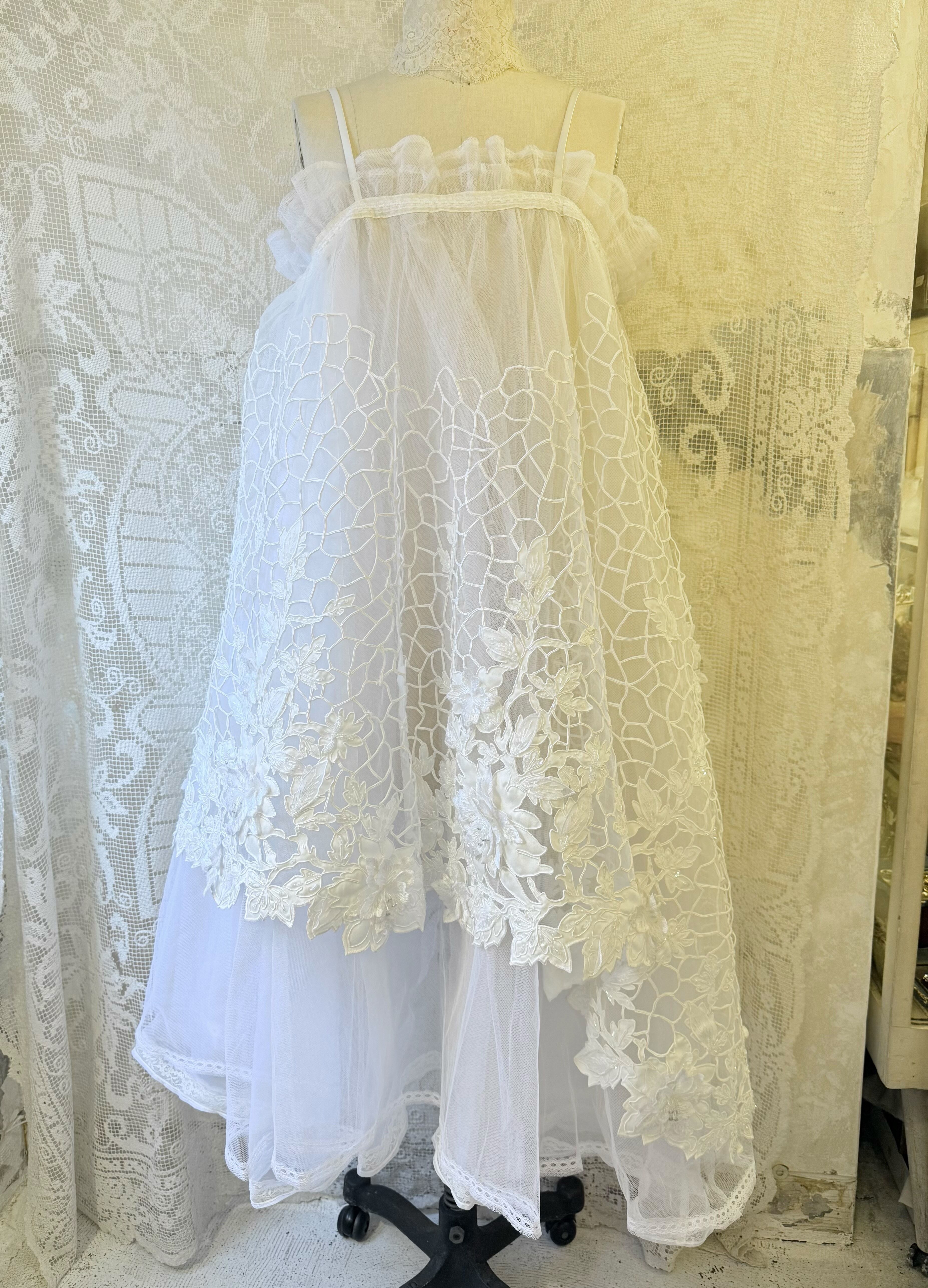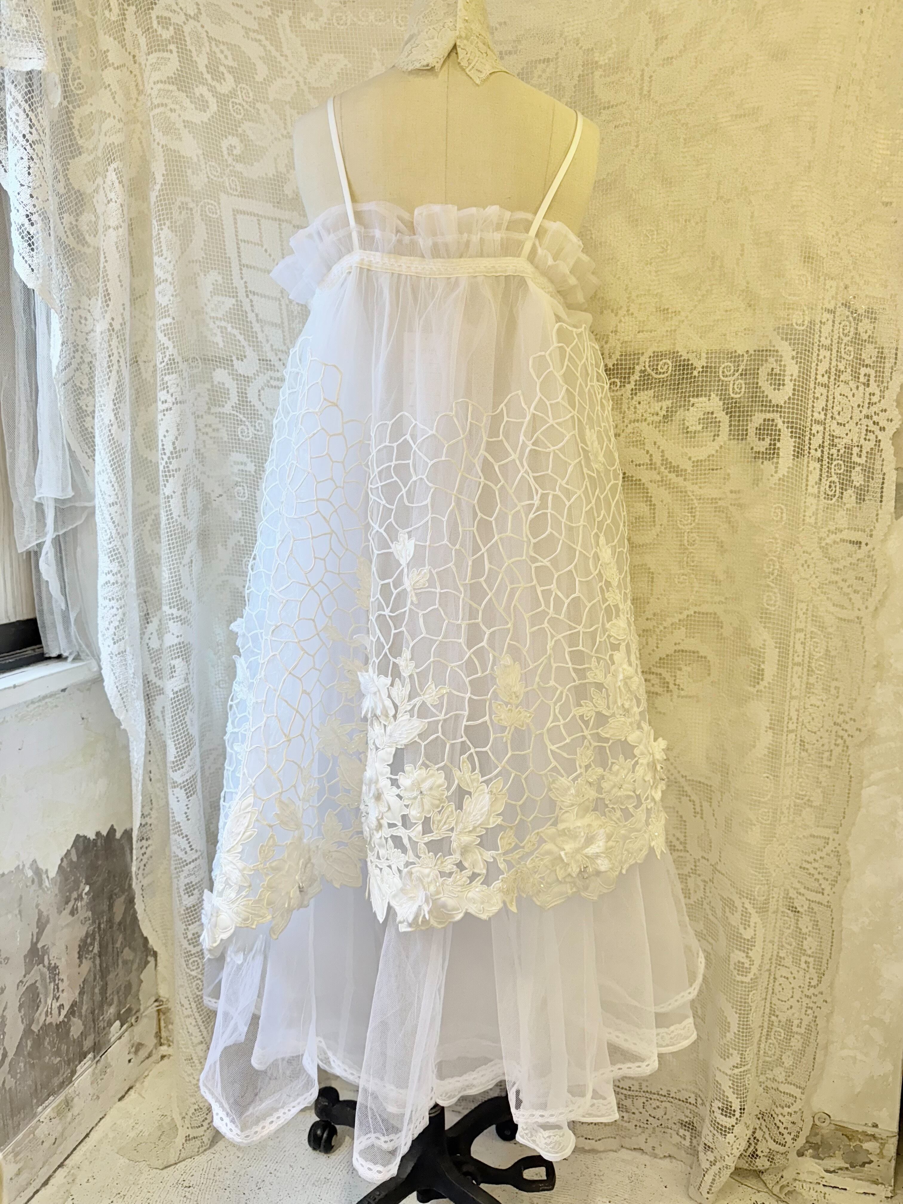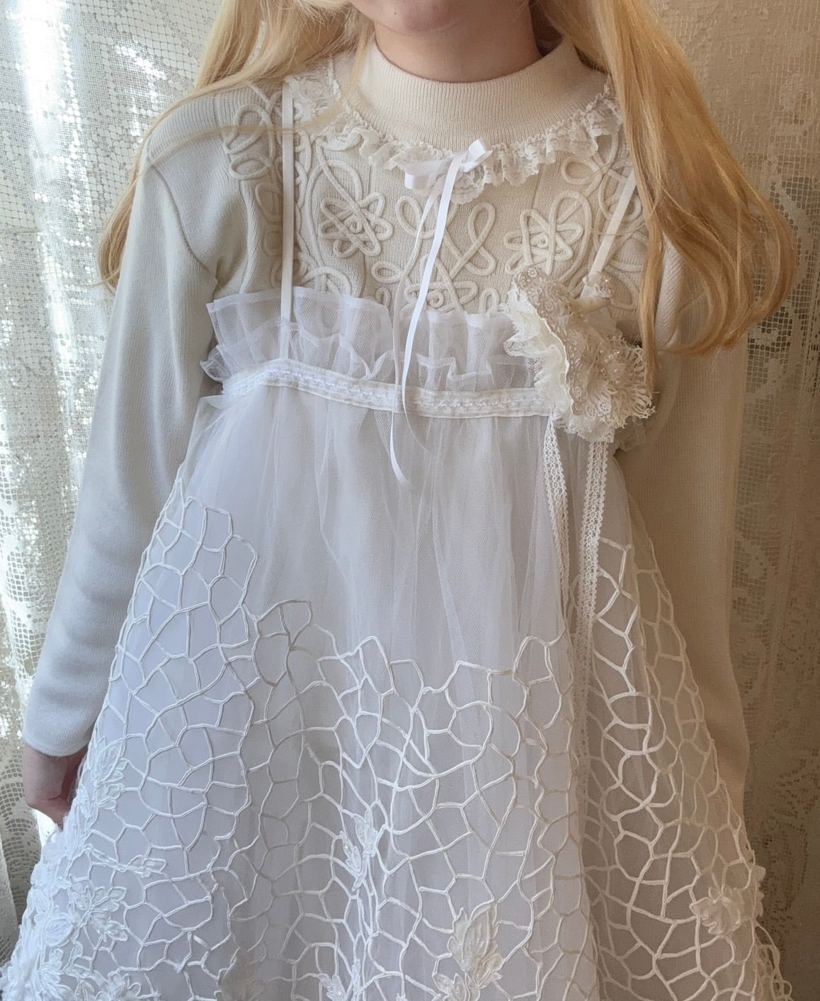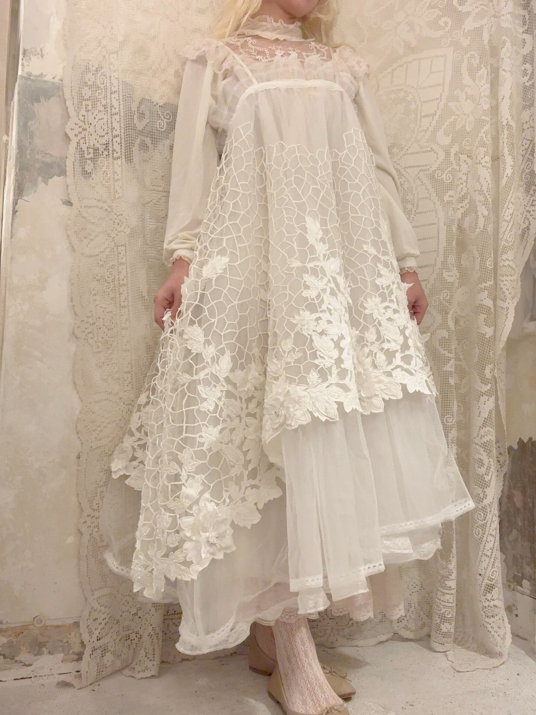 ボリュームシルエットが可愛いHURRY TO ITOのwhite sheer one-piece。