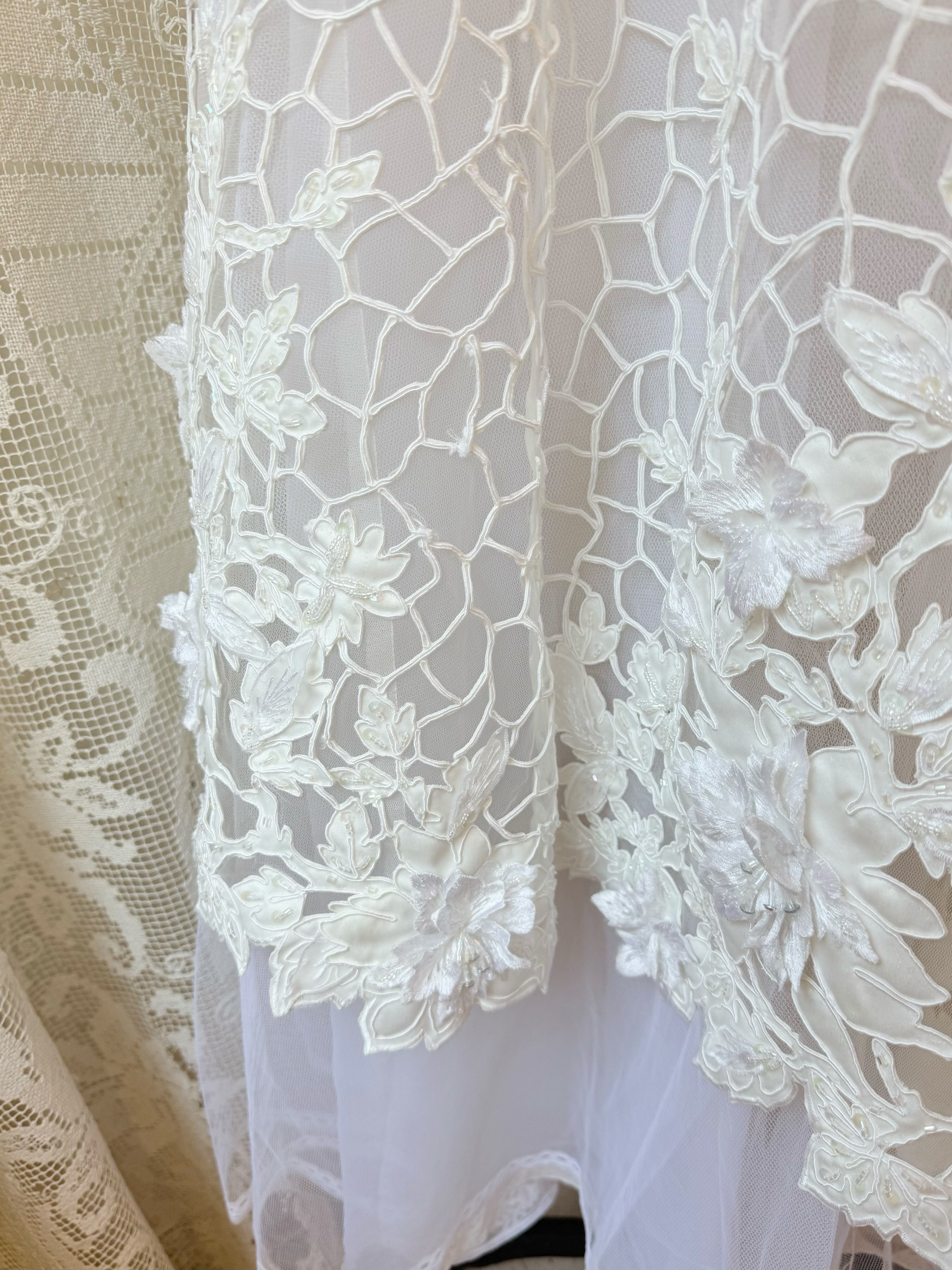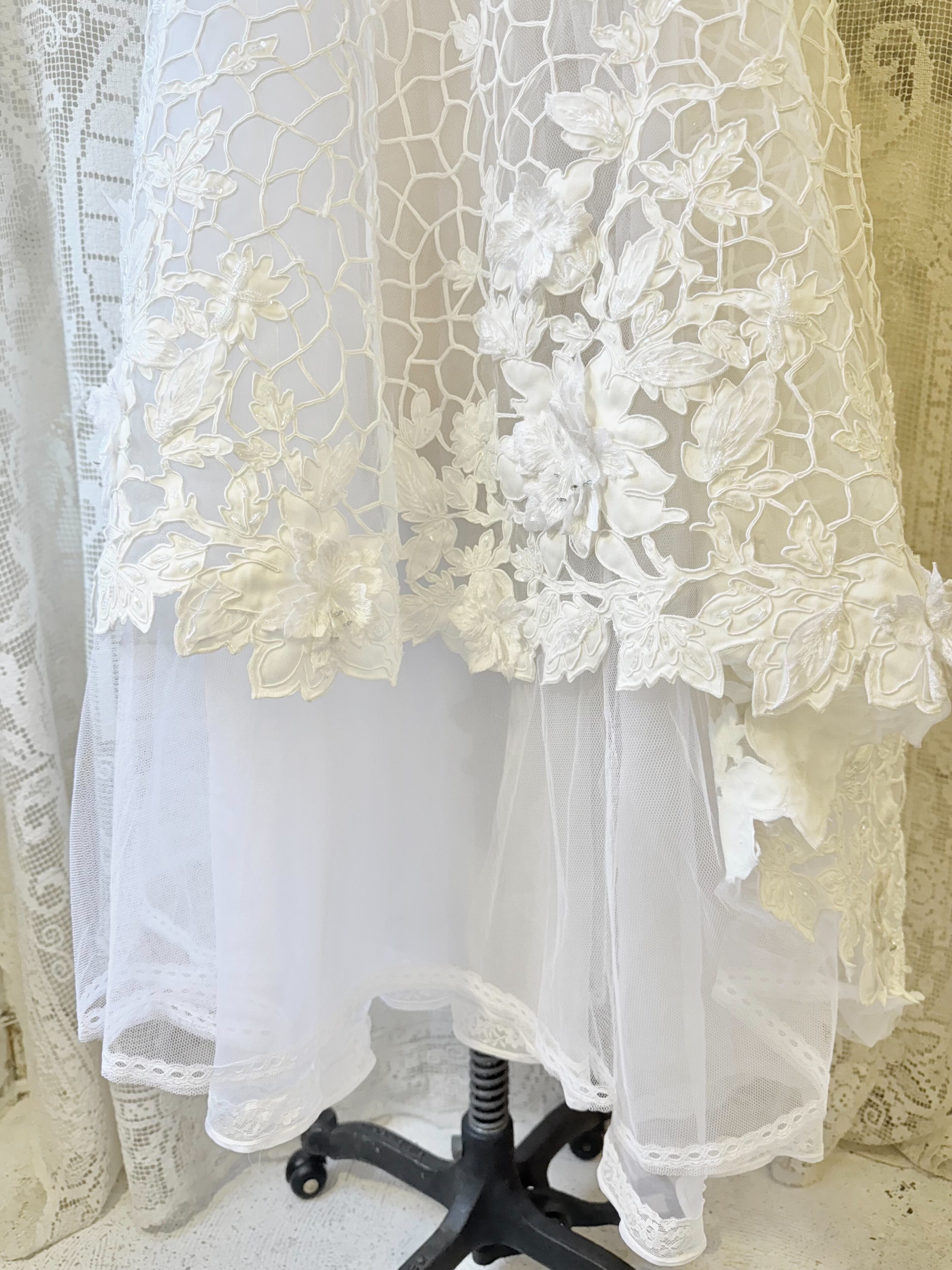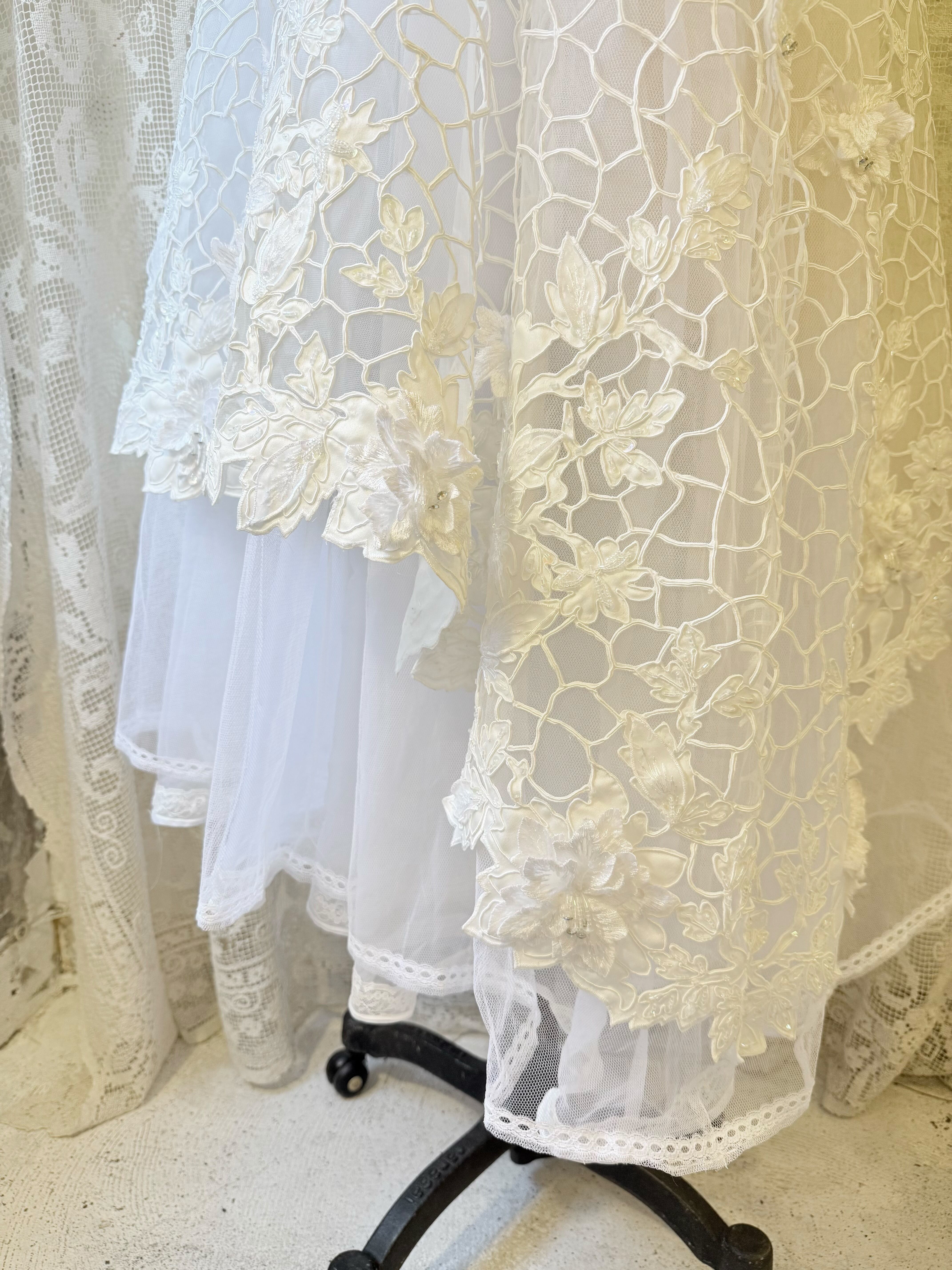 vintageのウェディングドレスを使用したたっぷりチュールと花の結晶のような装飾が美しいです♡