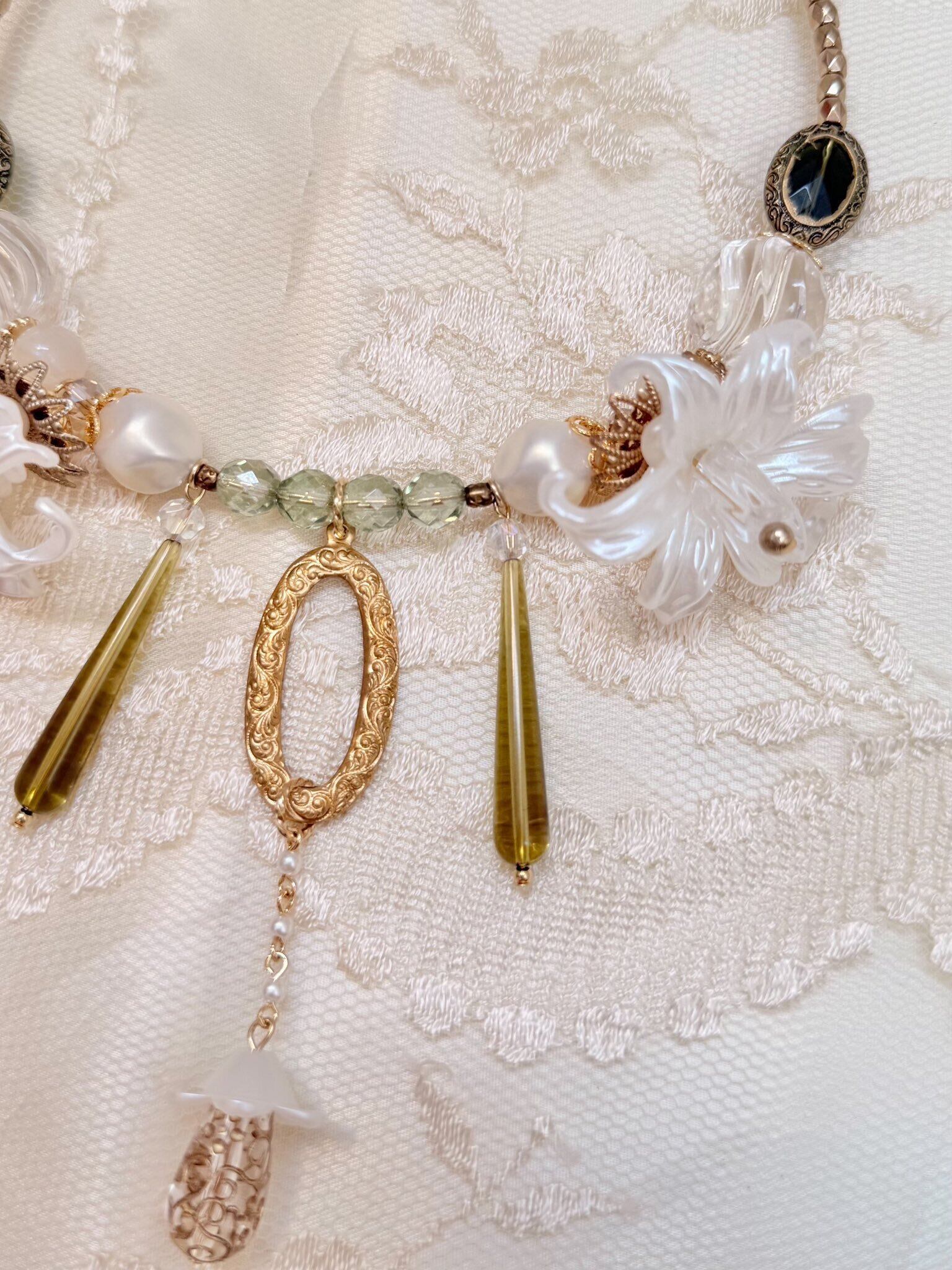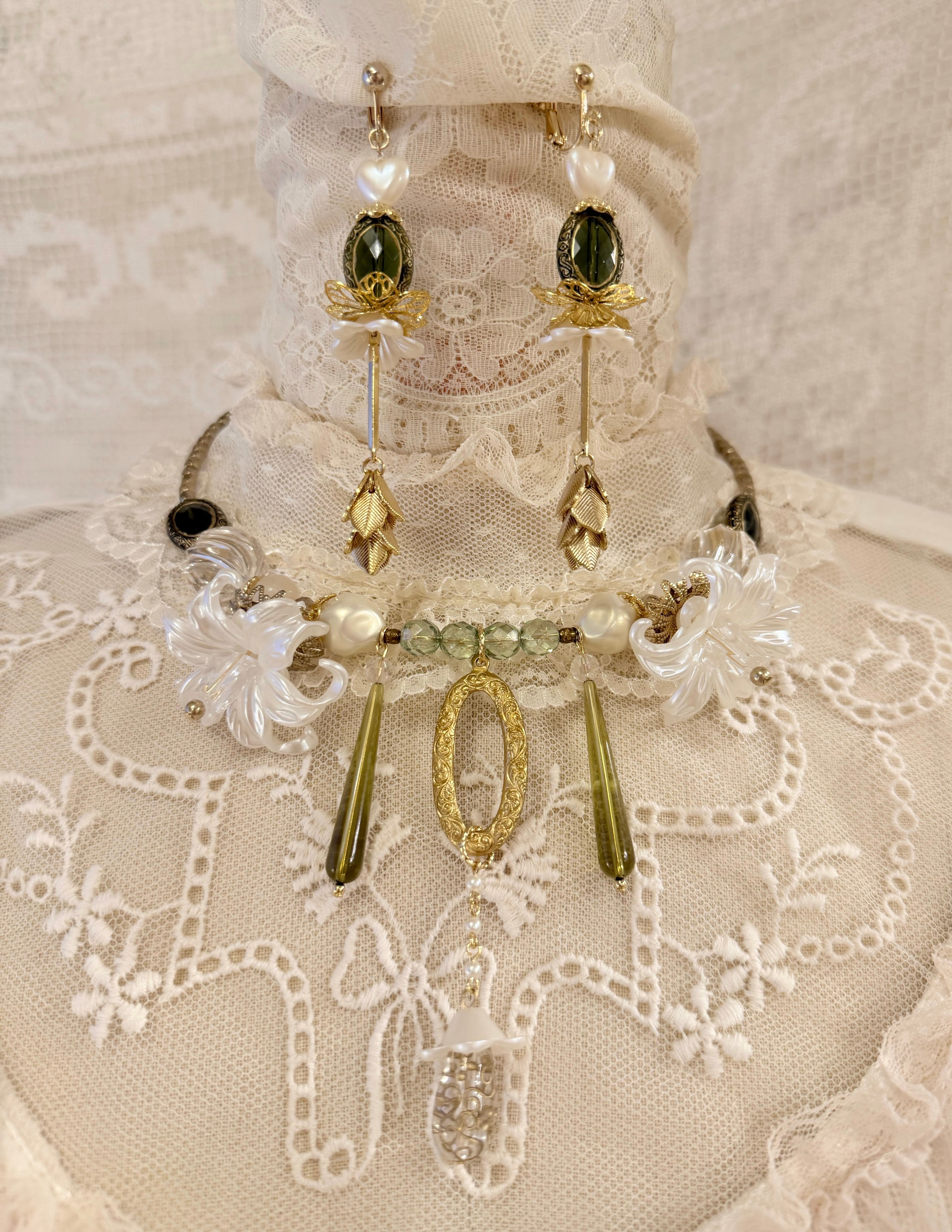 海外で集めたvintage等ロマンチックで美しいパーツを使用して制作された個性的なデザインがとても可愛い絵画の様なアクセサリーです。