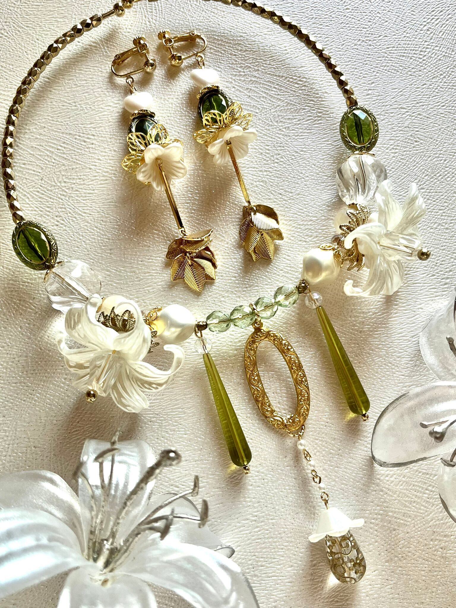 Lily leaf earringsとSet upのデザイン˖ ࣪⊹