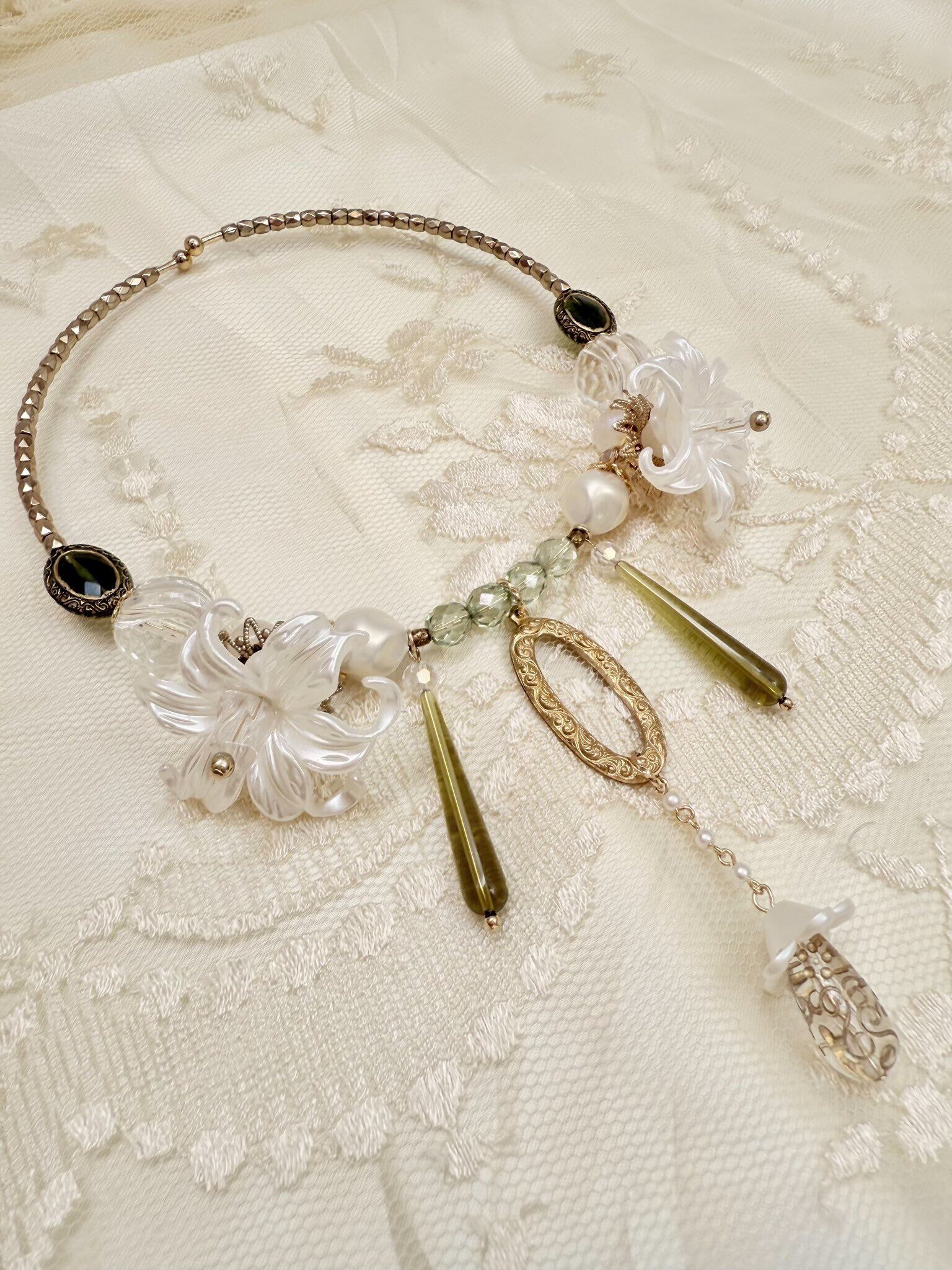 夏には爽やかに秋にはエレガントに印象を変えられる色合わせのフープネックレス˖ ࣪⊹