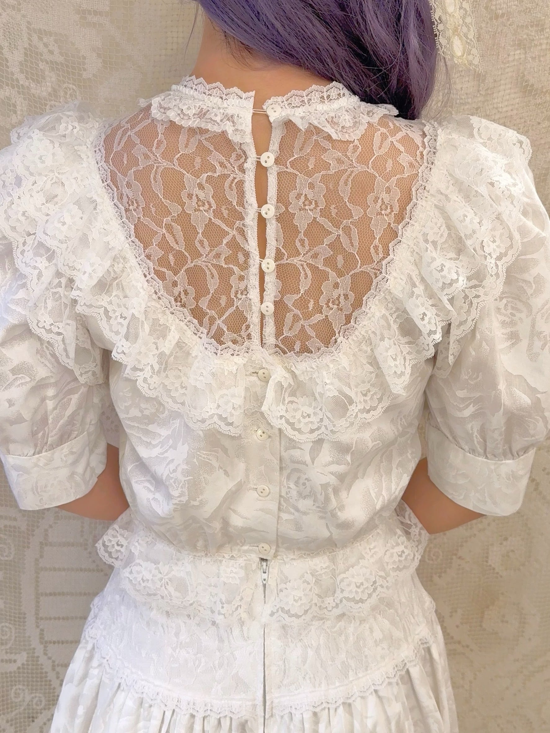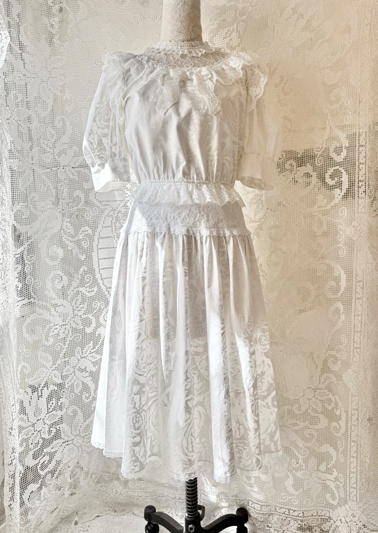 ロマンティックな薔薇模様にレースをたっぷりとあしらったドレス♡