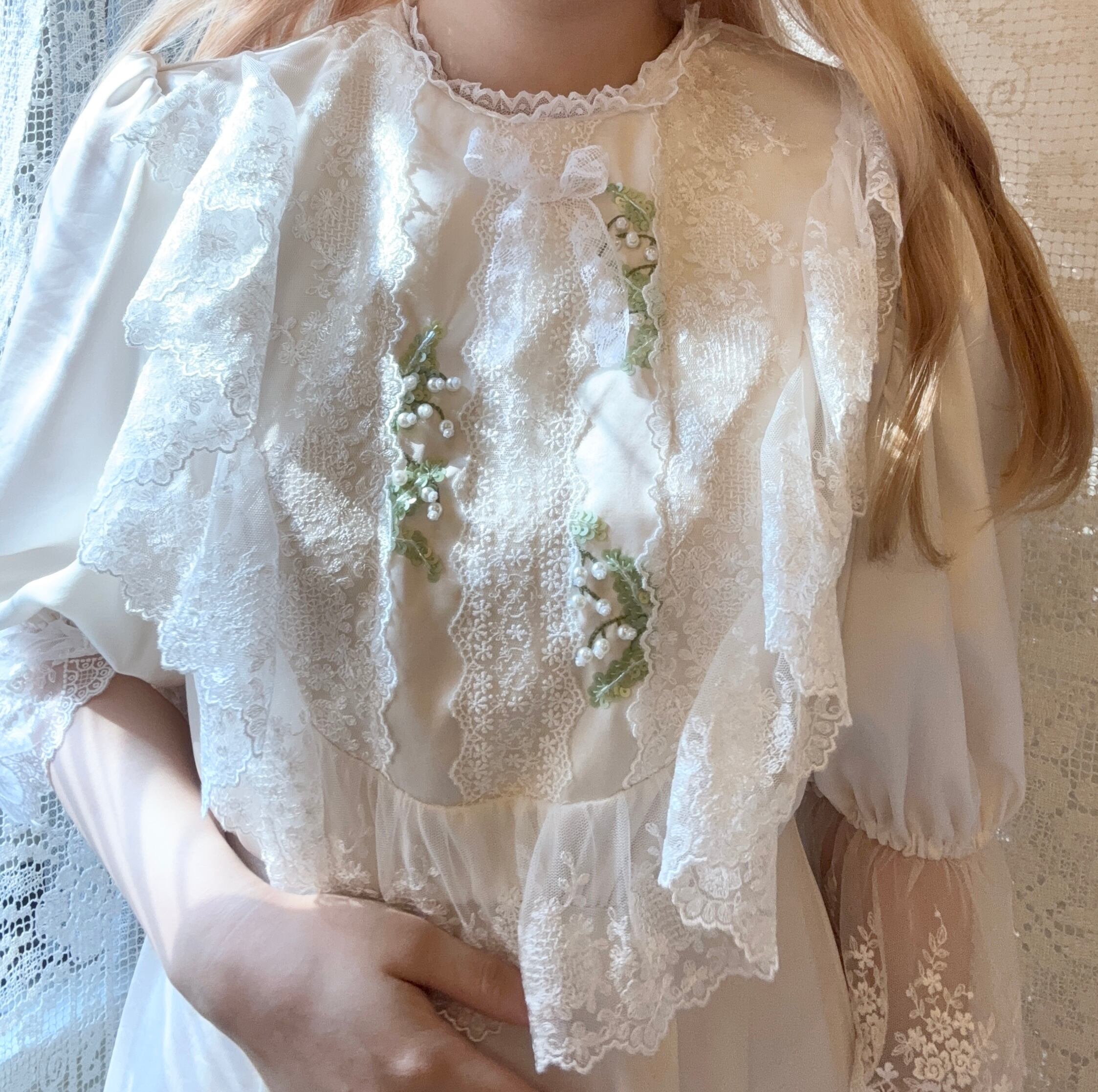 立体感あるスズラン(Lily of the valley)の 刺繍が可愛いdress˖ ࣪⊹