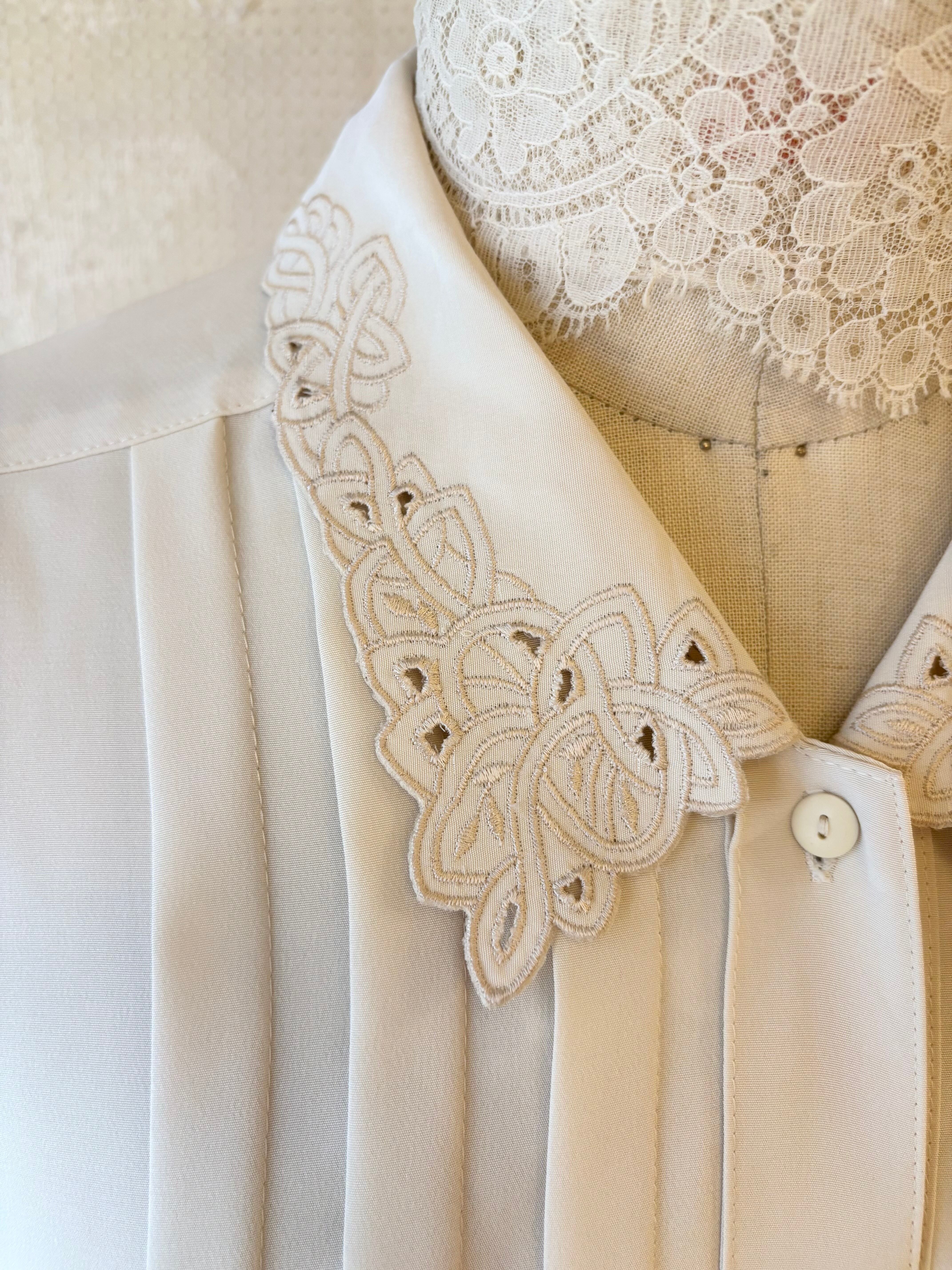 刺繍の施された襟と身頃のタックがVinatege感溢れるブラウスです˖ ࣪⊹