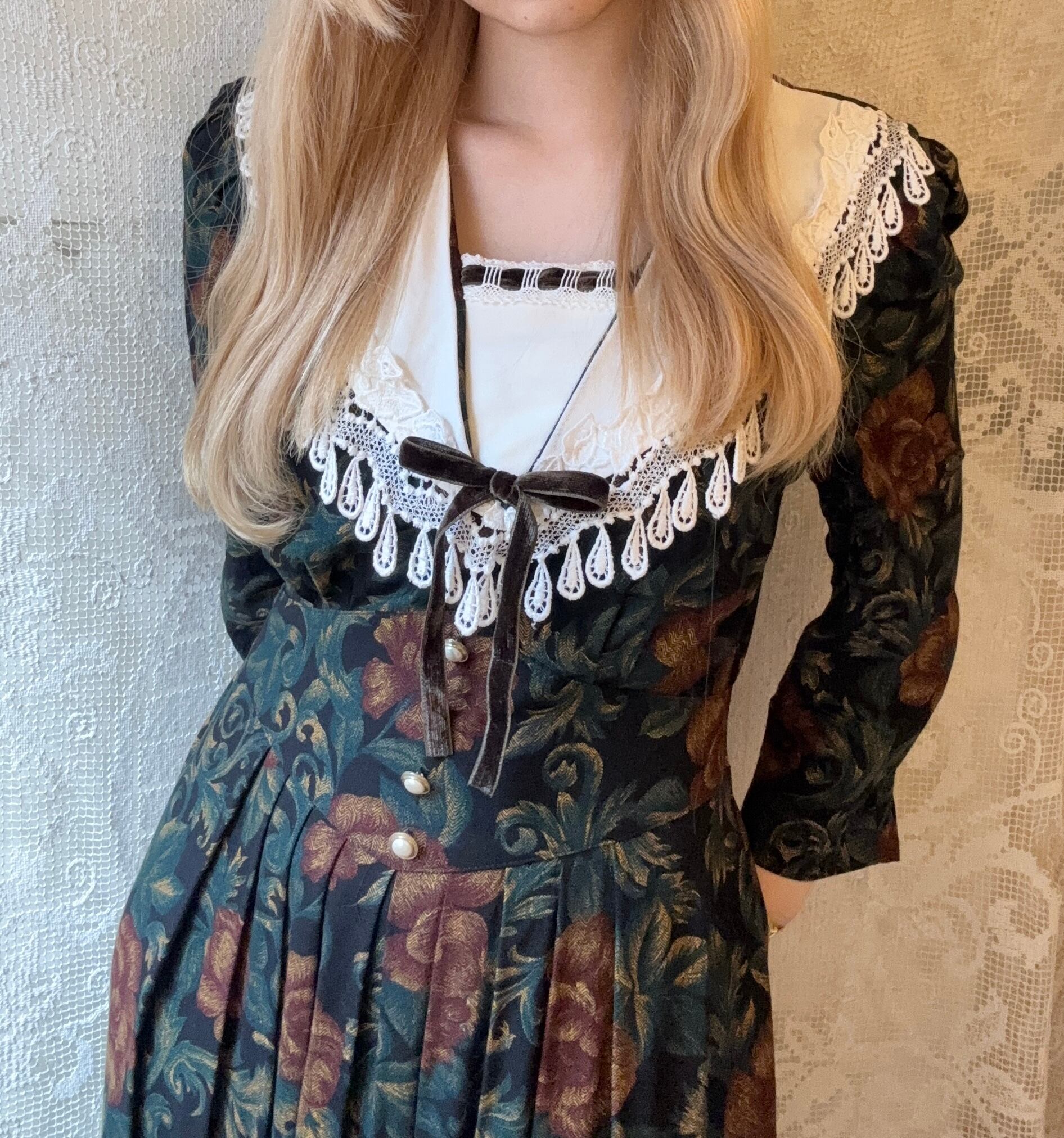 季節の変わり目を感じさせるVintage flower long one-piece。