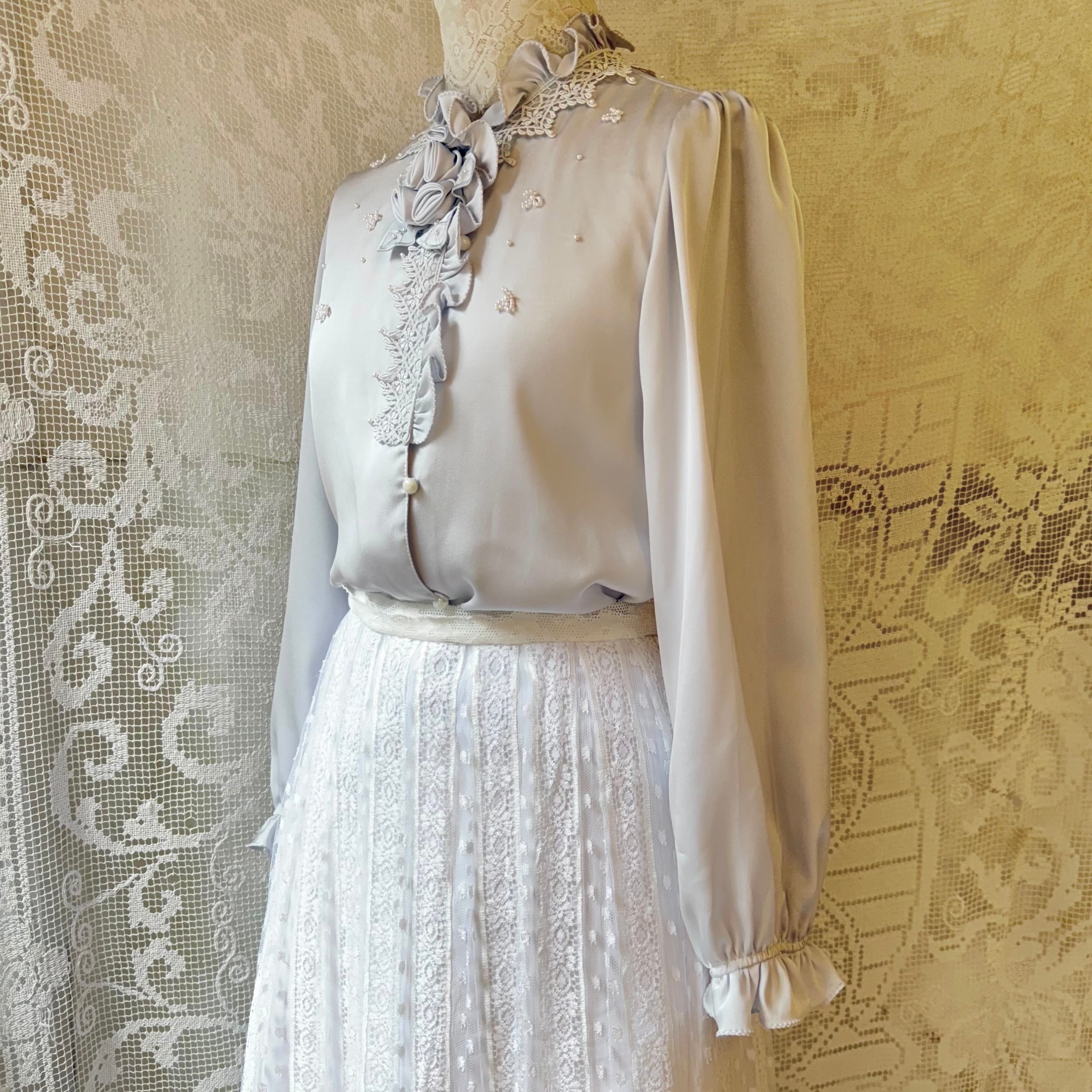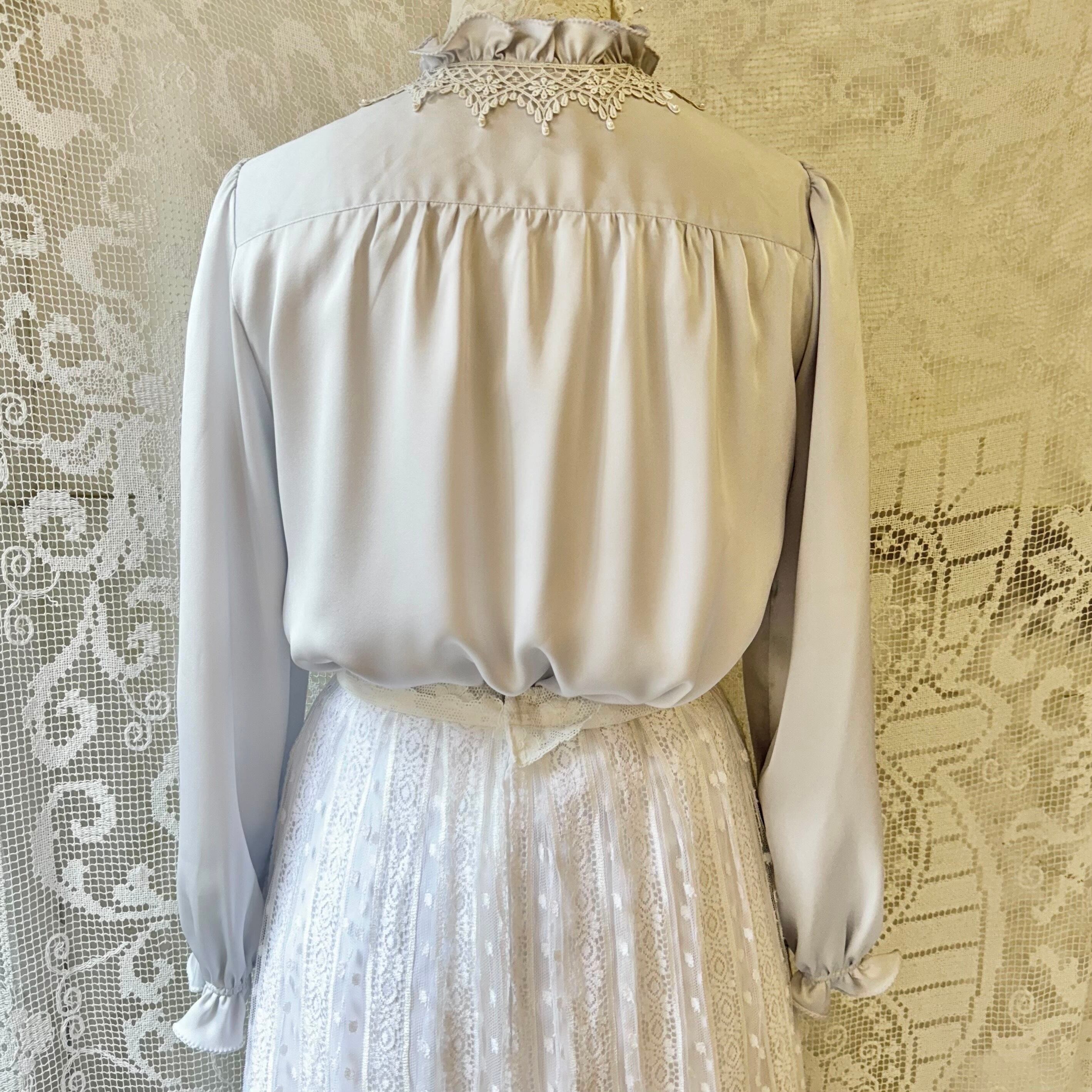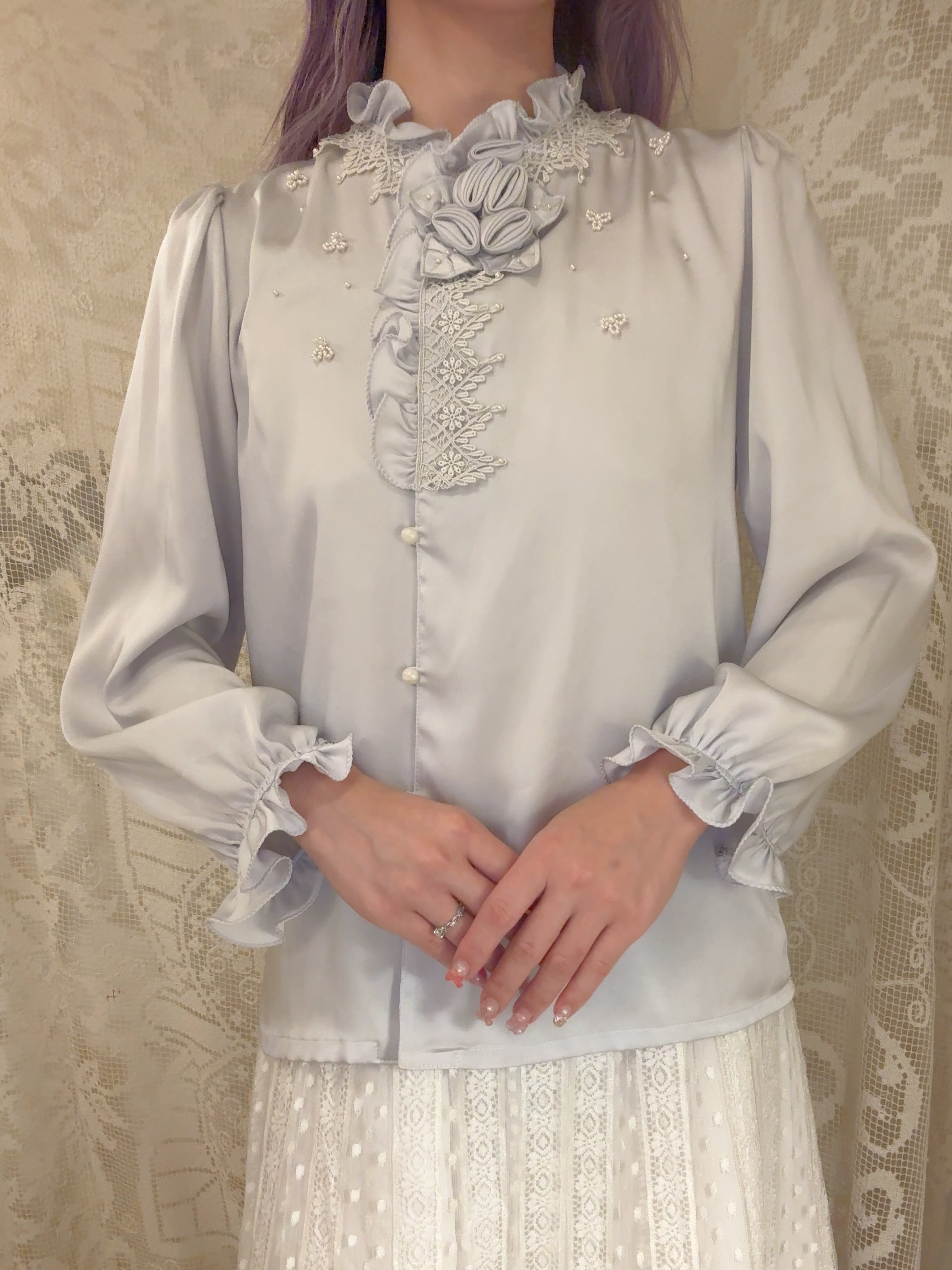 水色とグレーを混ぜたような絶妙なカラーが可愛いブラウス。