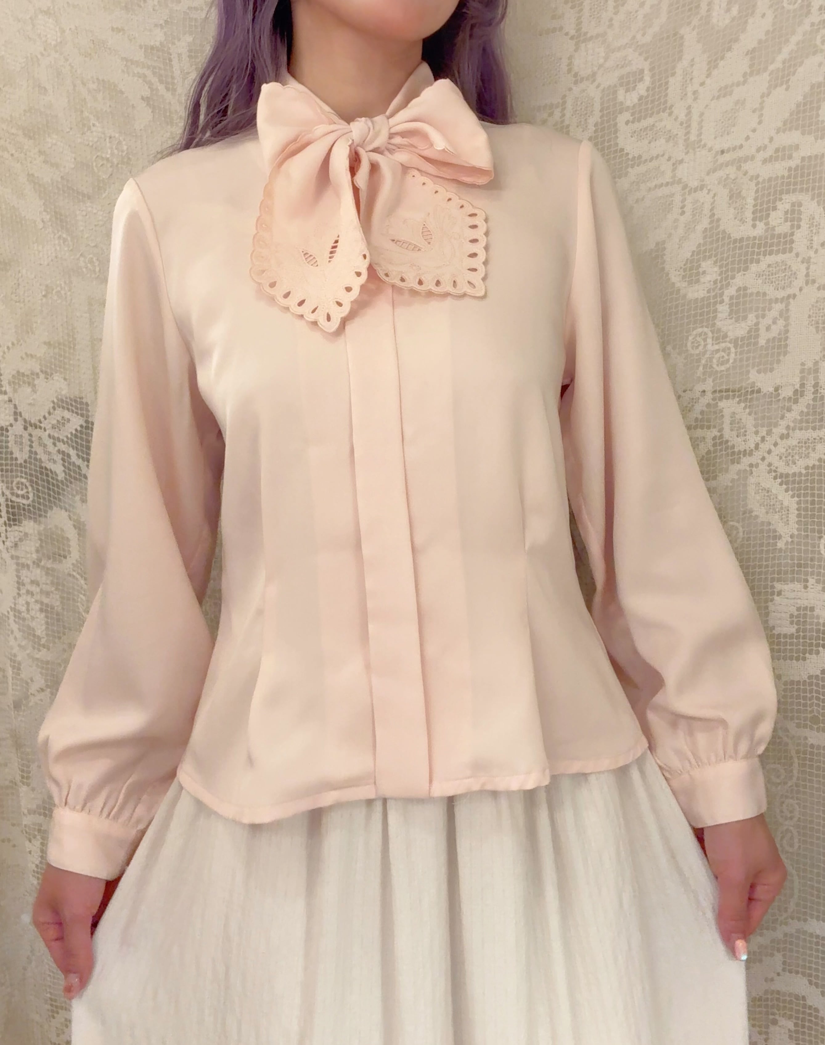 大きなリボンの襟が可愛いブラウス。