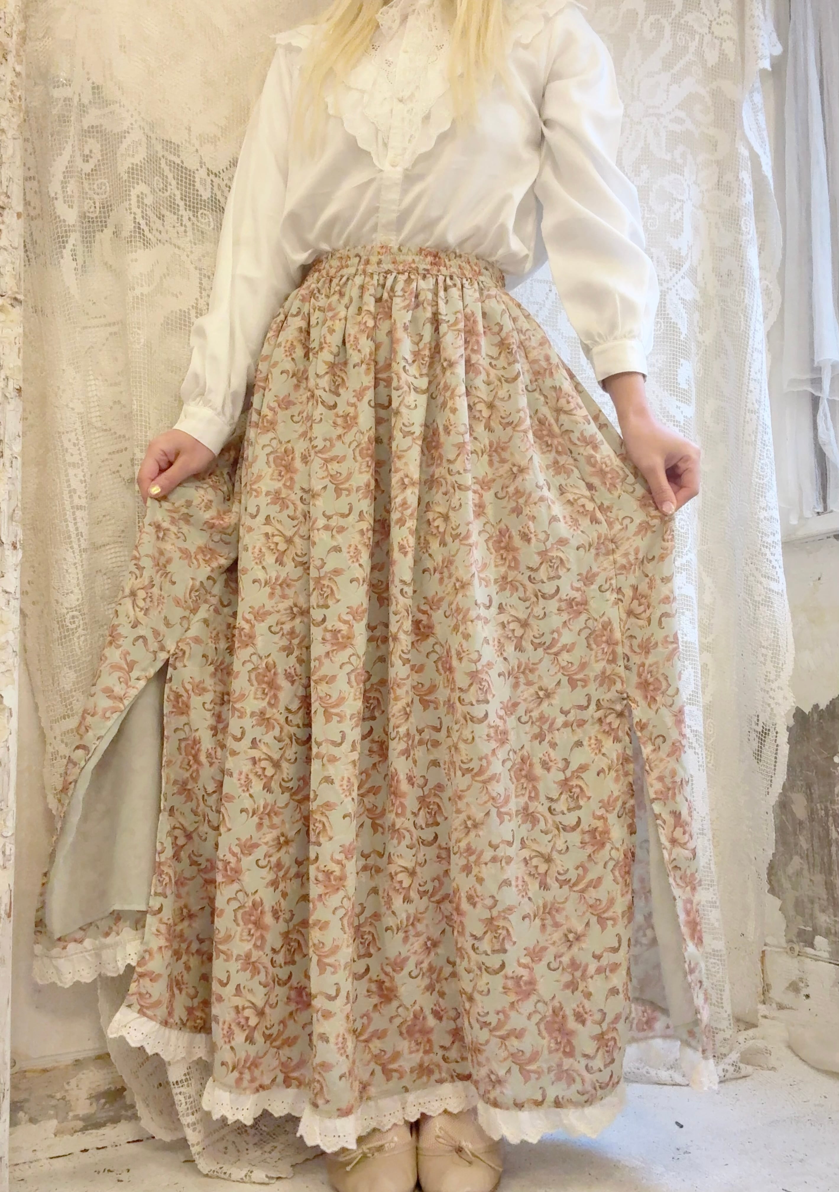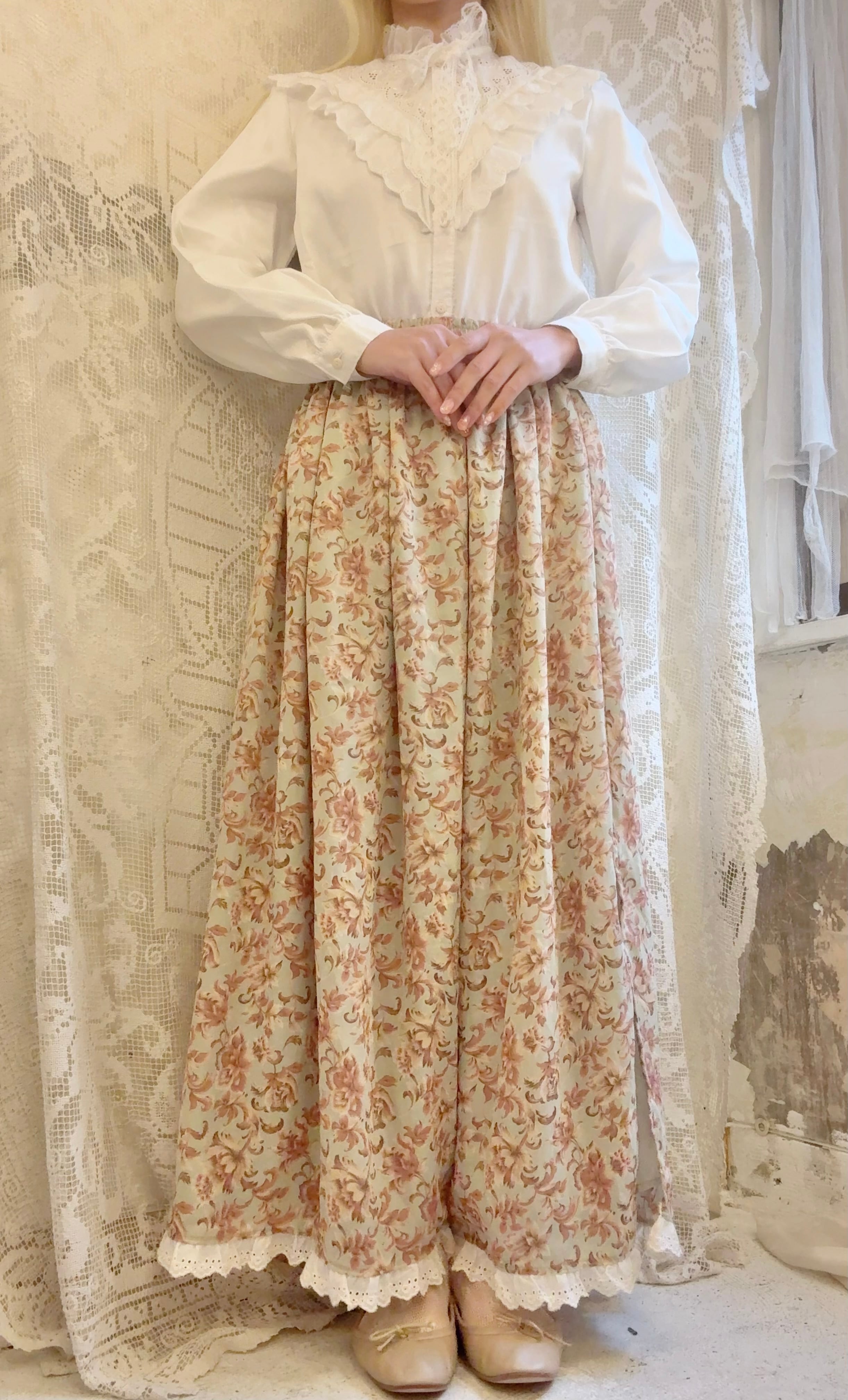 裾には生成りのレースが贅沢についています。