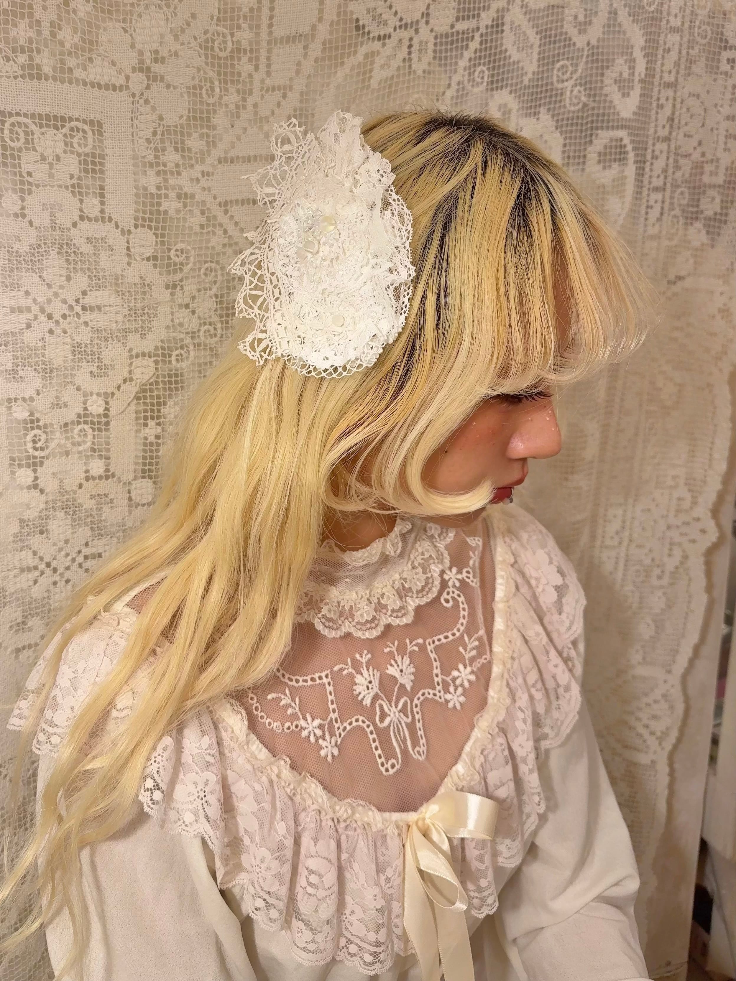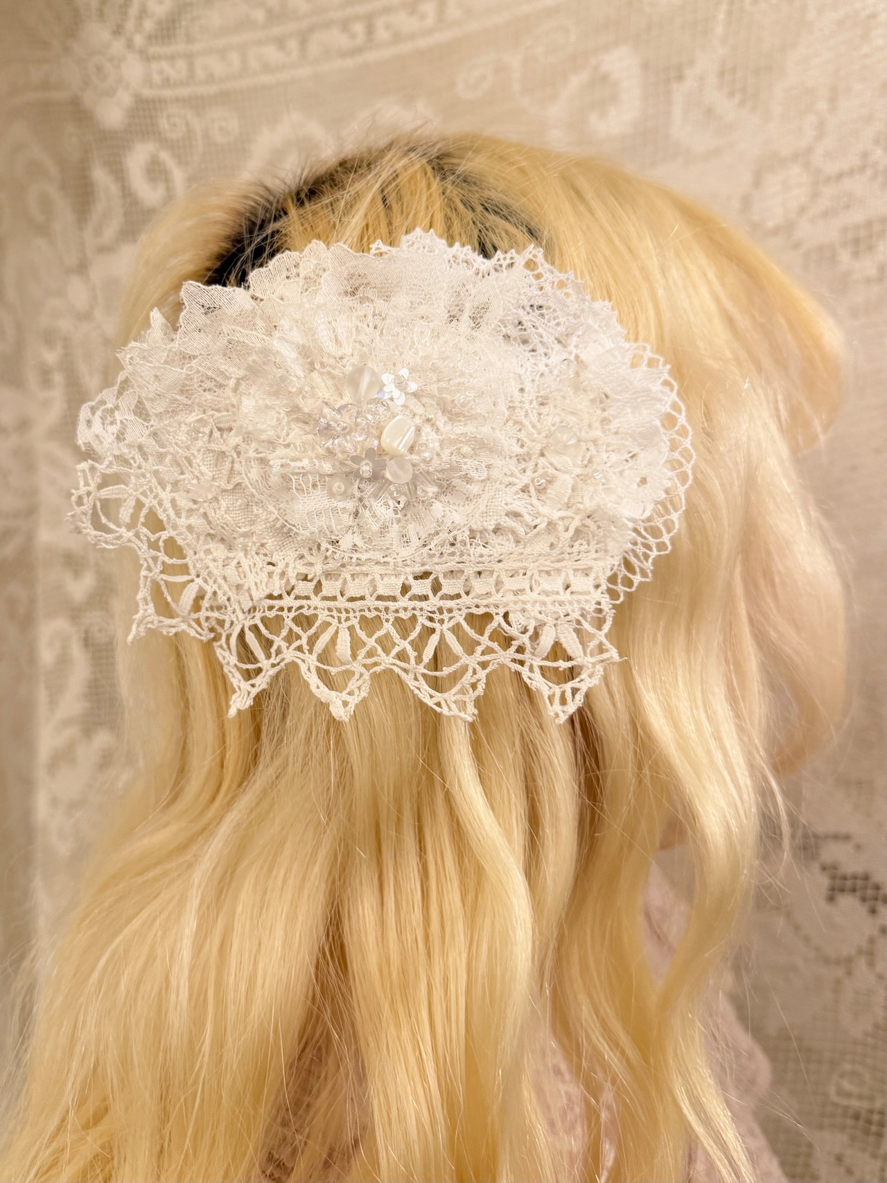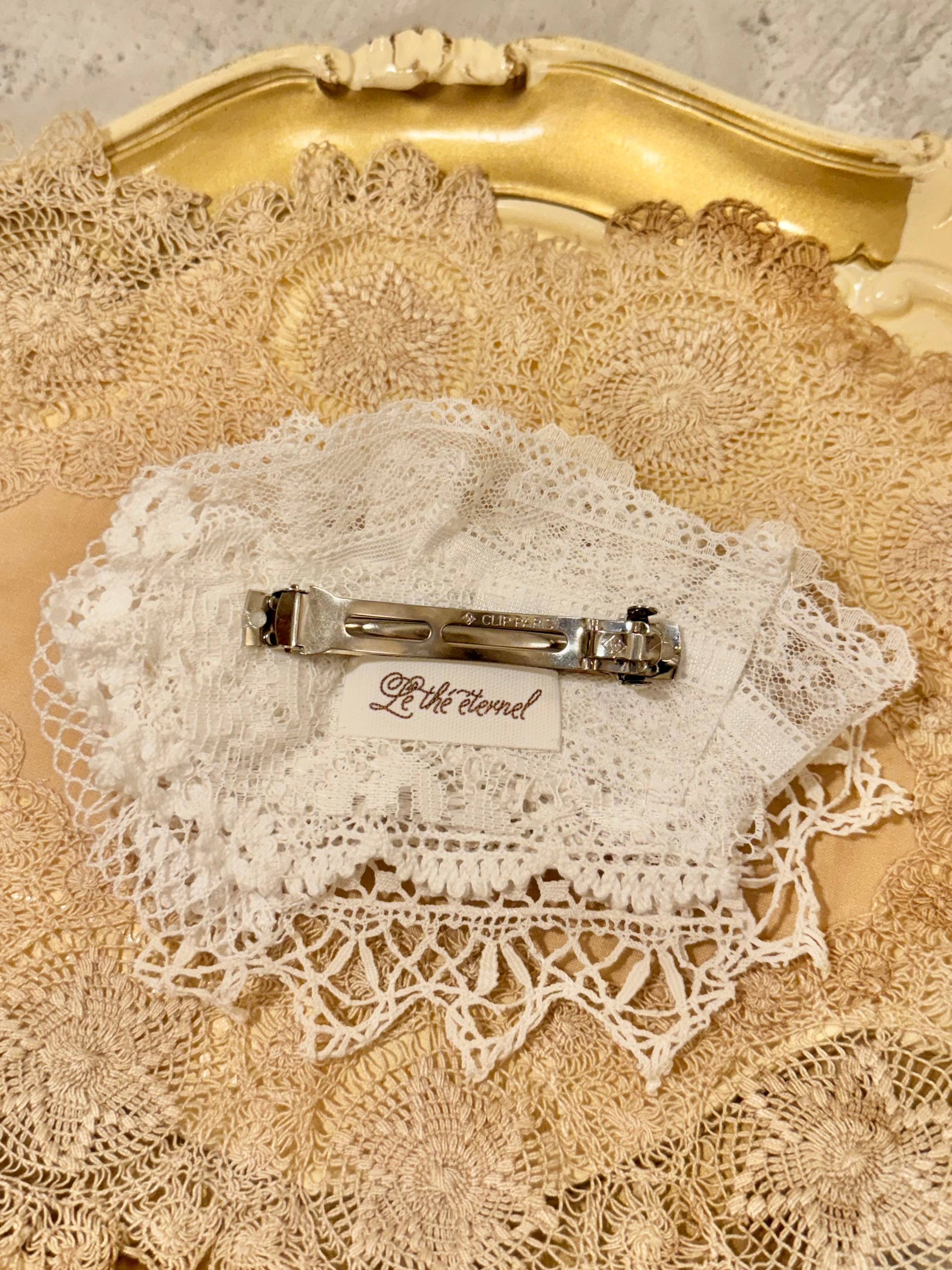 アンティークレースをコラージュした繊細な装飾が美しいバレッタです。˖ ࣪⊹