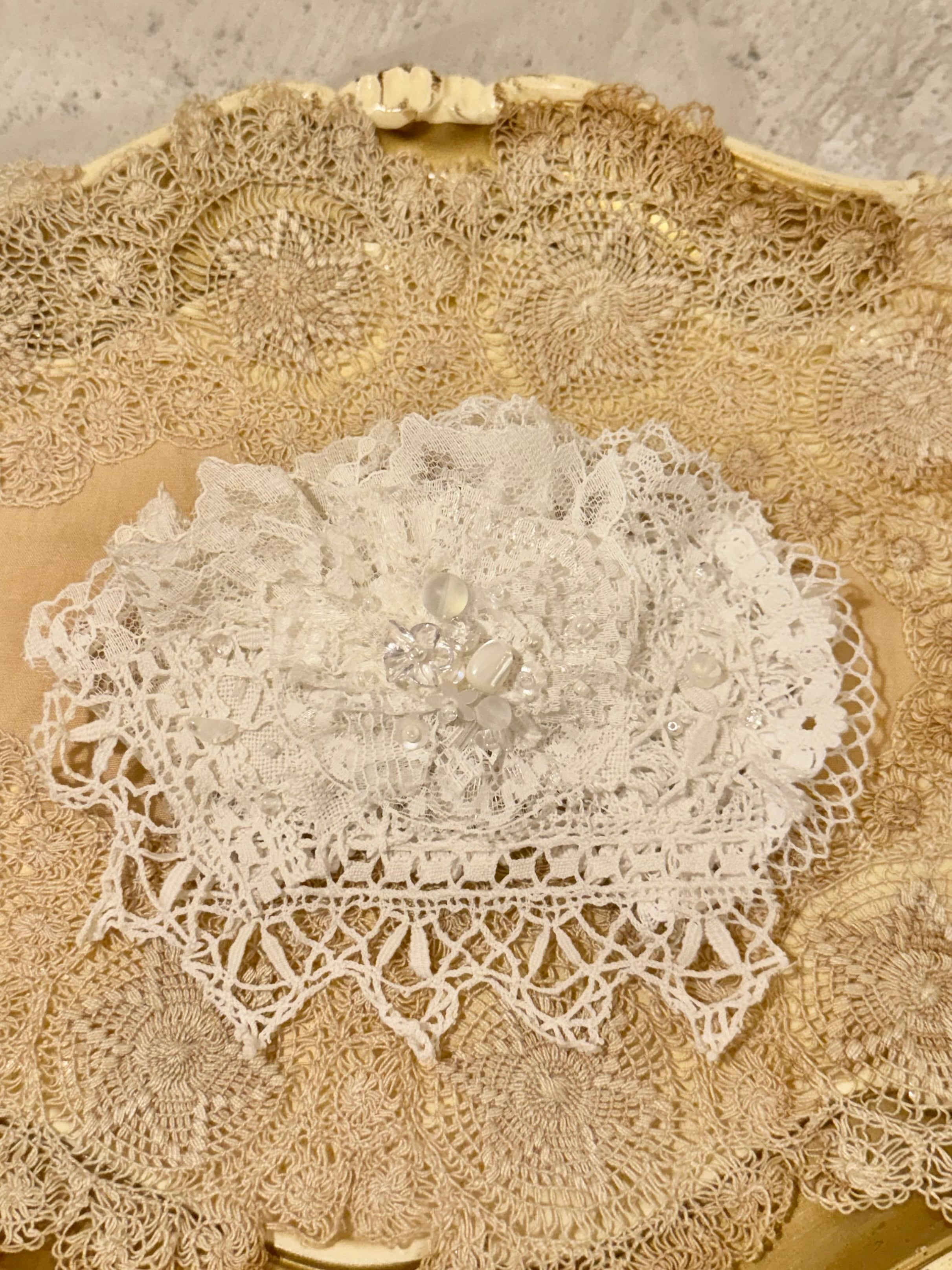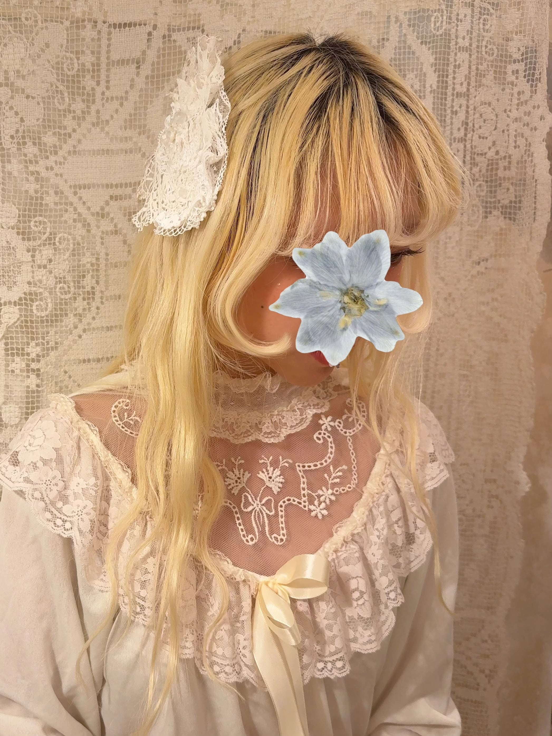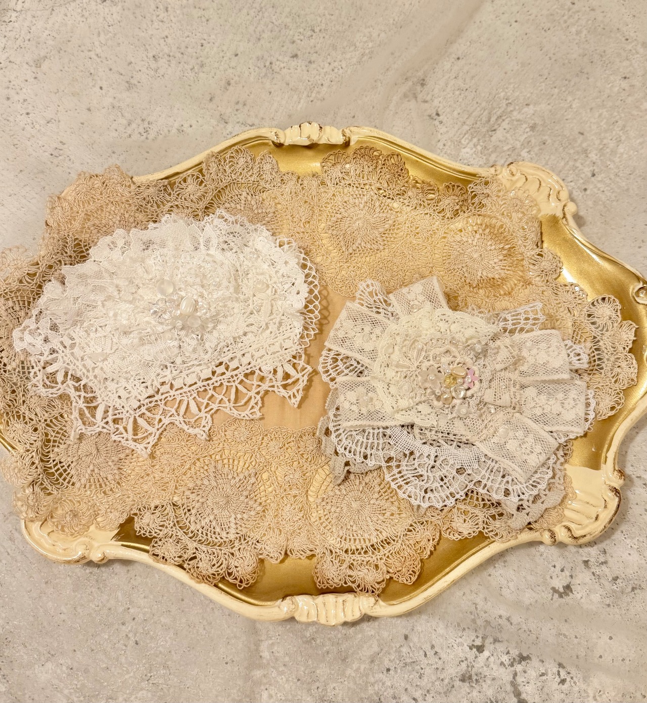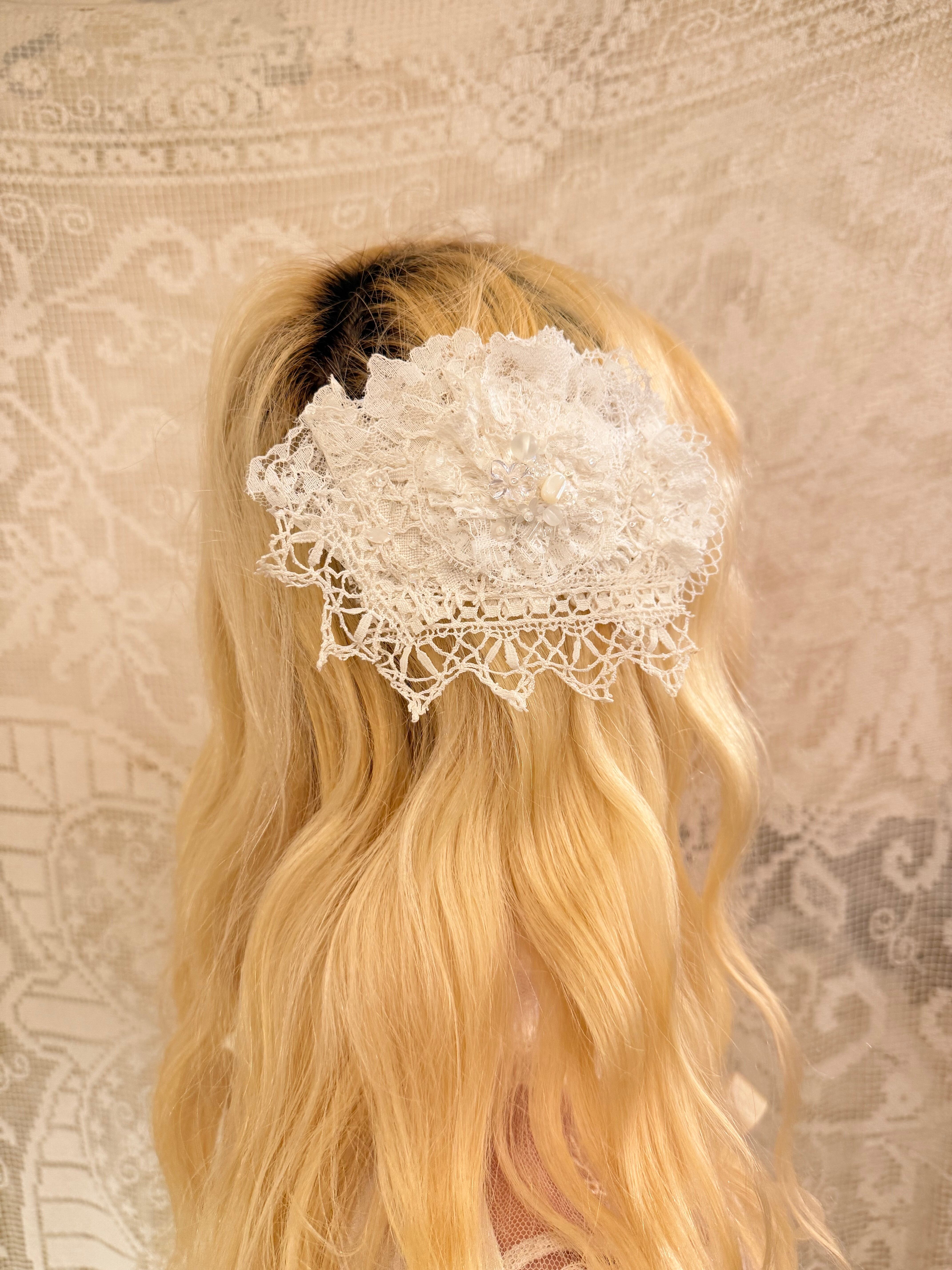 アンティークレースをコラージュした繊細な装飾が美しいバレッタです。˖ ࣪⊹
