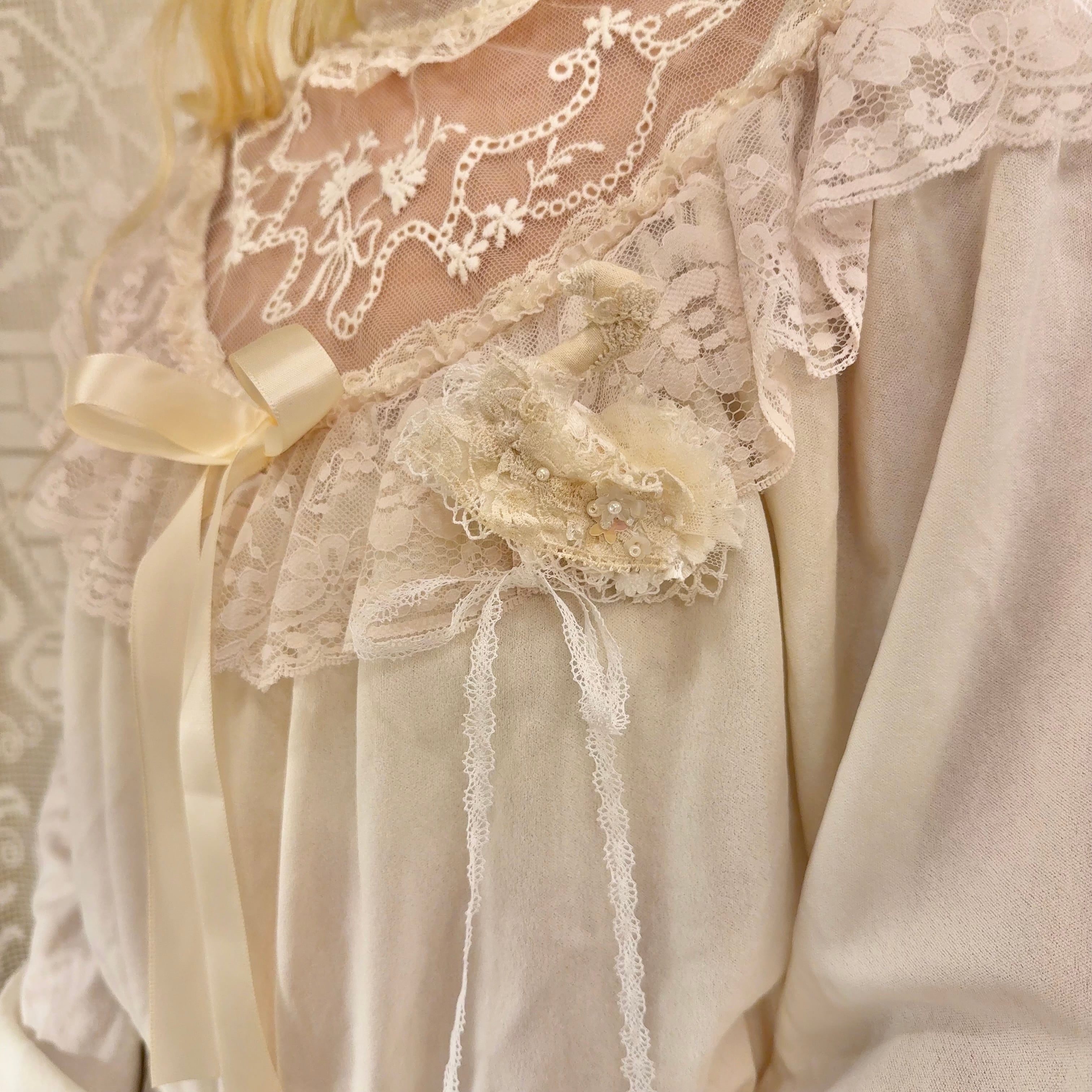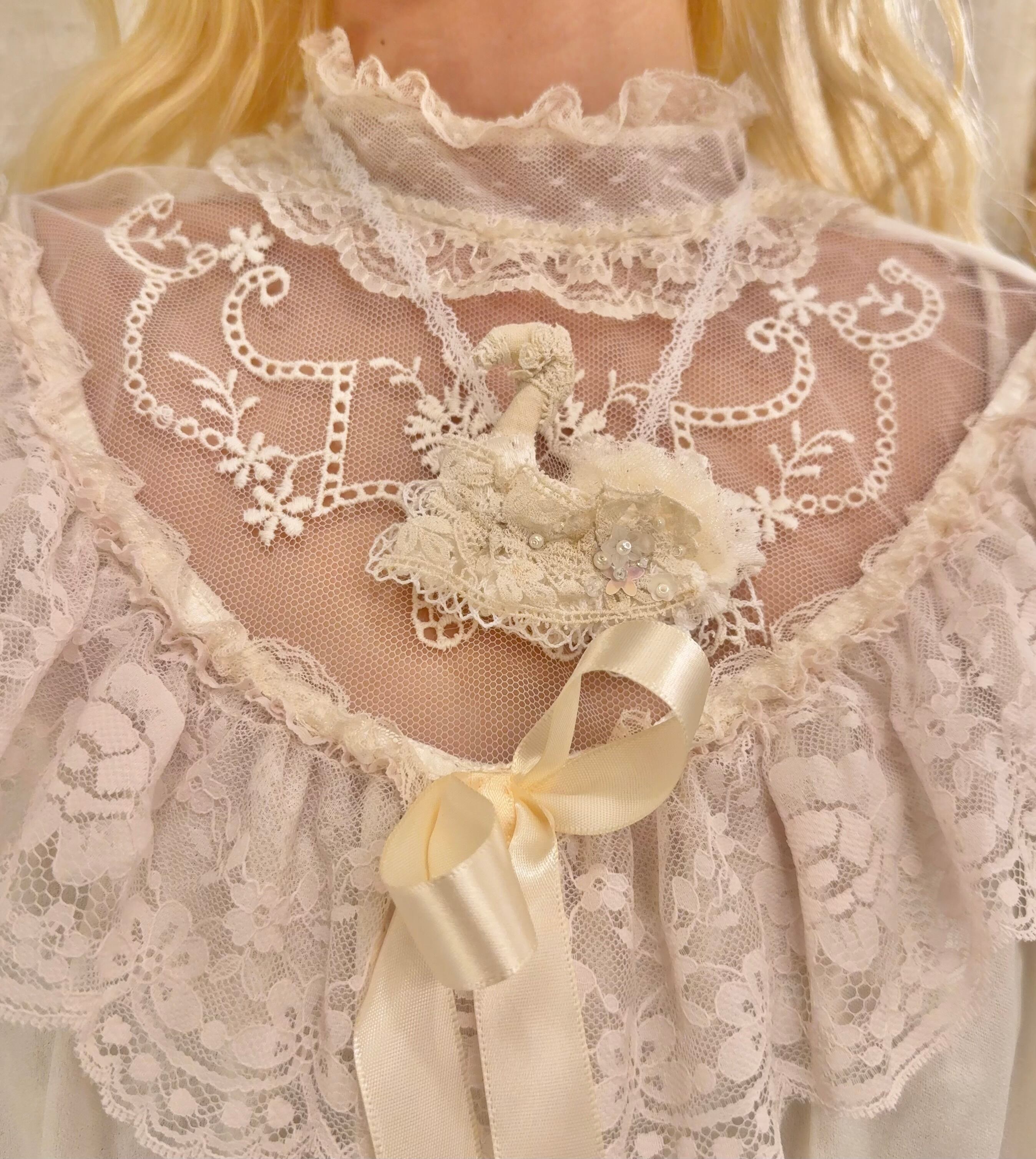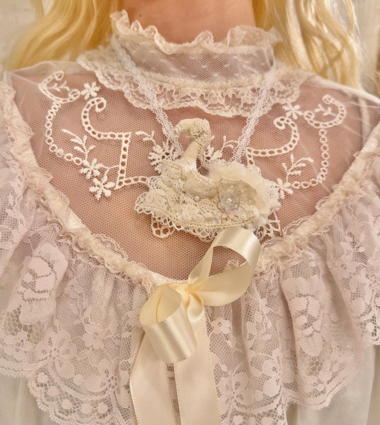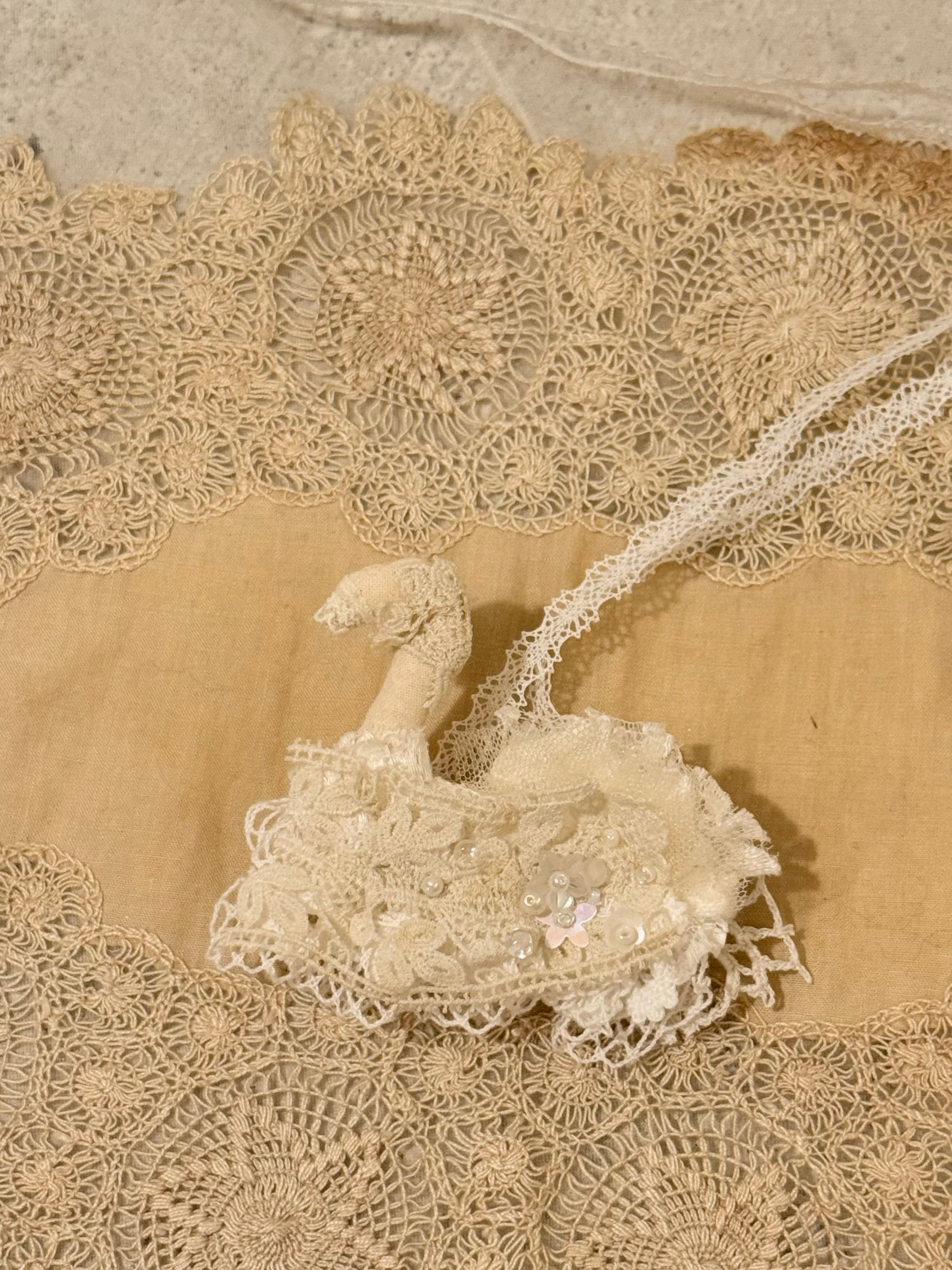 スワンをイメージして制作したモチーフにアンティークレースやビージュをコラージュした繊細な装飾が美しいネックレスです。˖ ࣪⊹