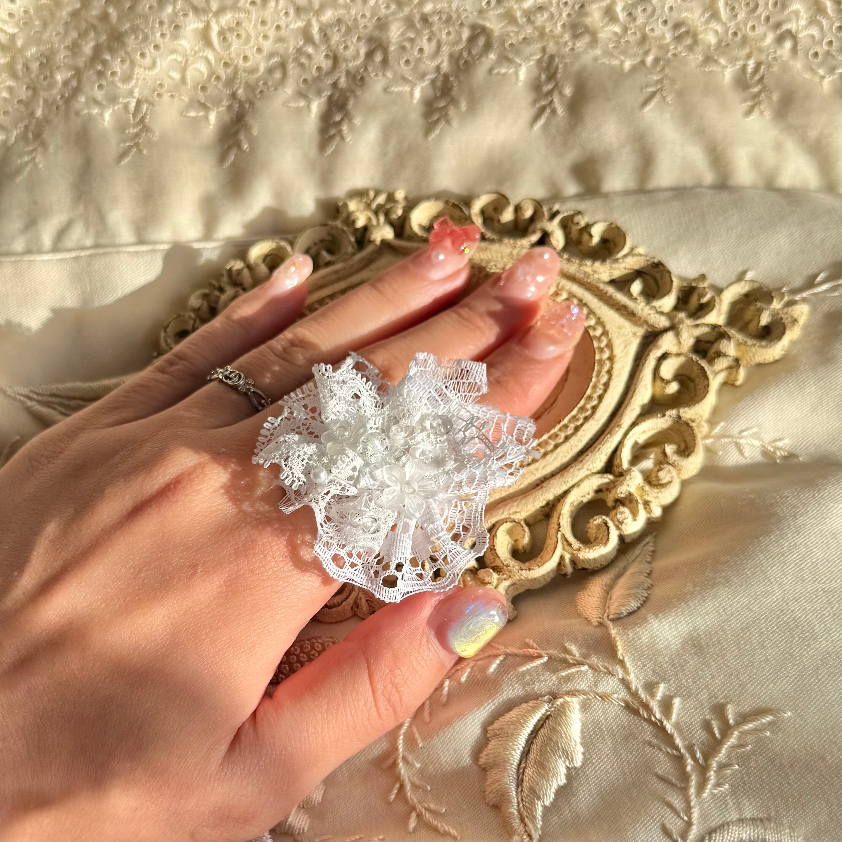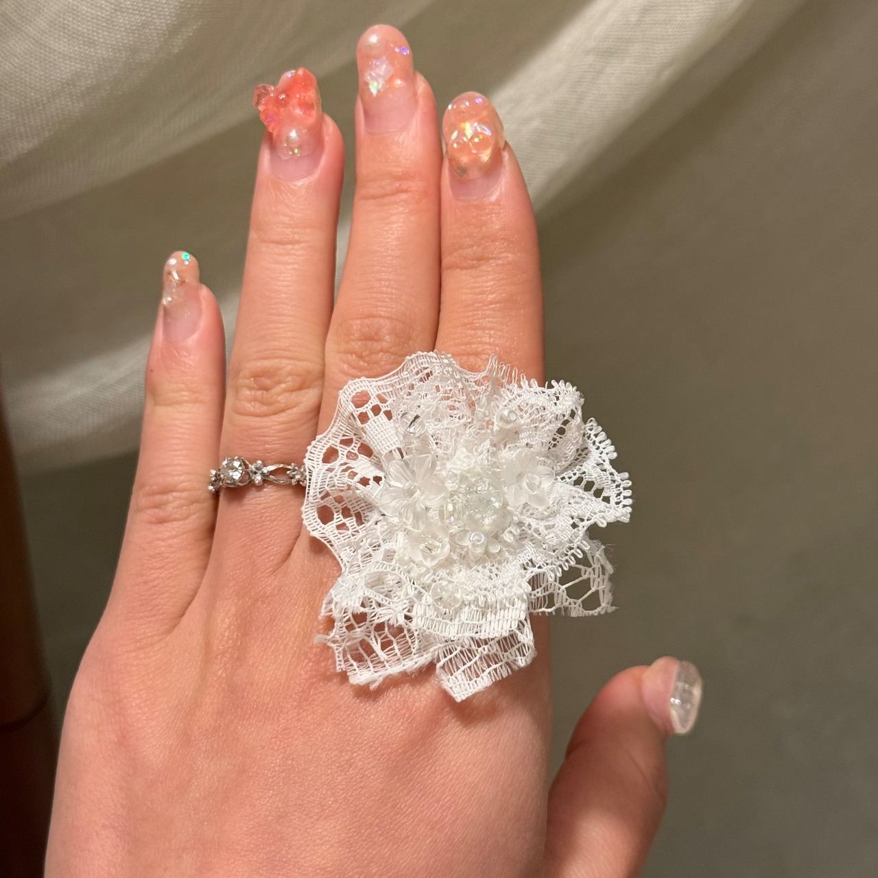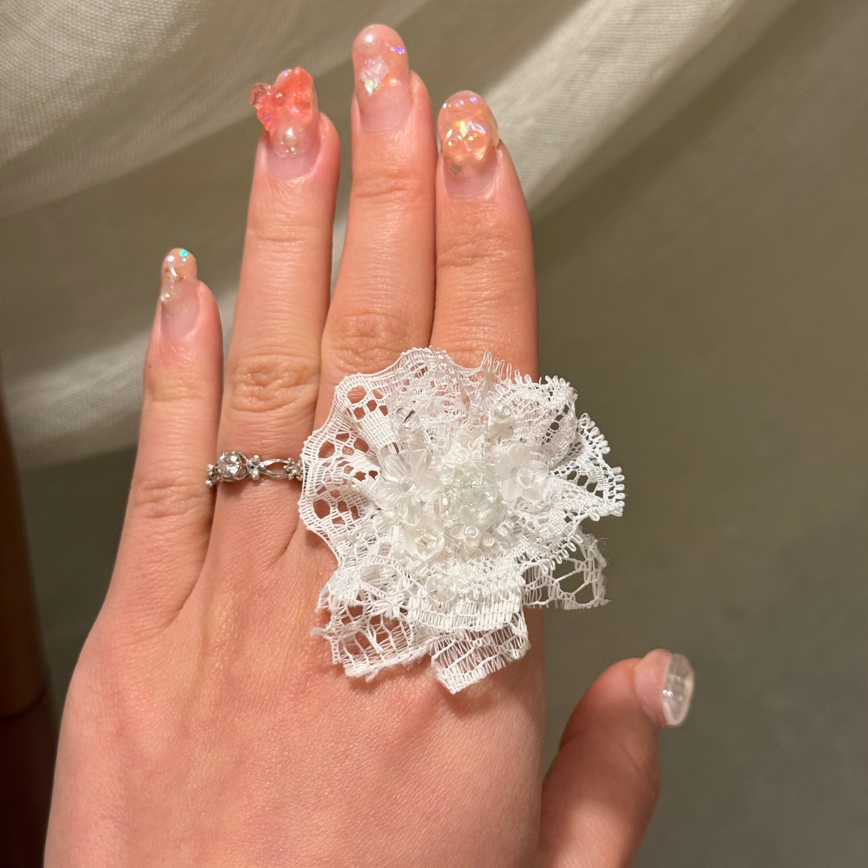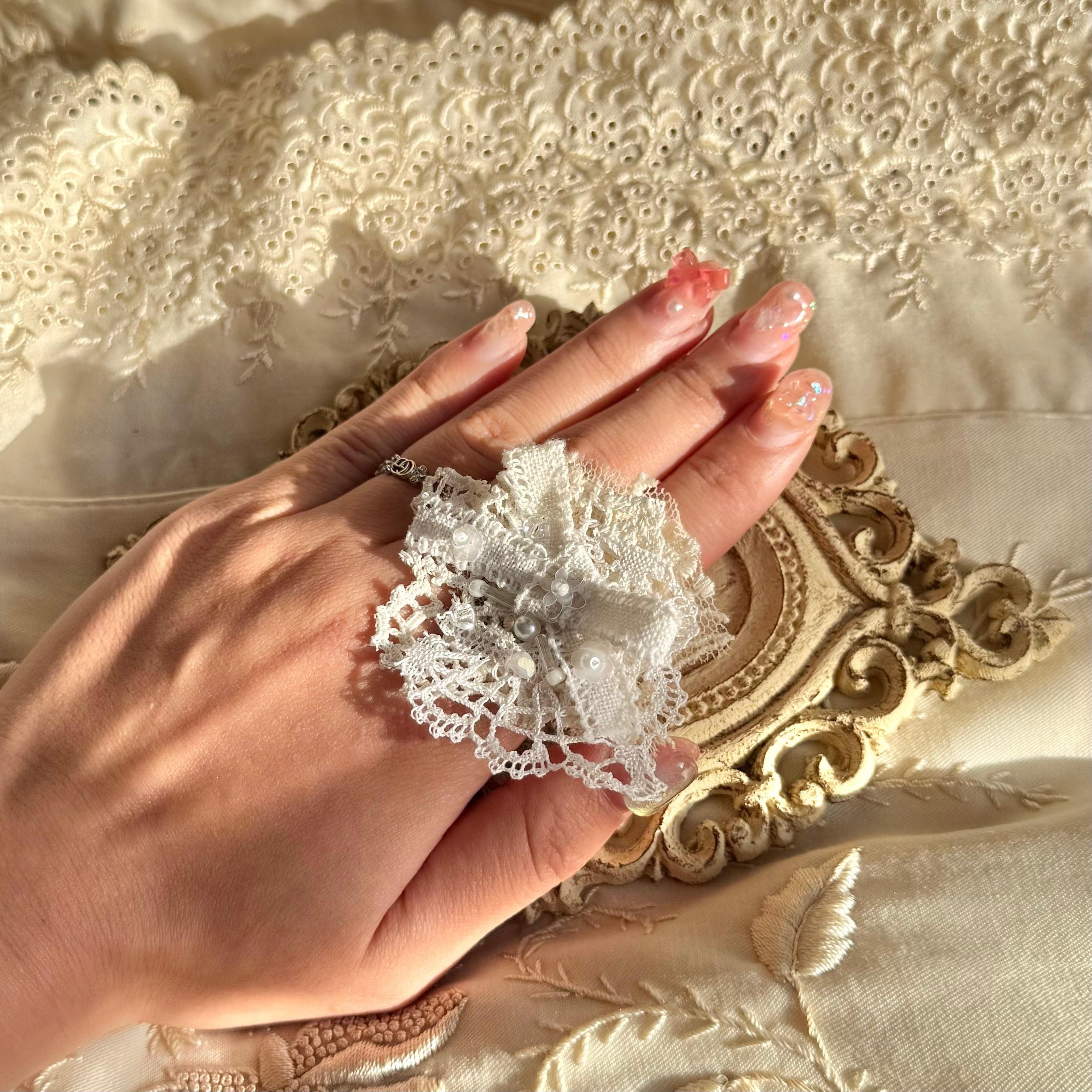アンティークレースをコラージュした繊細な装飾が美しいリングです。˖ ࣪⊹