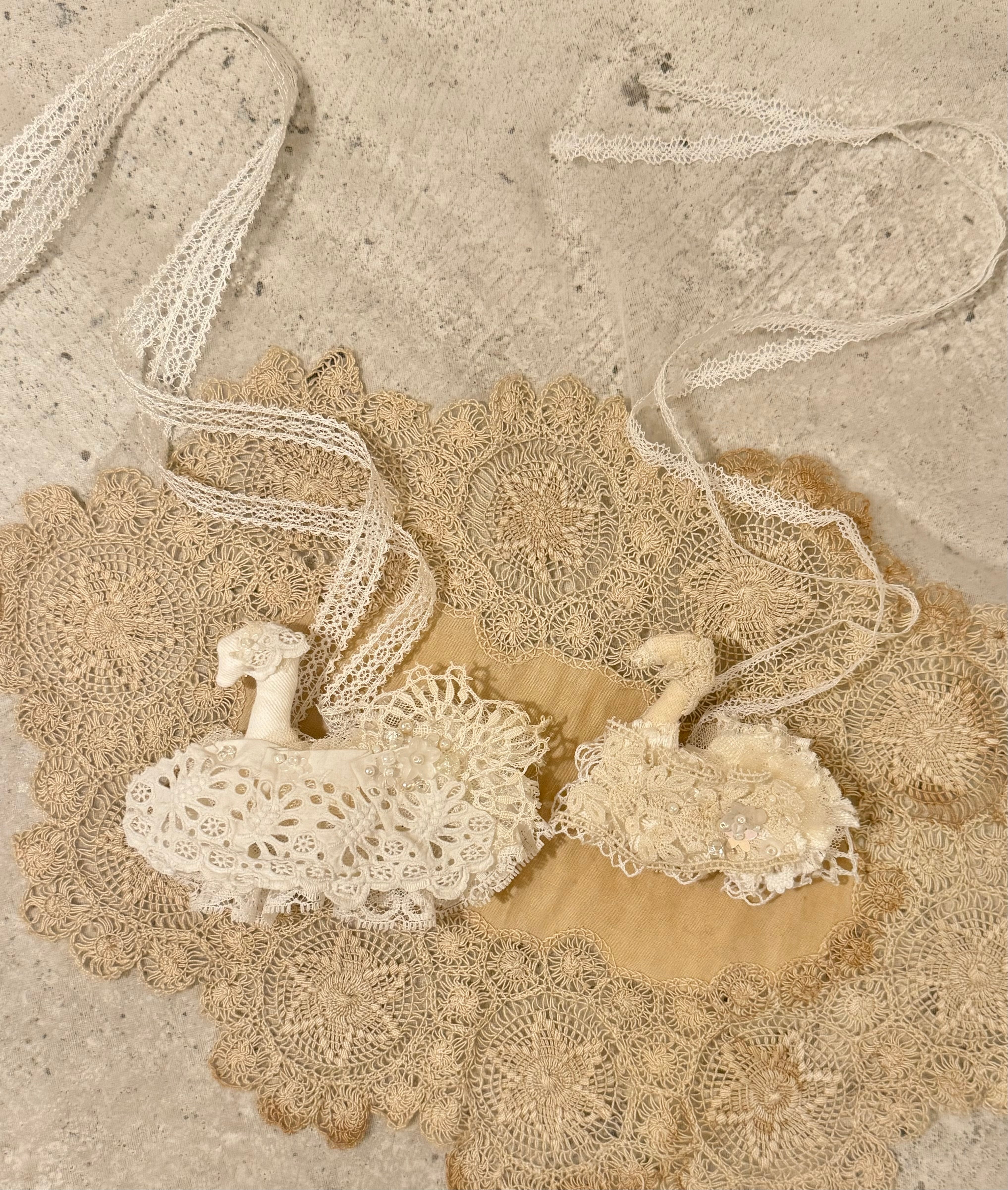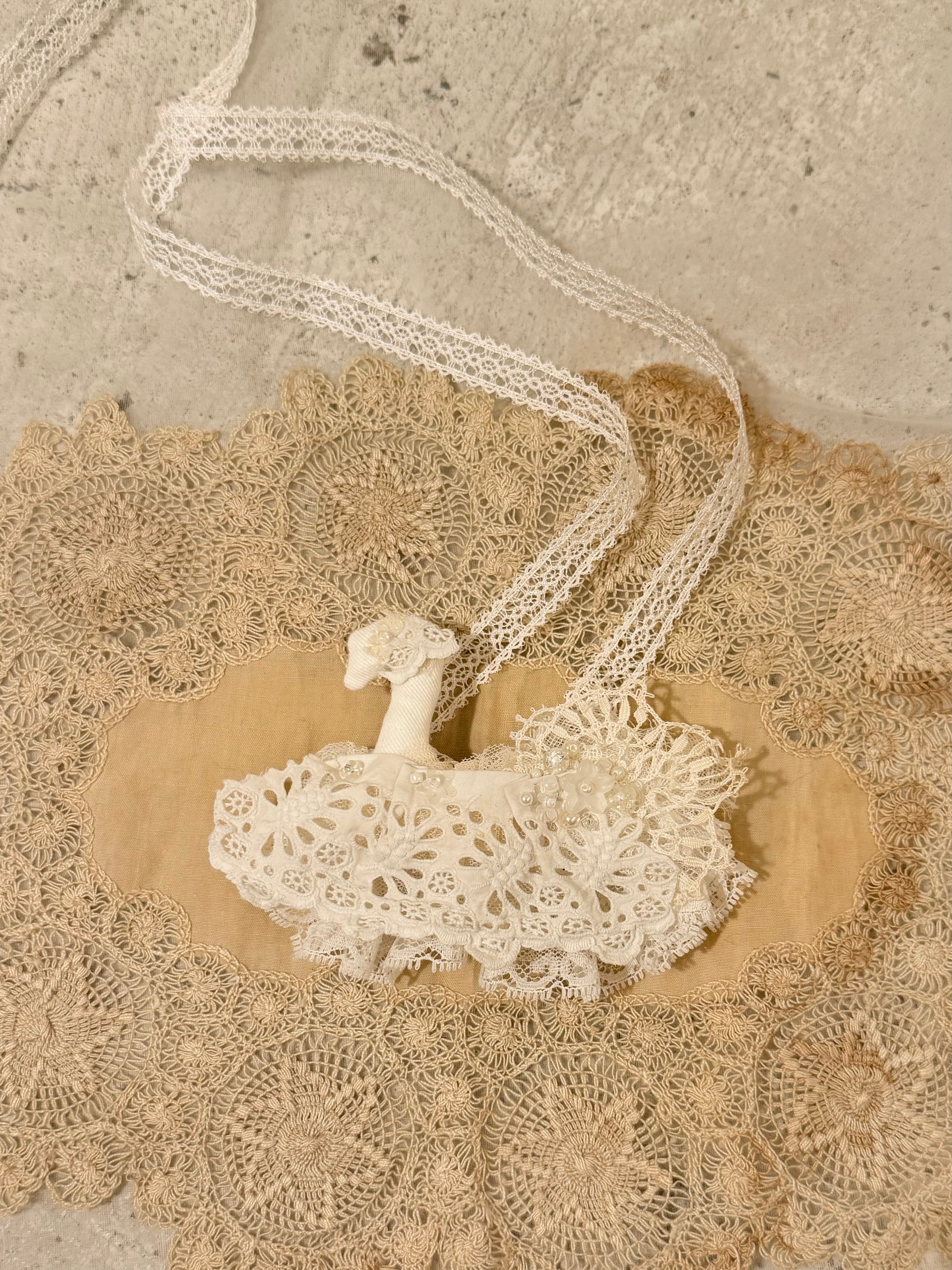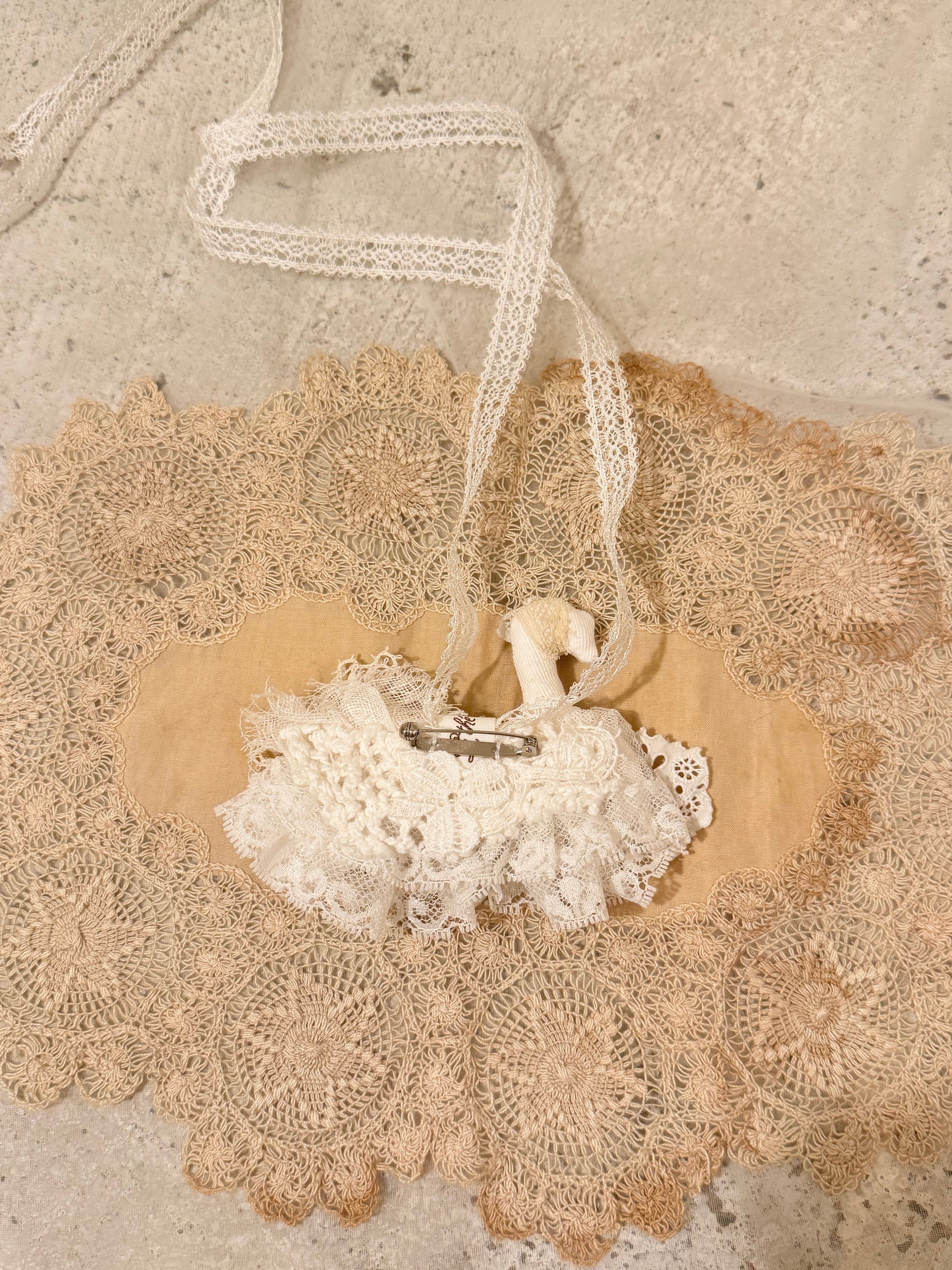 スワンをイメージして制作したモチーフにアンティークレースやビージュをコラージュした繊細な装飾が美しいネックレスです。˖ ࣪⊹