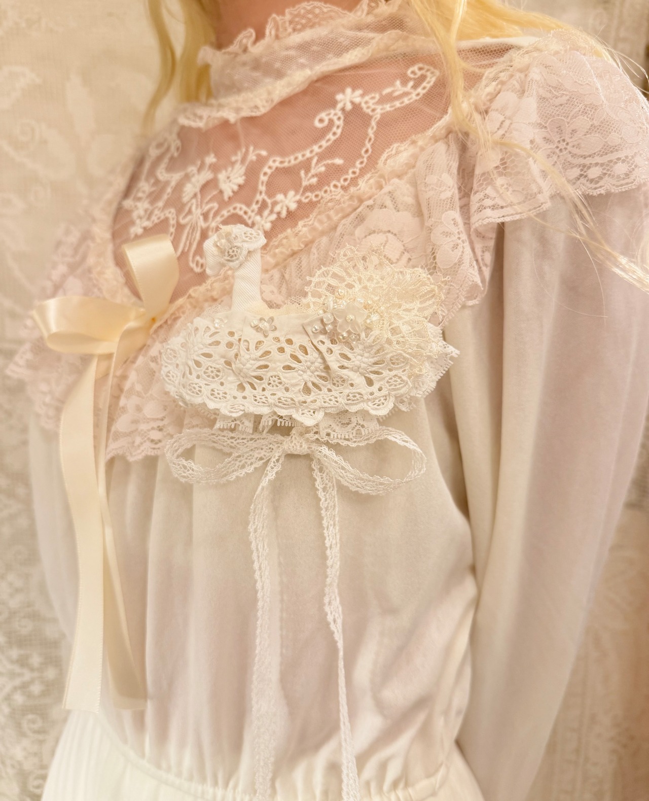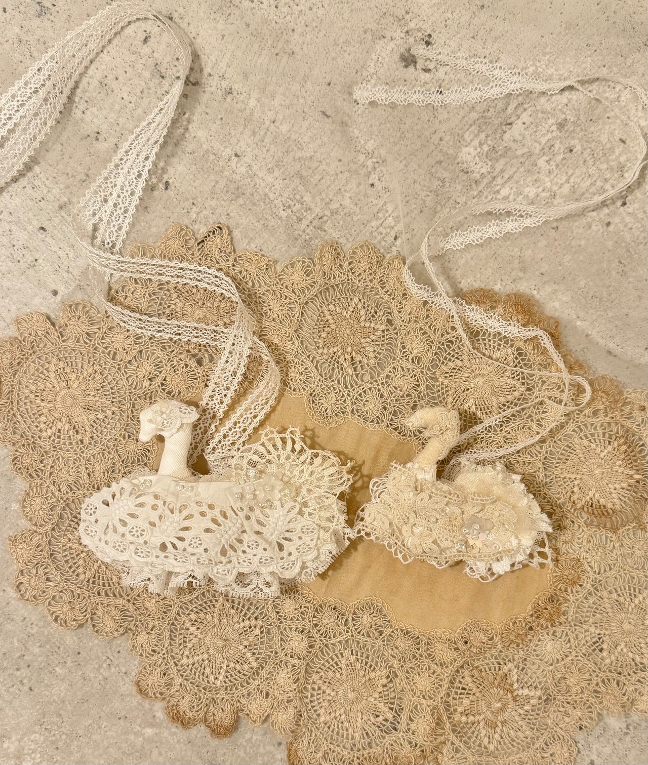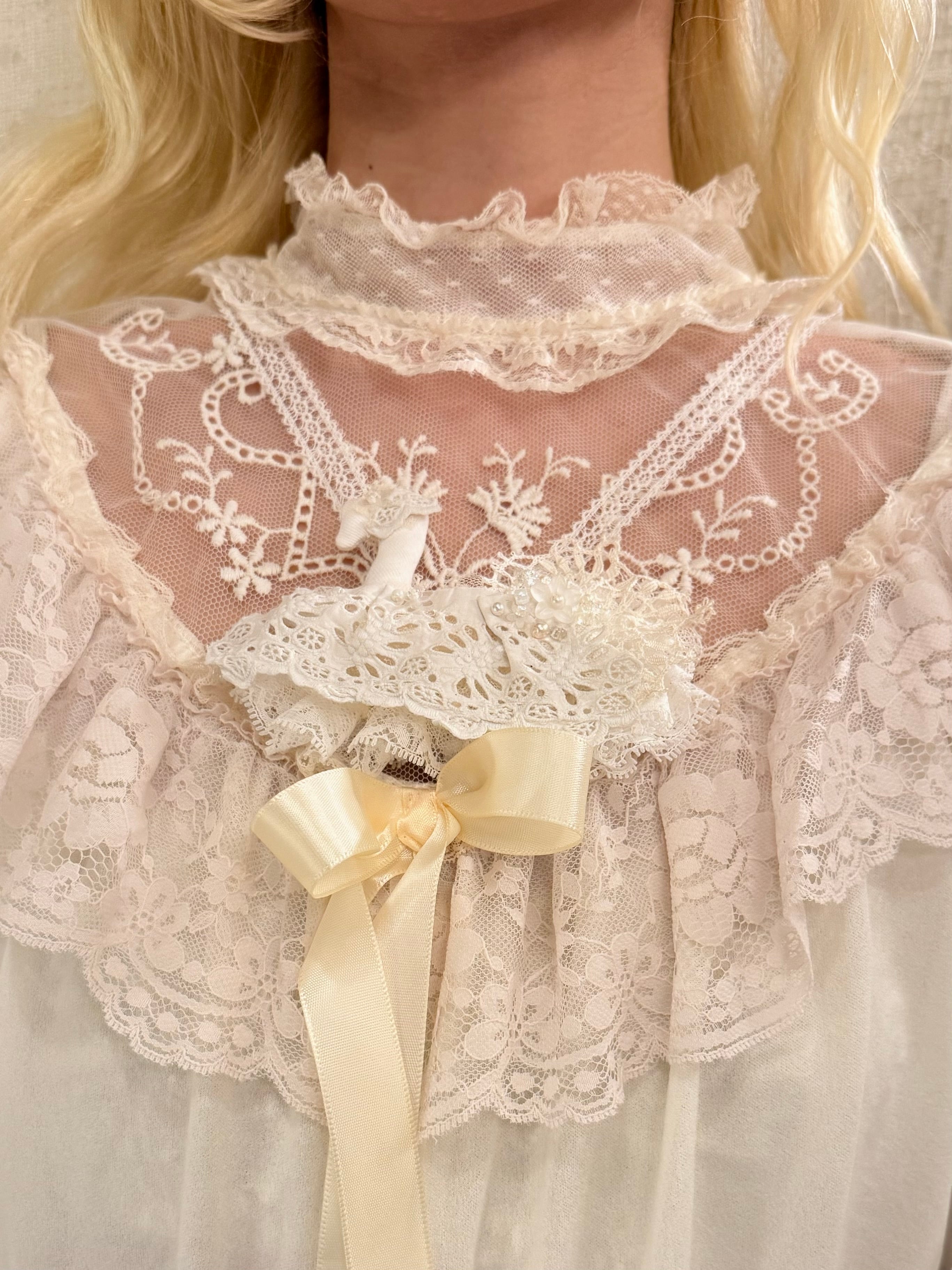 スワンをイメージして制作したモチーフにアンティークレースやビージュをコラージュした繊細な装飾が美しいネックレスです。˖ ࣪⊹