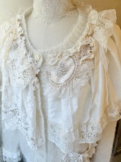 大きな襟や贅沢なレース使い。シアーなレースのポケットが可愛いです。