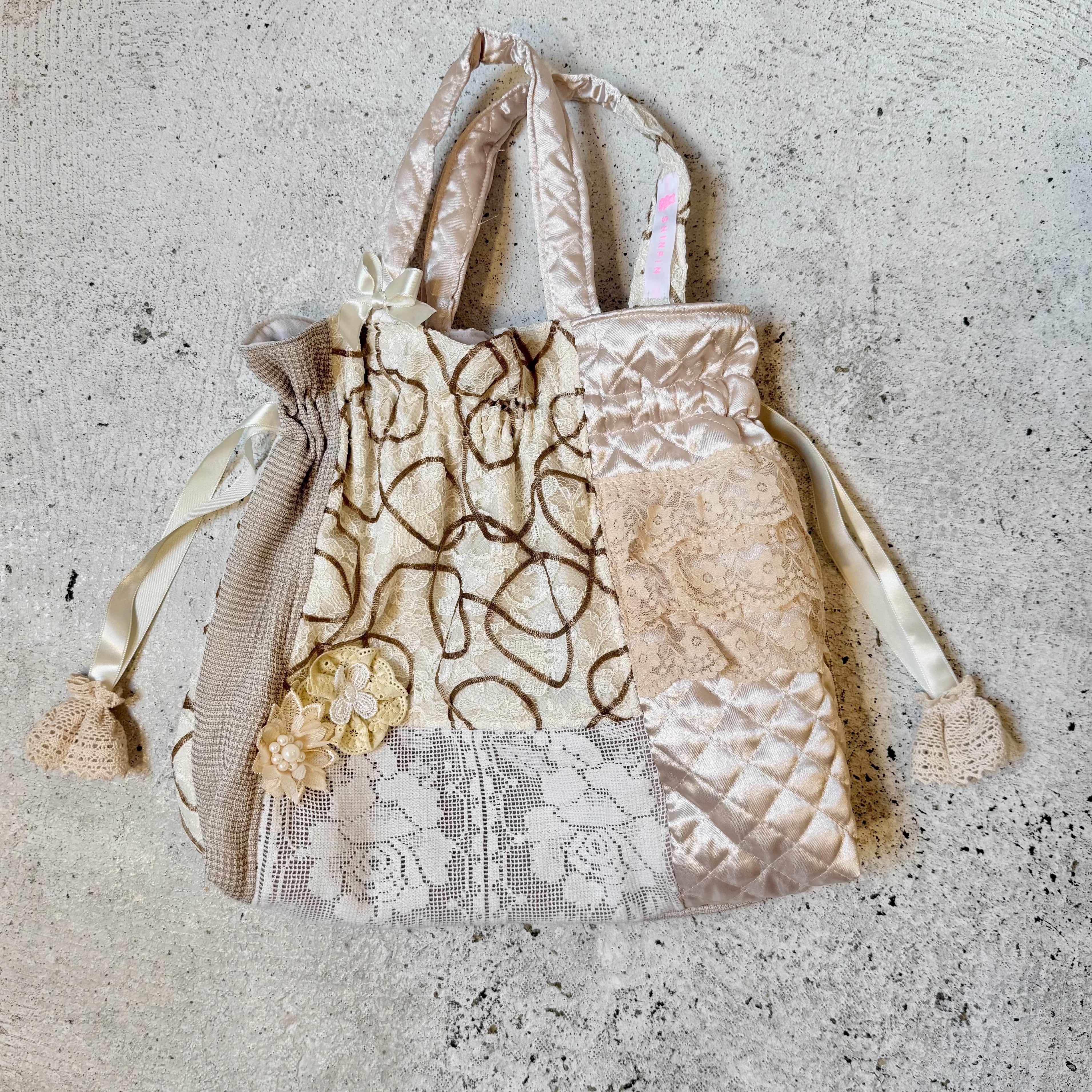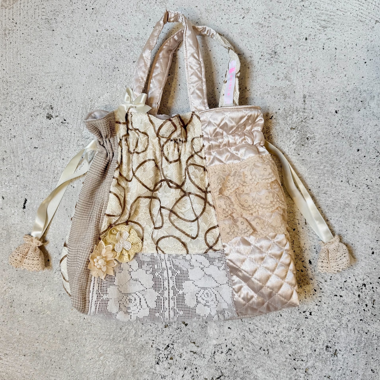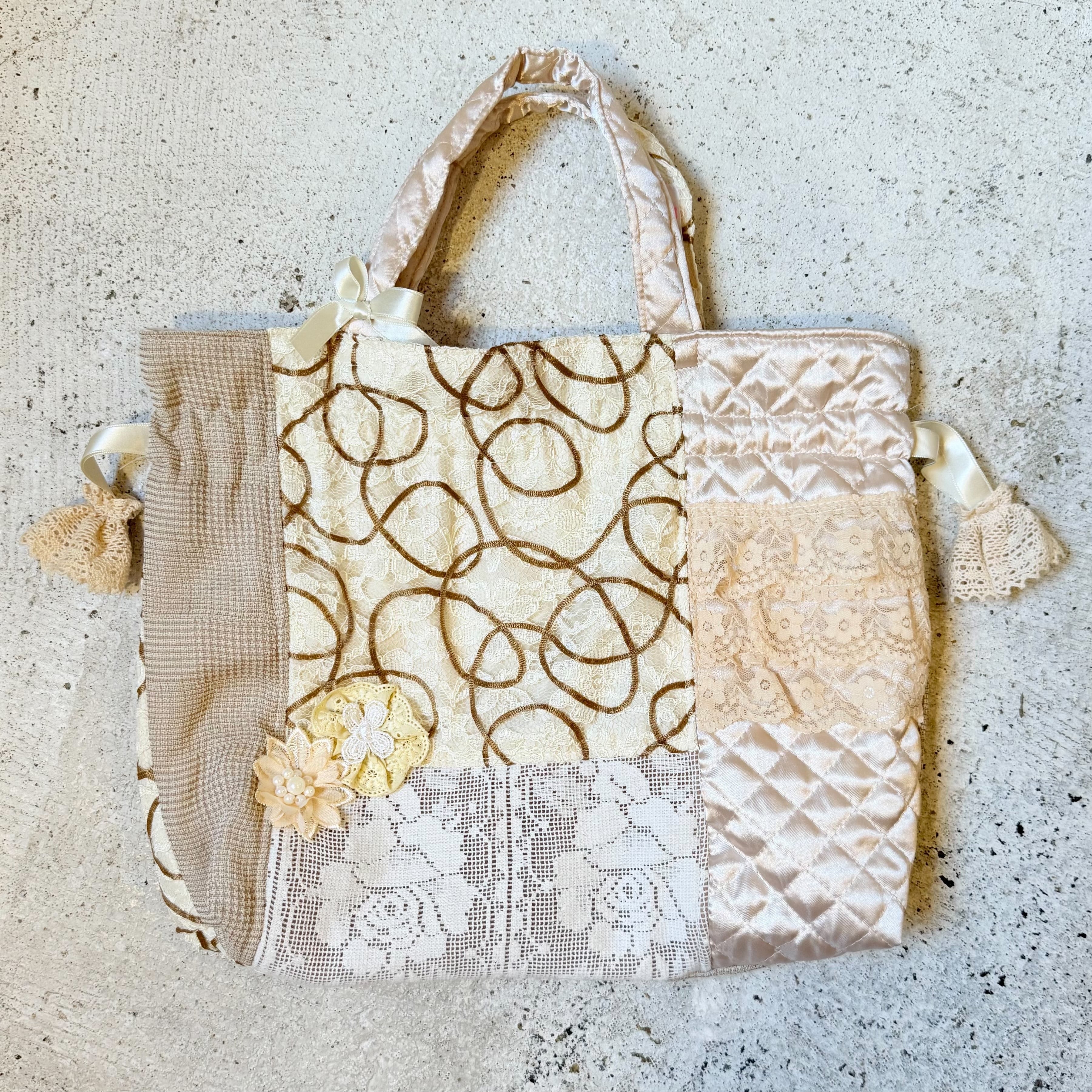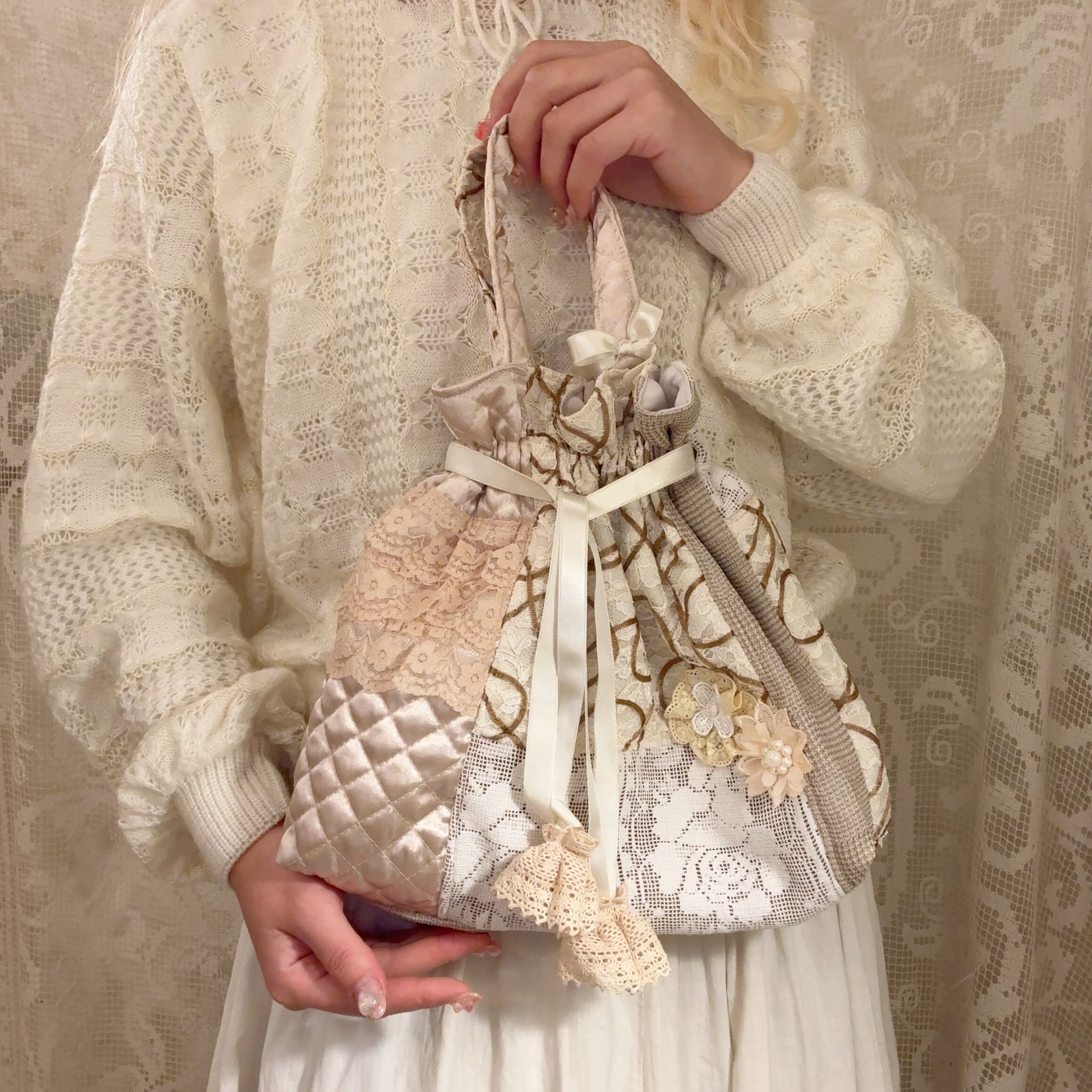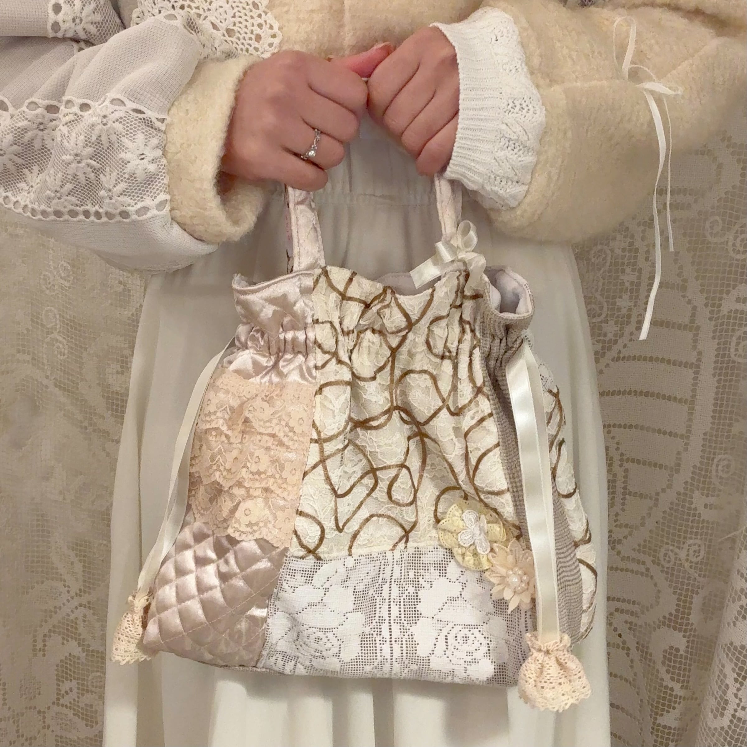 上部の巾着部分は絞らずにハンドバッグのようにも使用できます♡