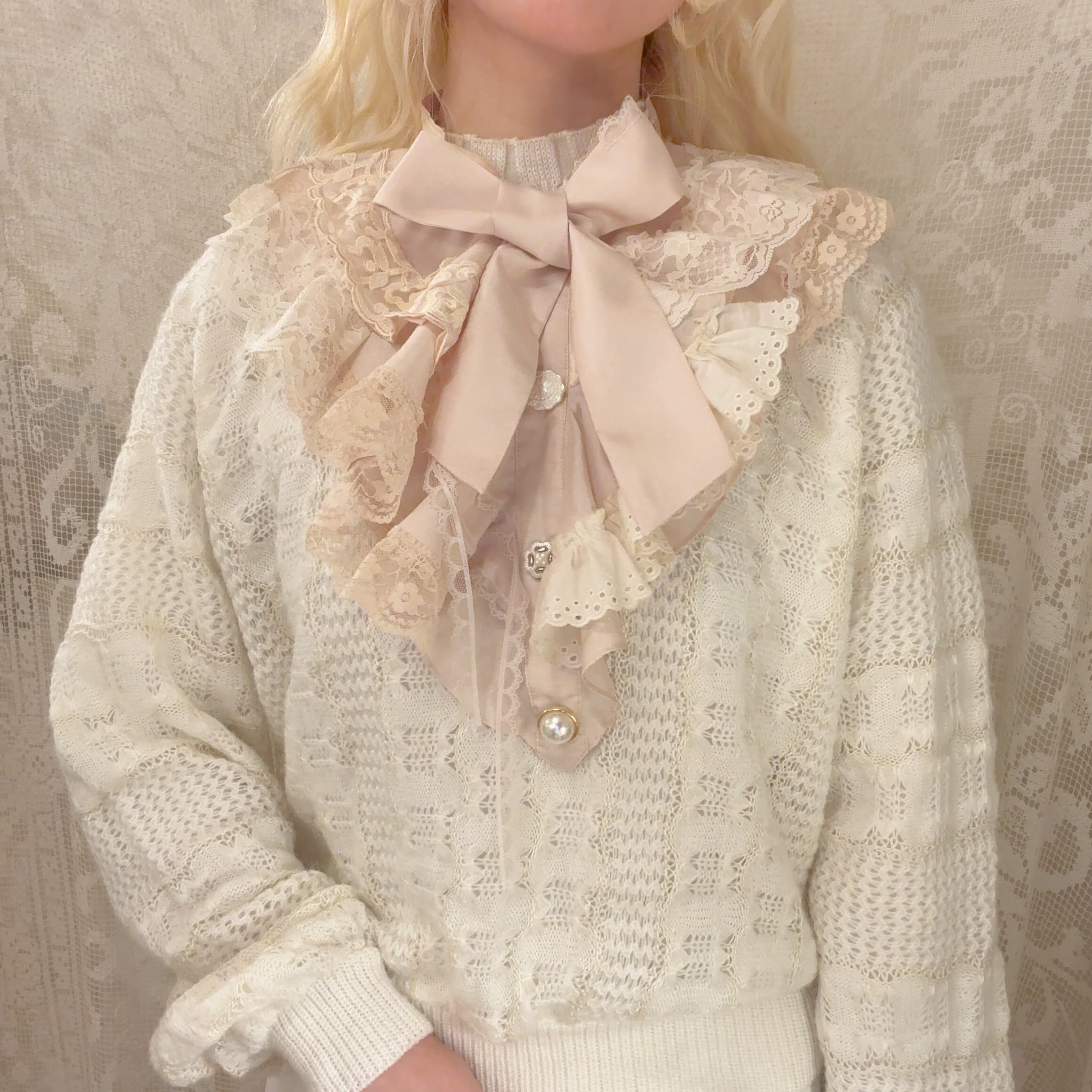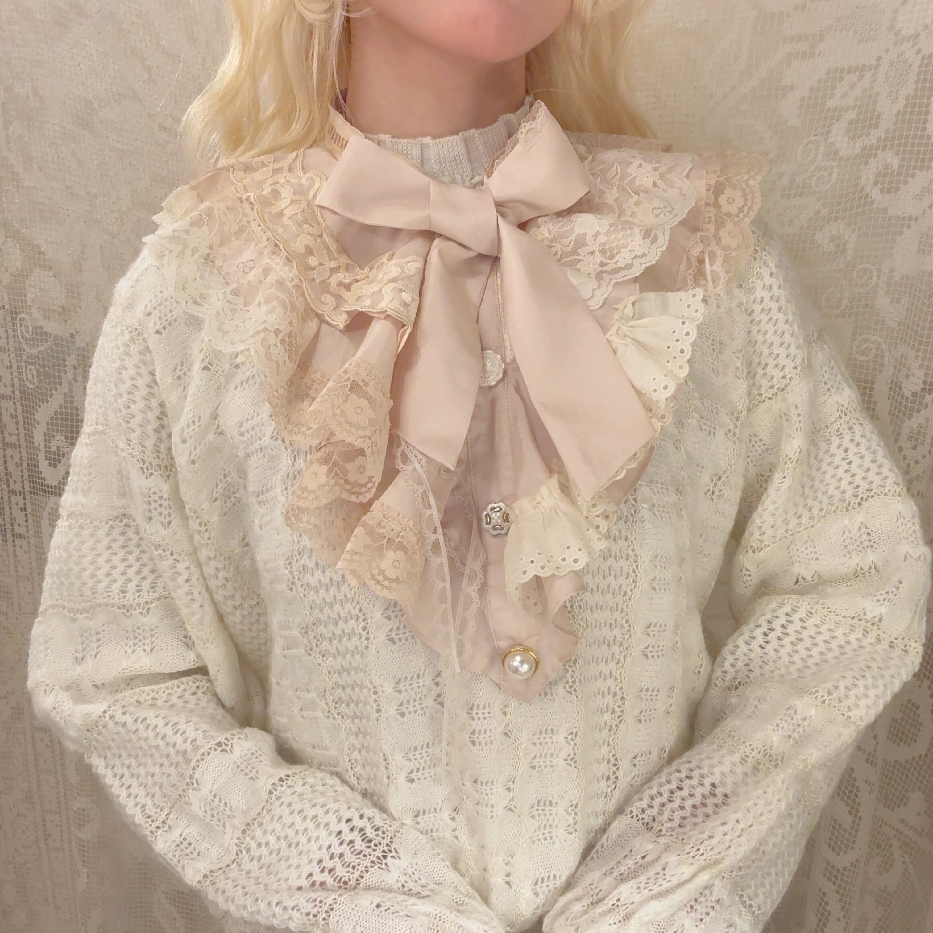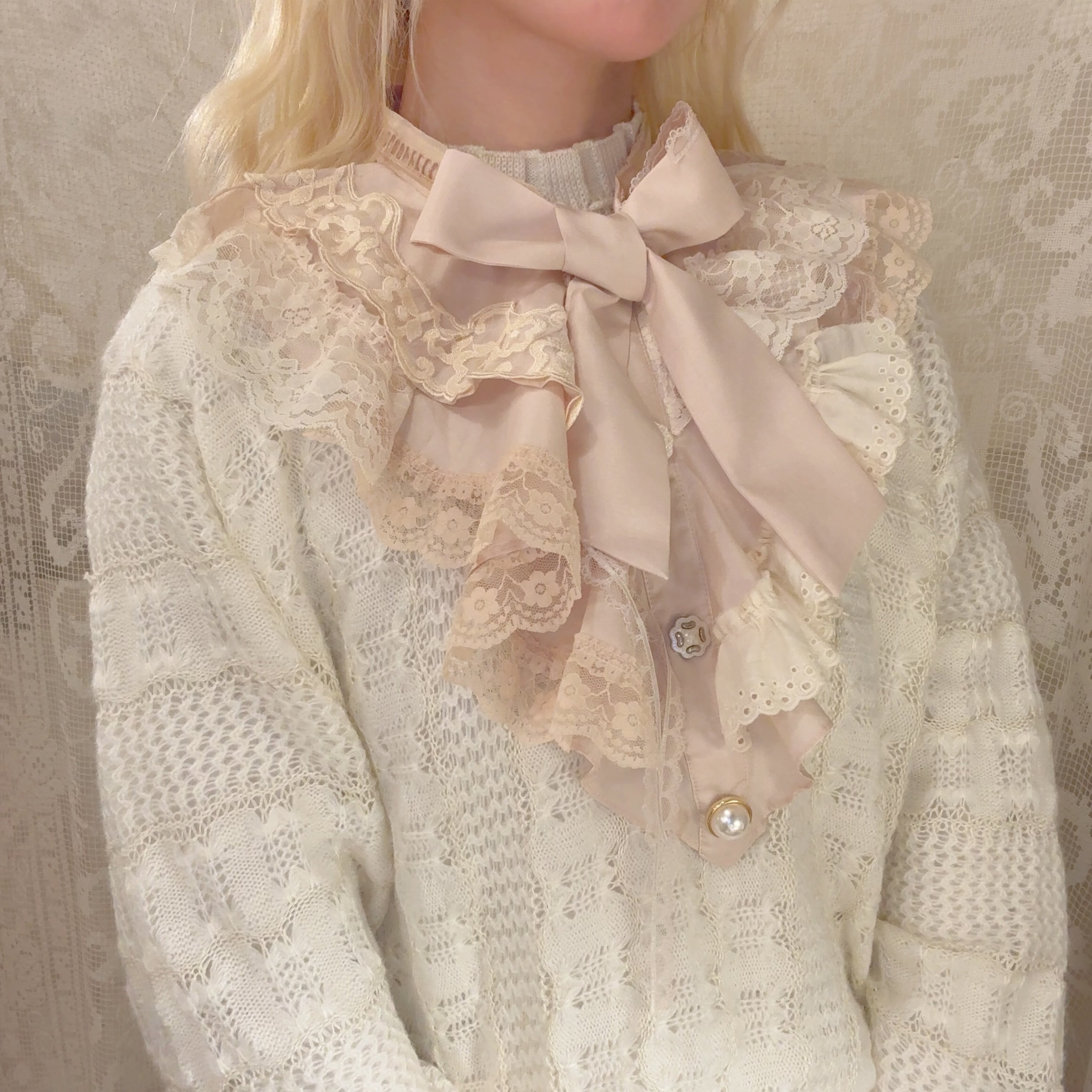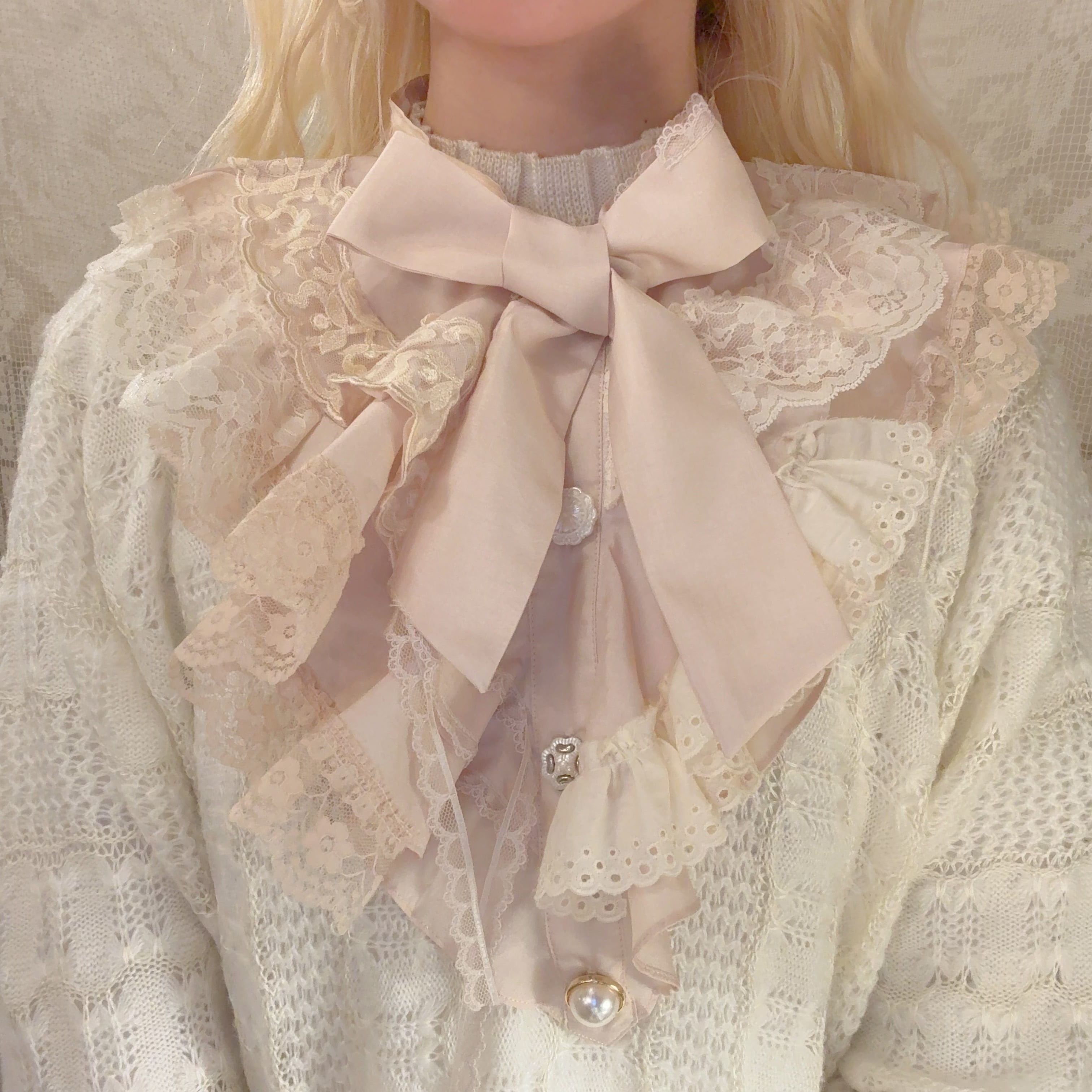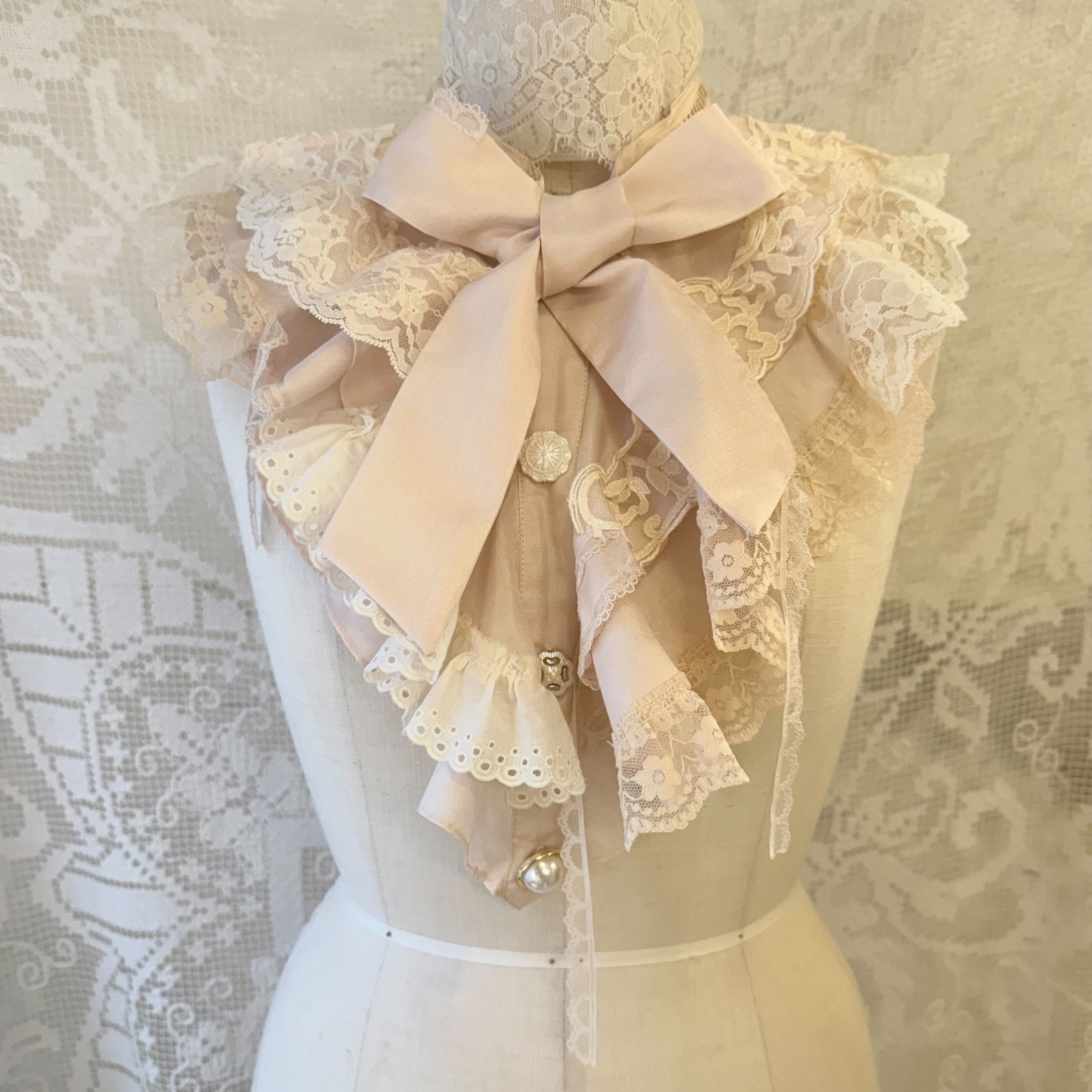 vintageのブラウスをリメイクしたシャボつけ襟♡