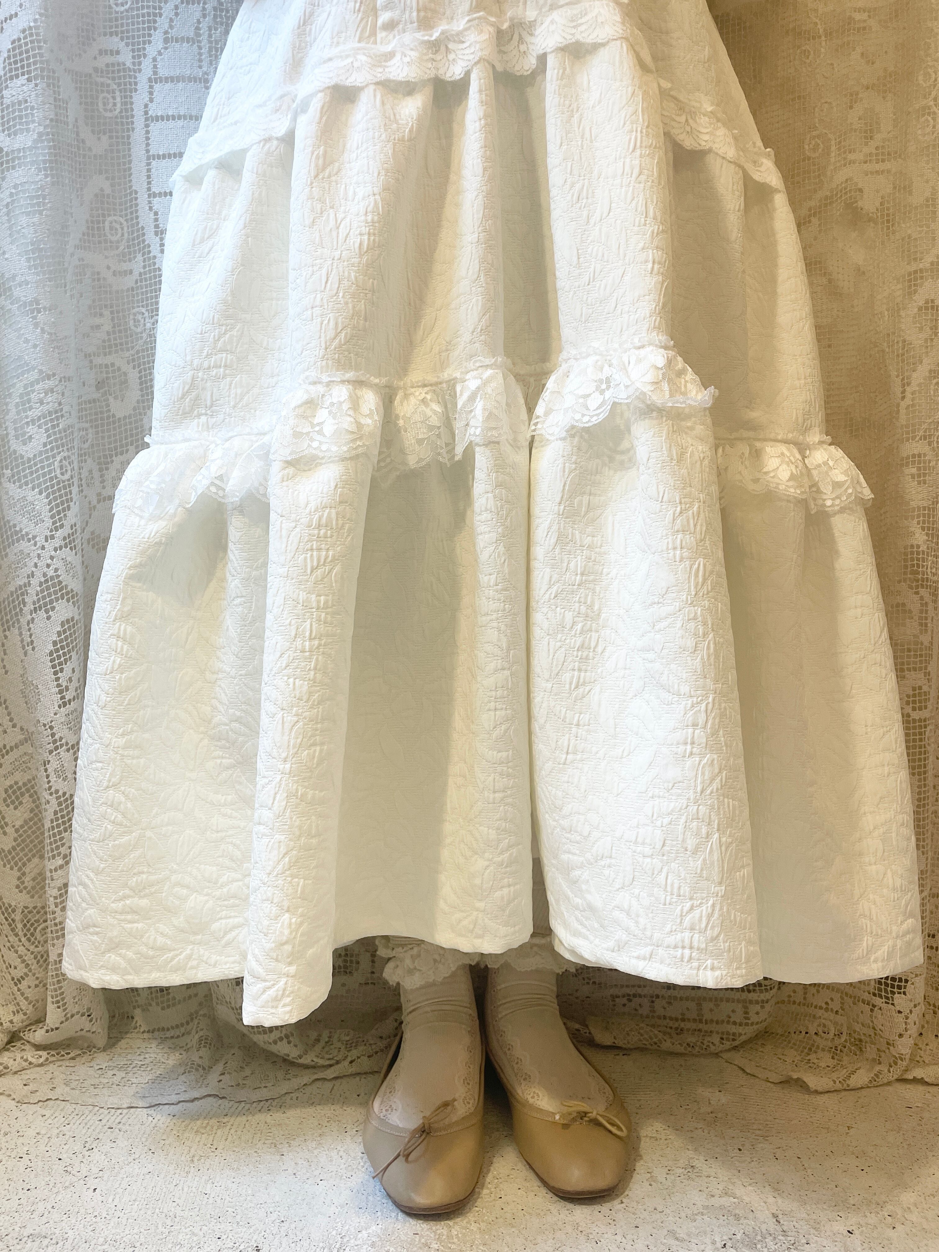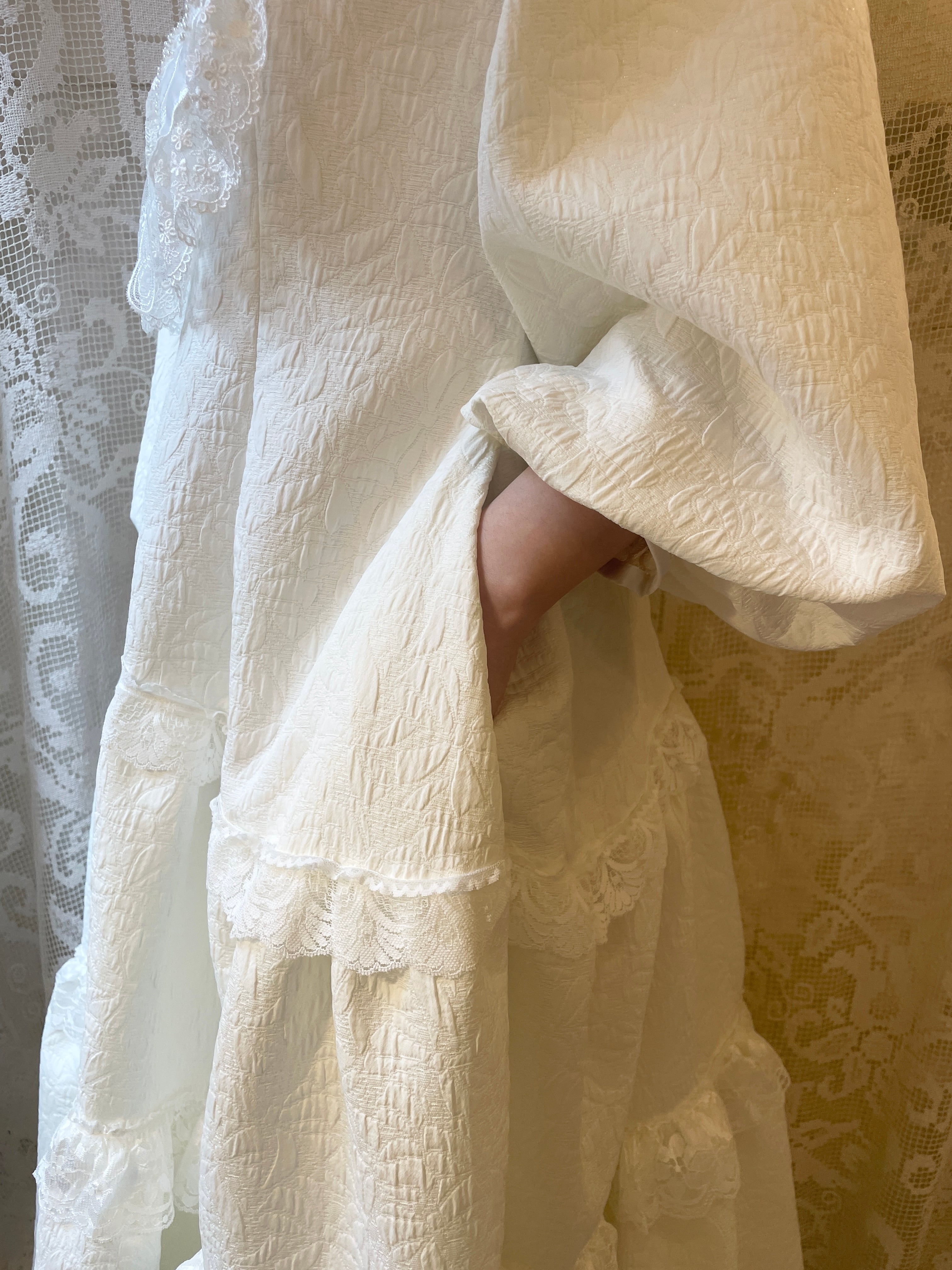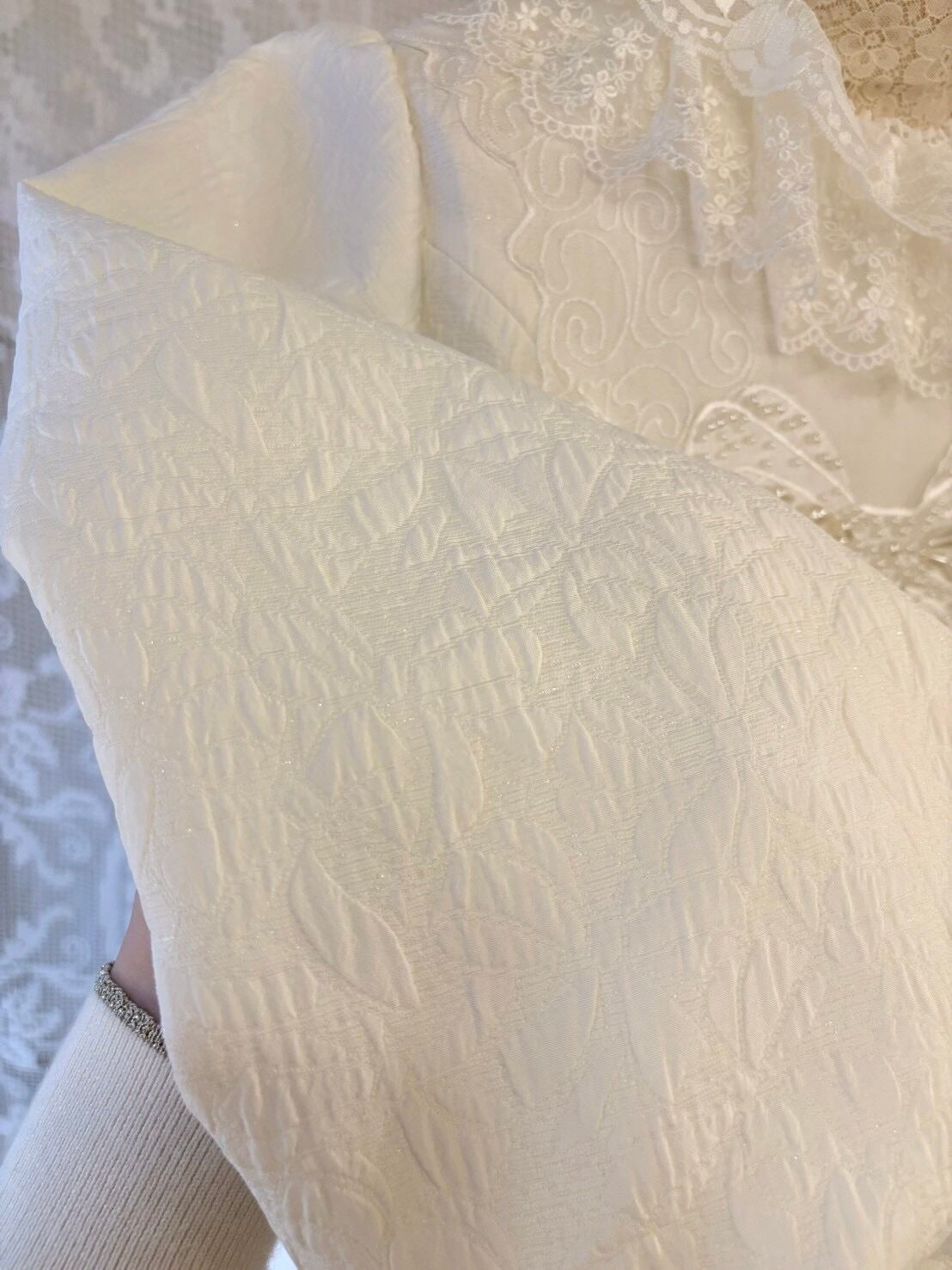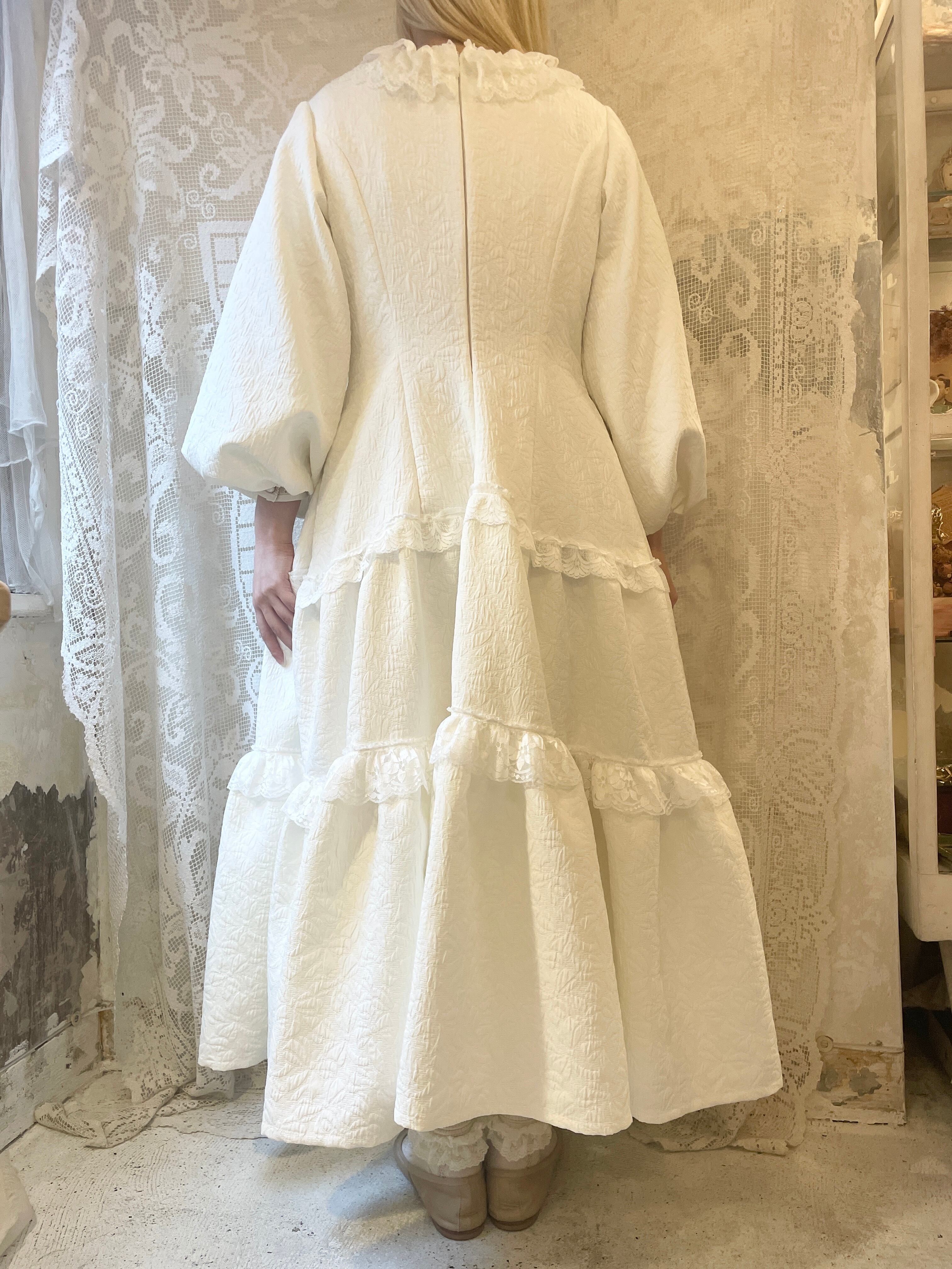 オフホワイトのお花模様のジャガード素材を贅沢に使用して仕立てたスペシャルなドレス˖ ࣪⊹