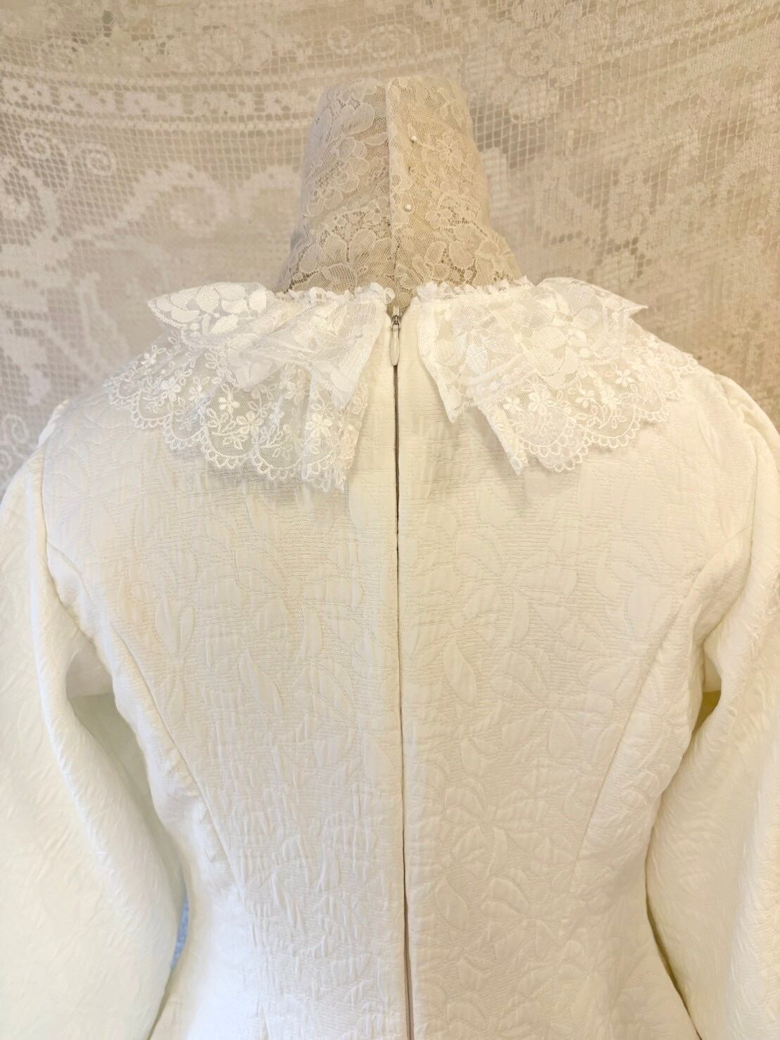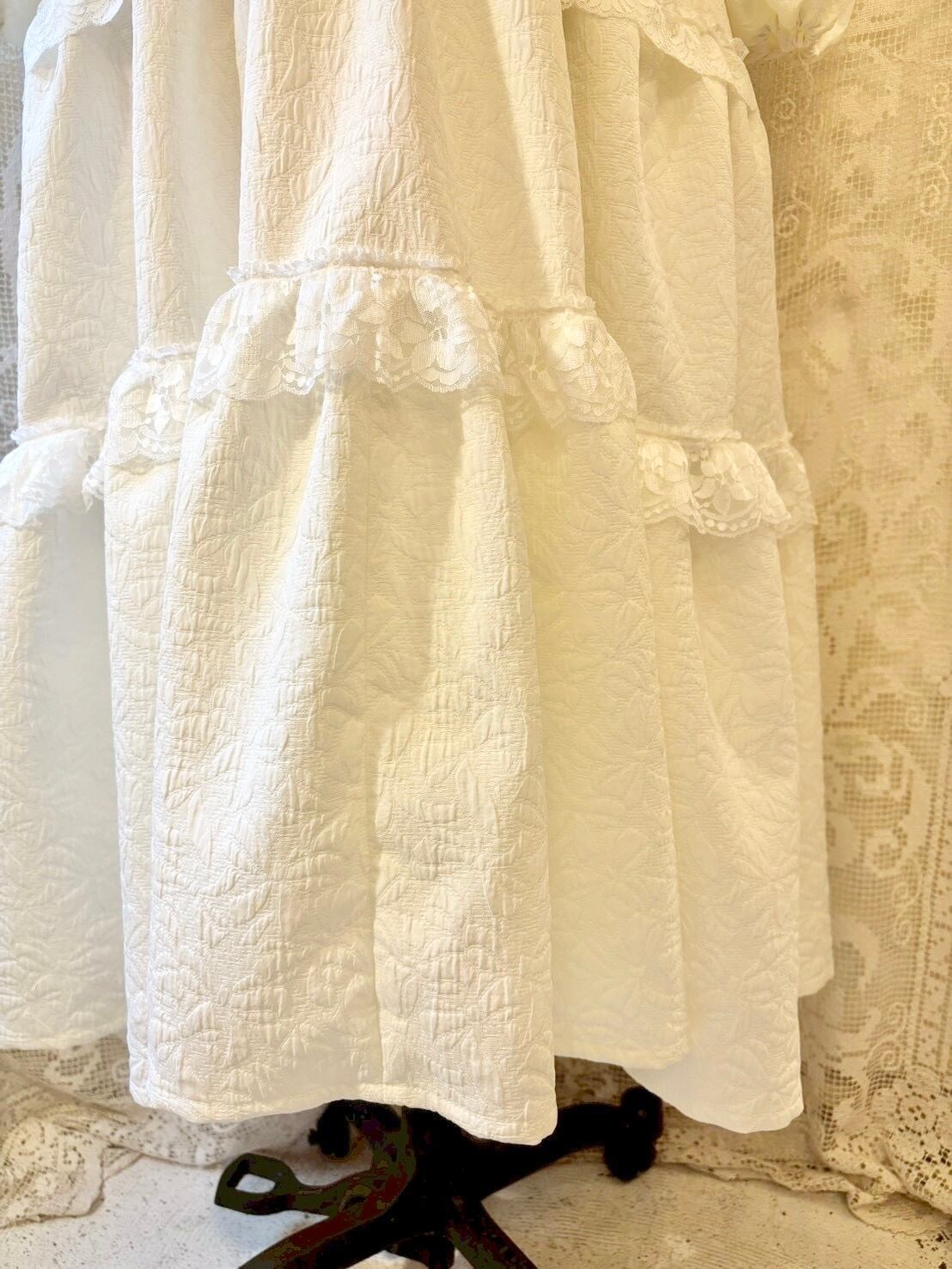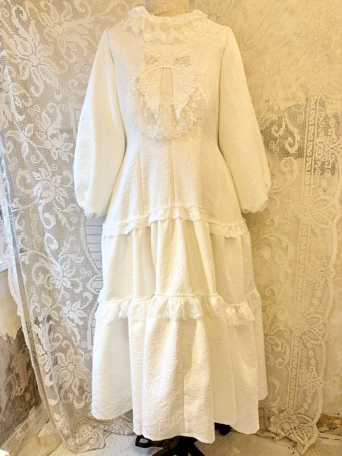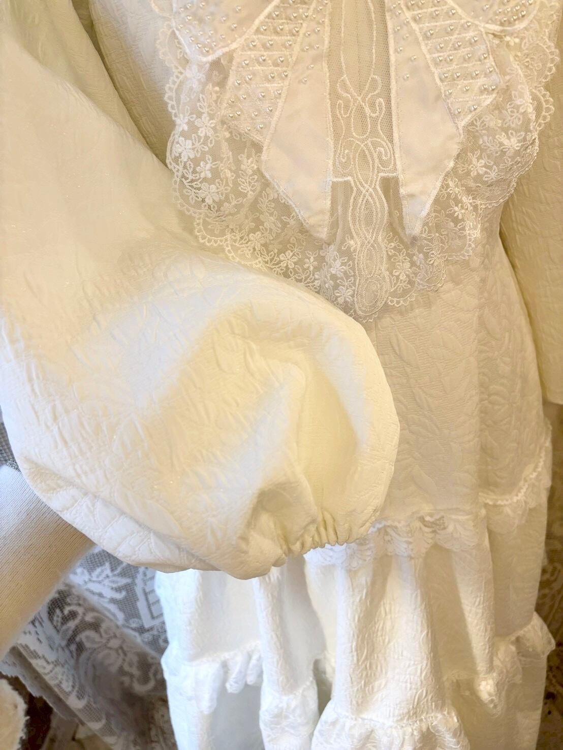 オフホワイトのお花模様のジャガード素材を贅沢に使用して仕立てたスペシャルなドレス˖ ࣪⊹
