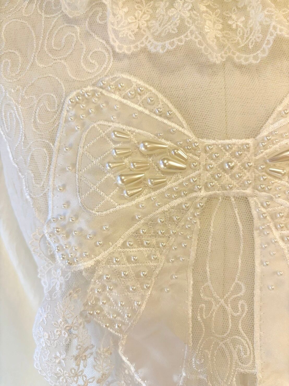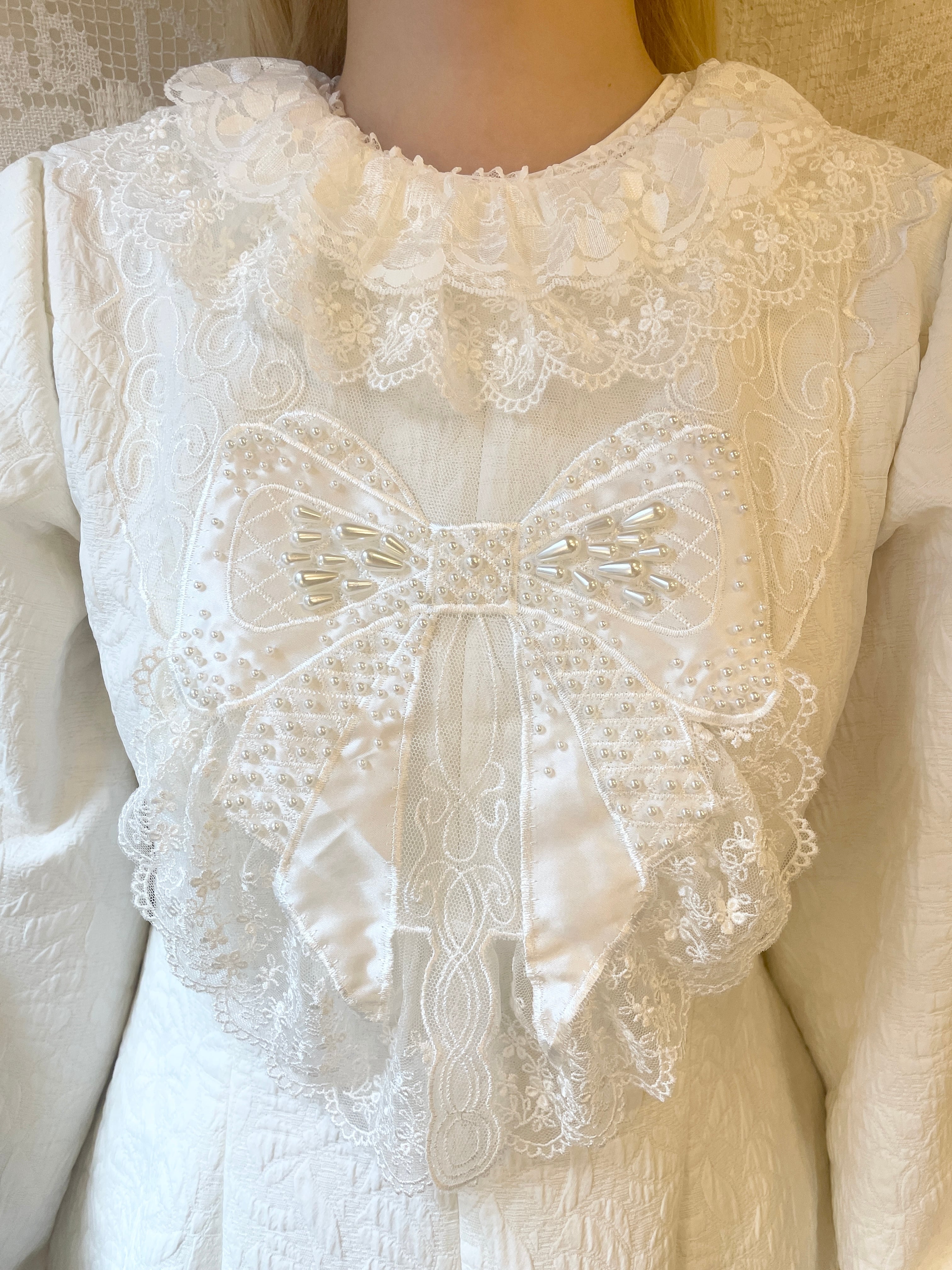 胸元の大きなリボンモチーフにビーズを手刺繍で装飾しています˖ ࣪⊹