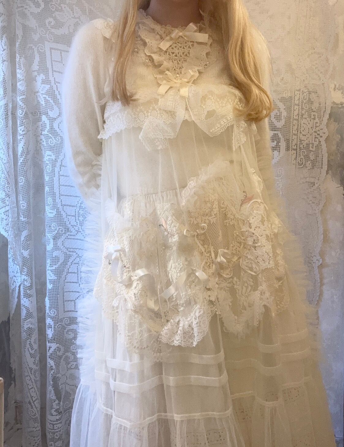 レースをパッチワークしたような装飾が華やかで美しいドレスです˖ ࣪⊹