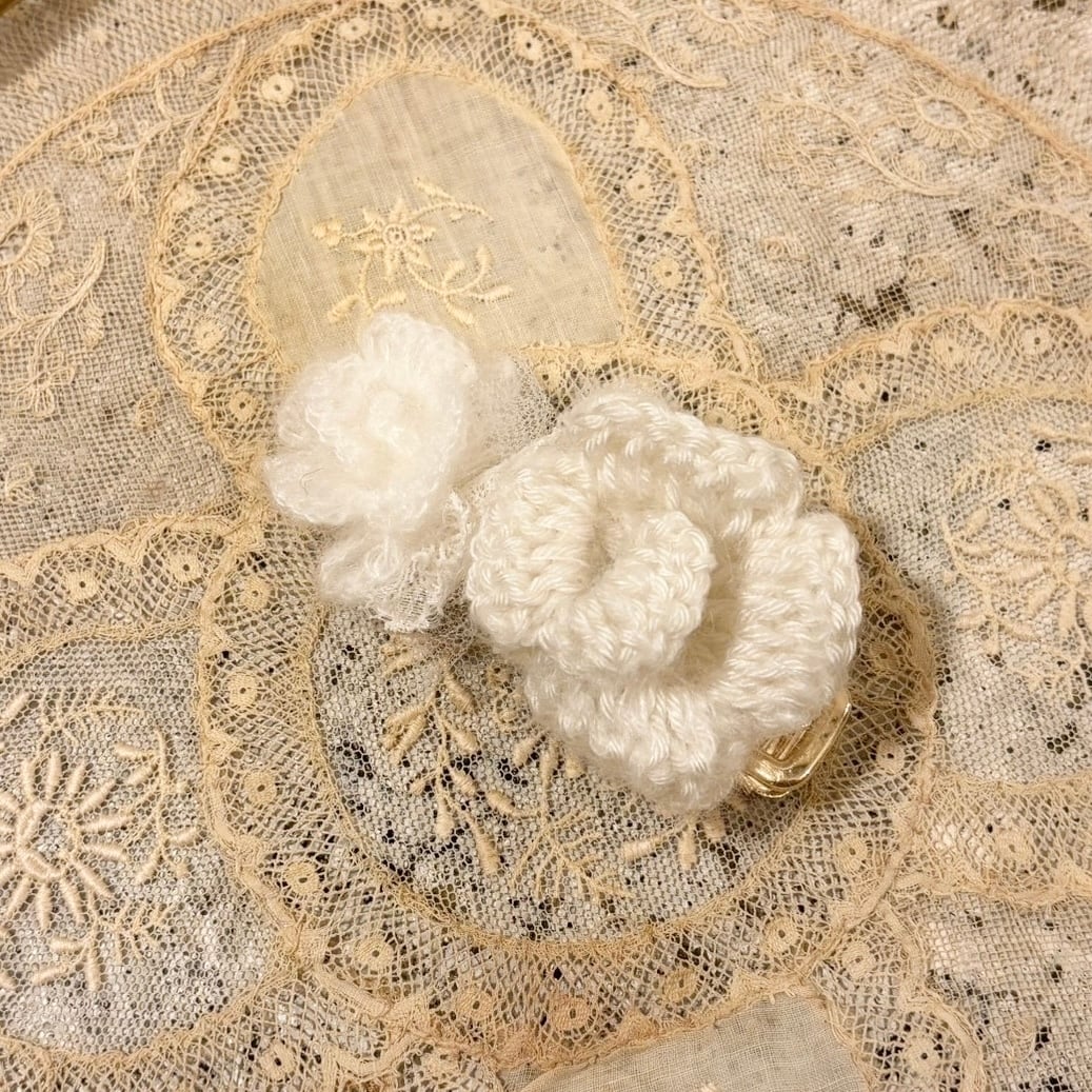 手編みで一から制作した繊細なデザインのヘアクリップ♡ ˖ ࣪⊹