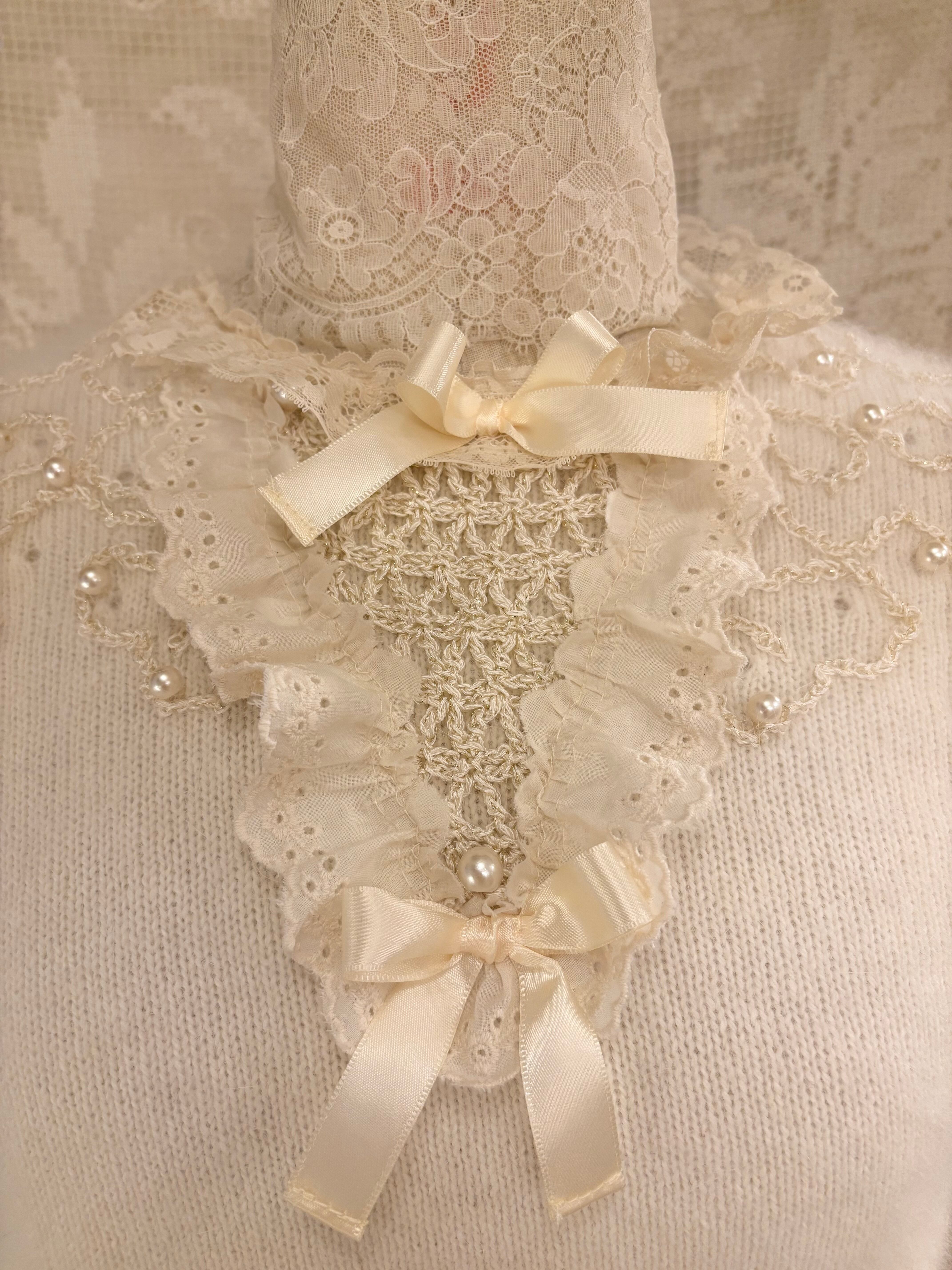 胸元の透かし編みのディティールも可愛いです˖ ࣪⊹