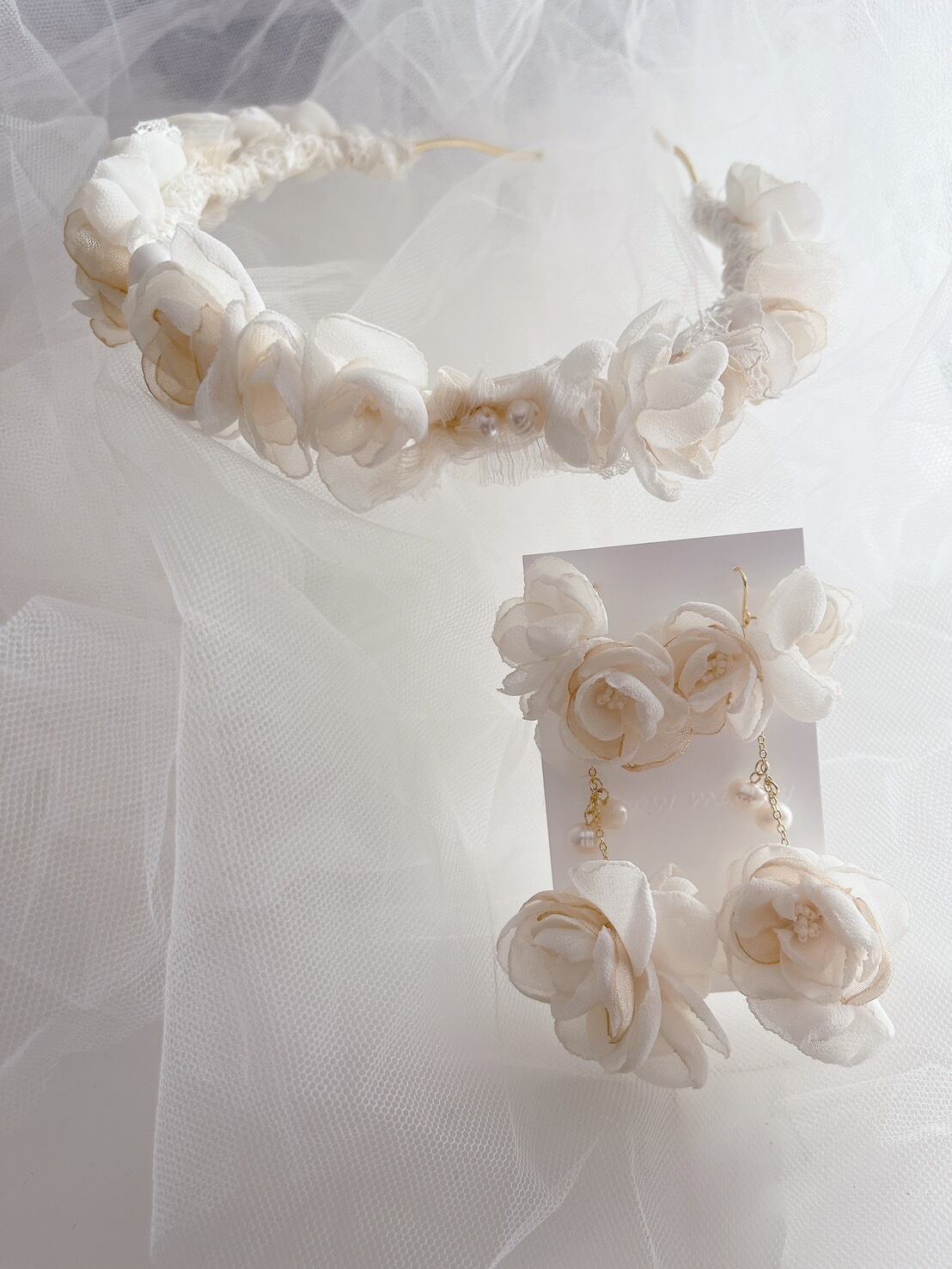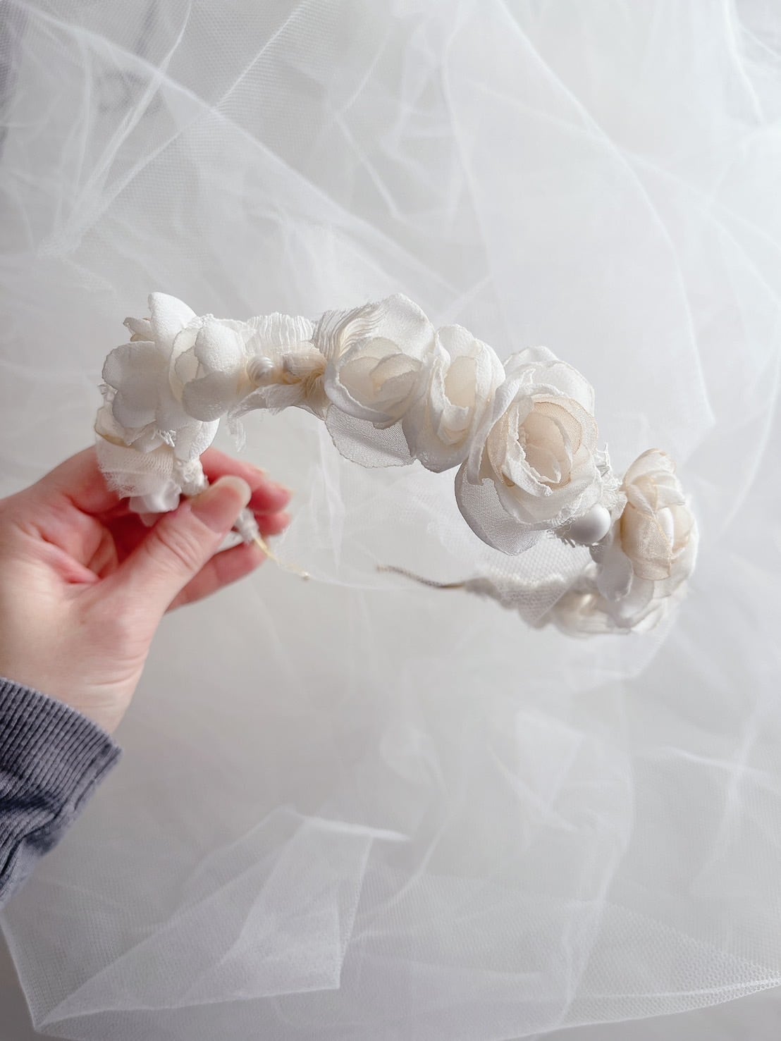 花びら一枚一枚のパーツからハンドメイドで制作した繊細なデザインのカチューシャ♡ ˖ ࣪⊹