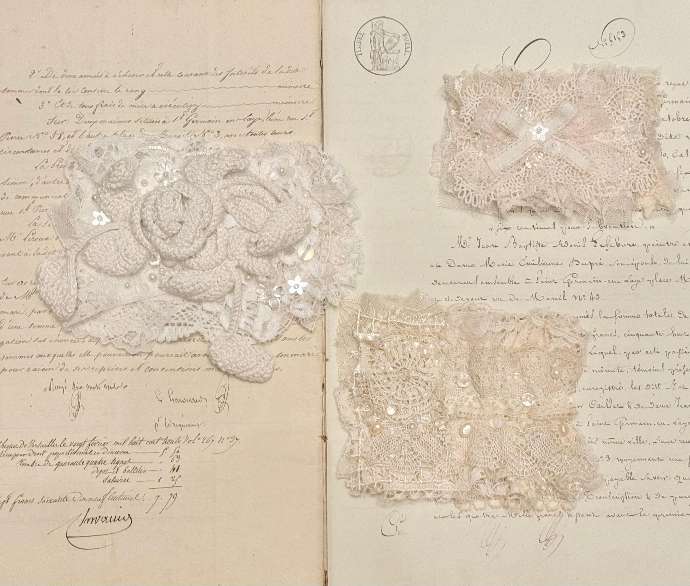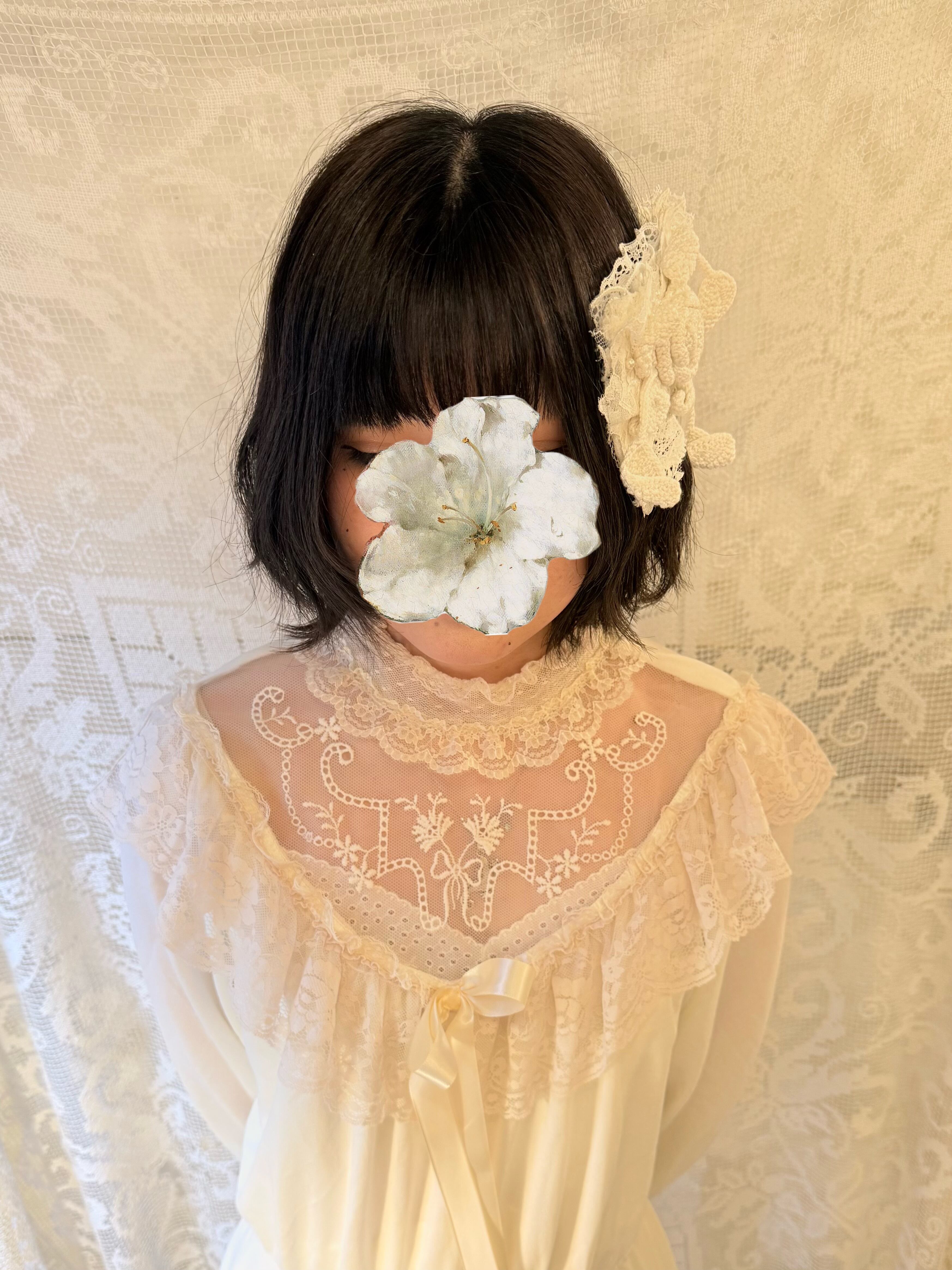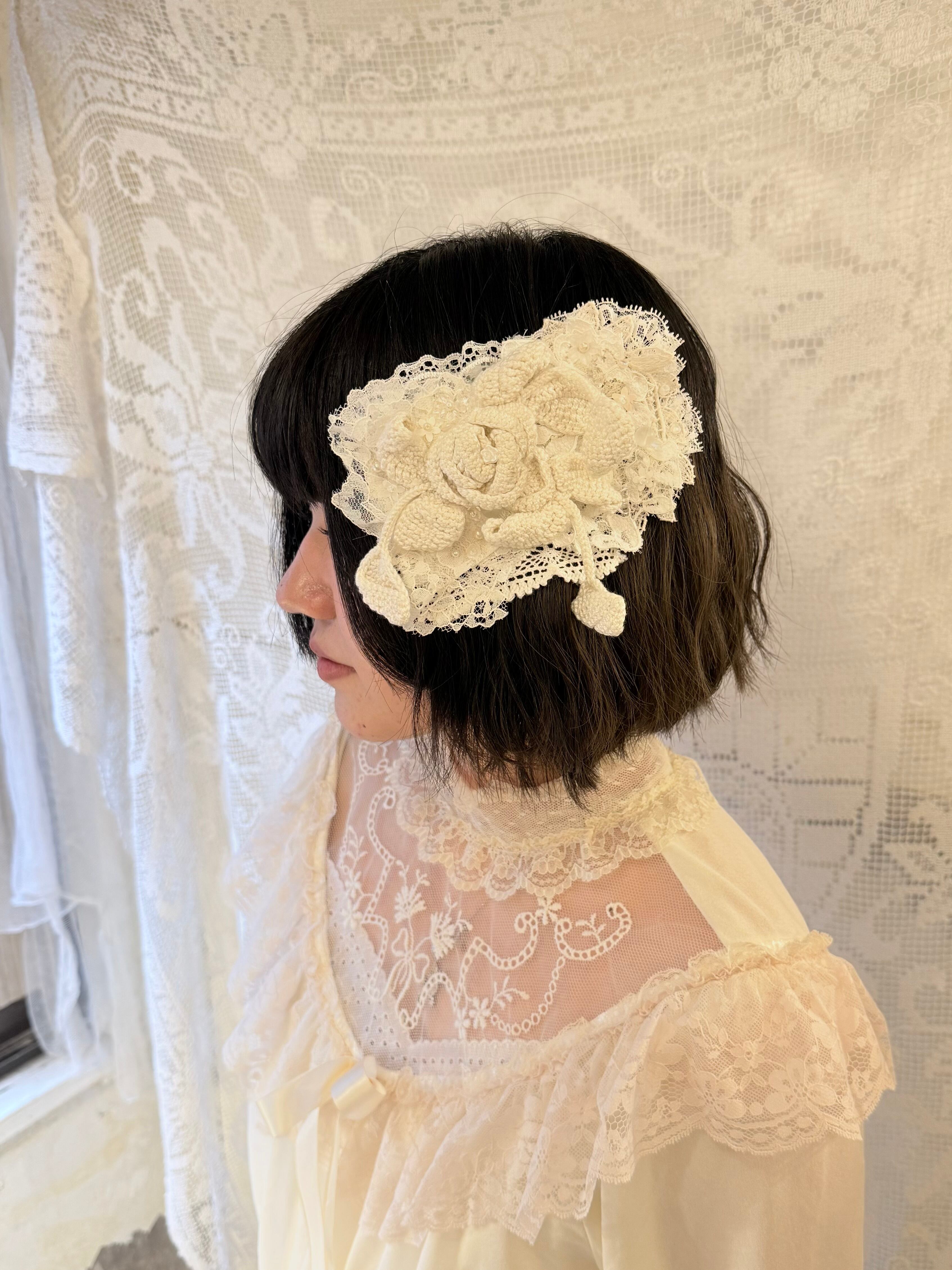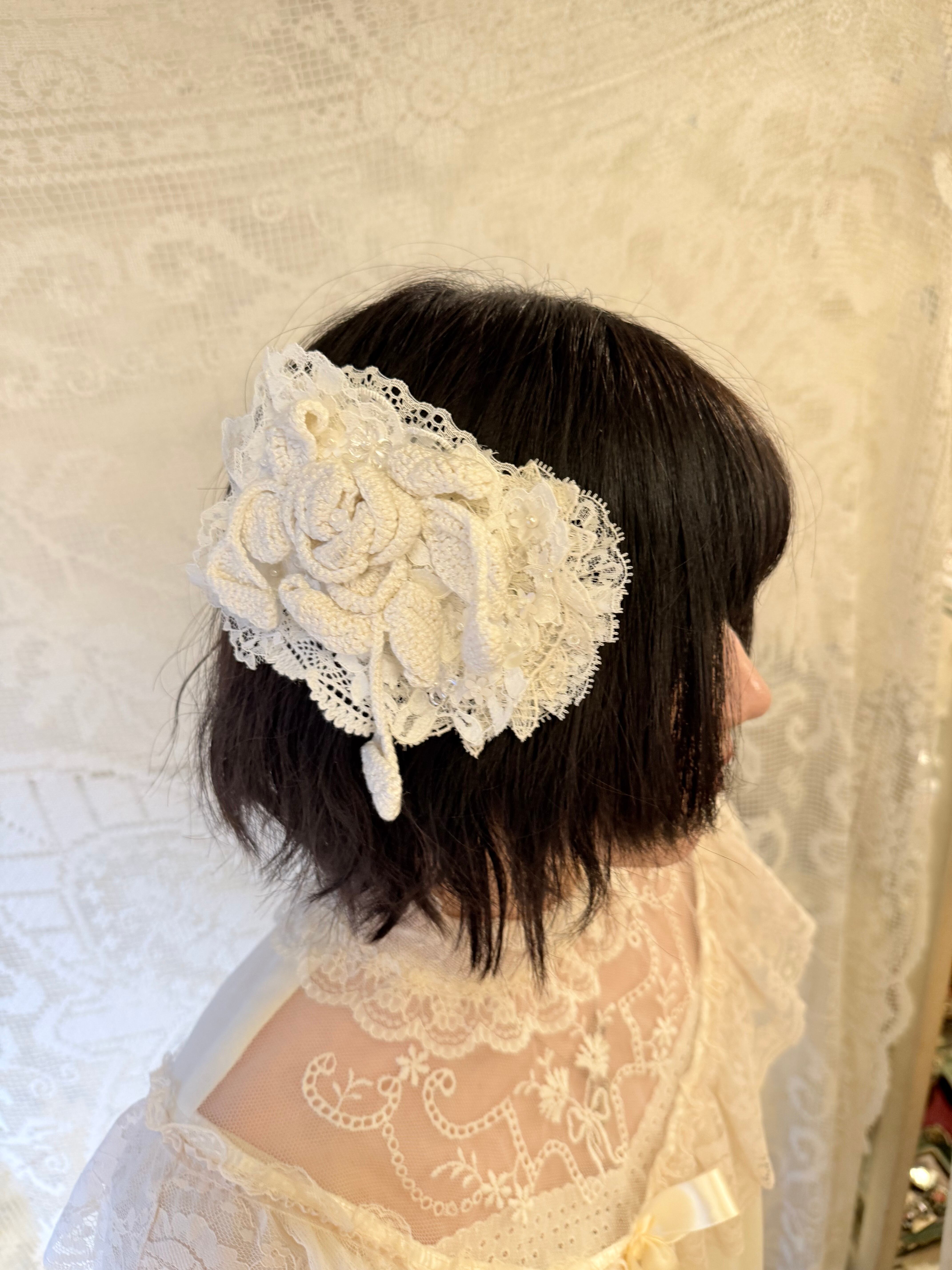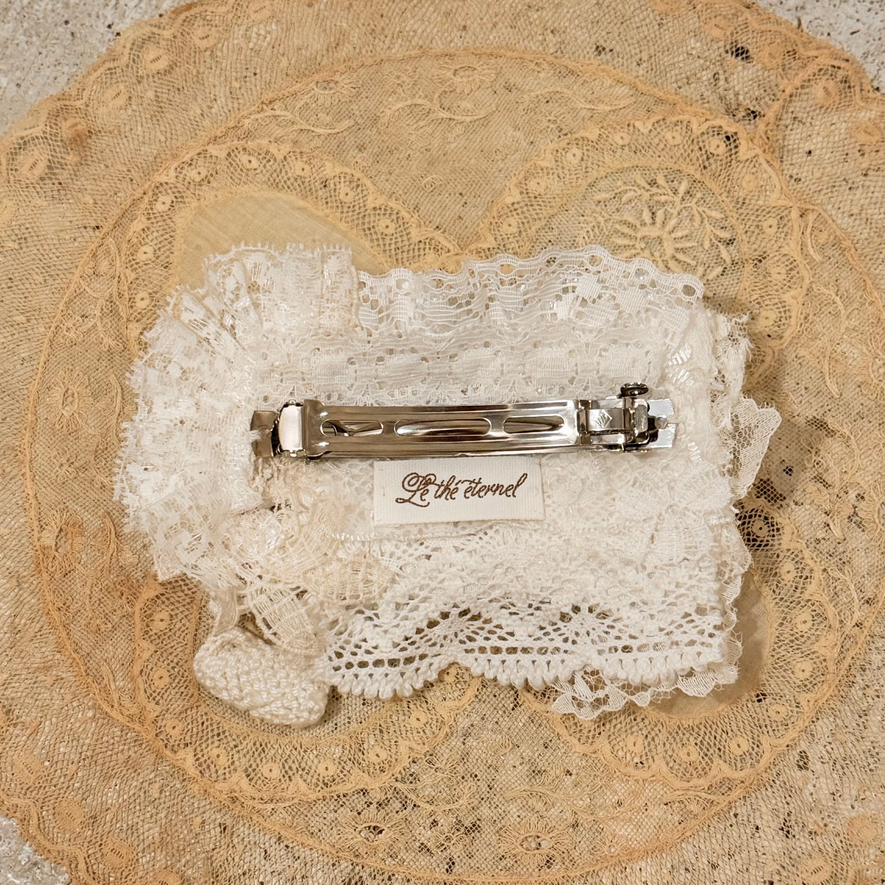 アンティークレースやお花のモチーフをコラージュした繊細な装飾が美しいバレッタです。˖ ࣪⊹