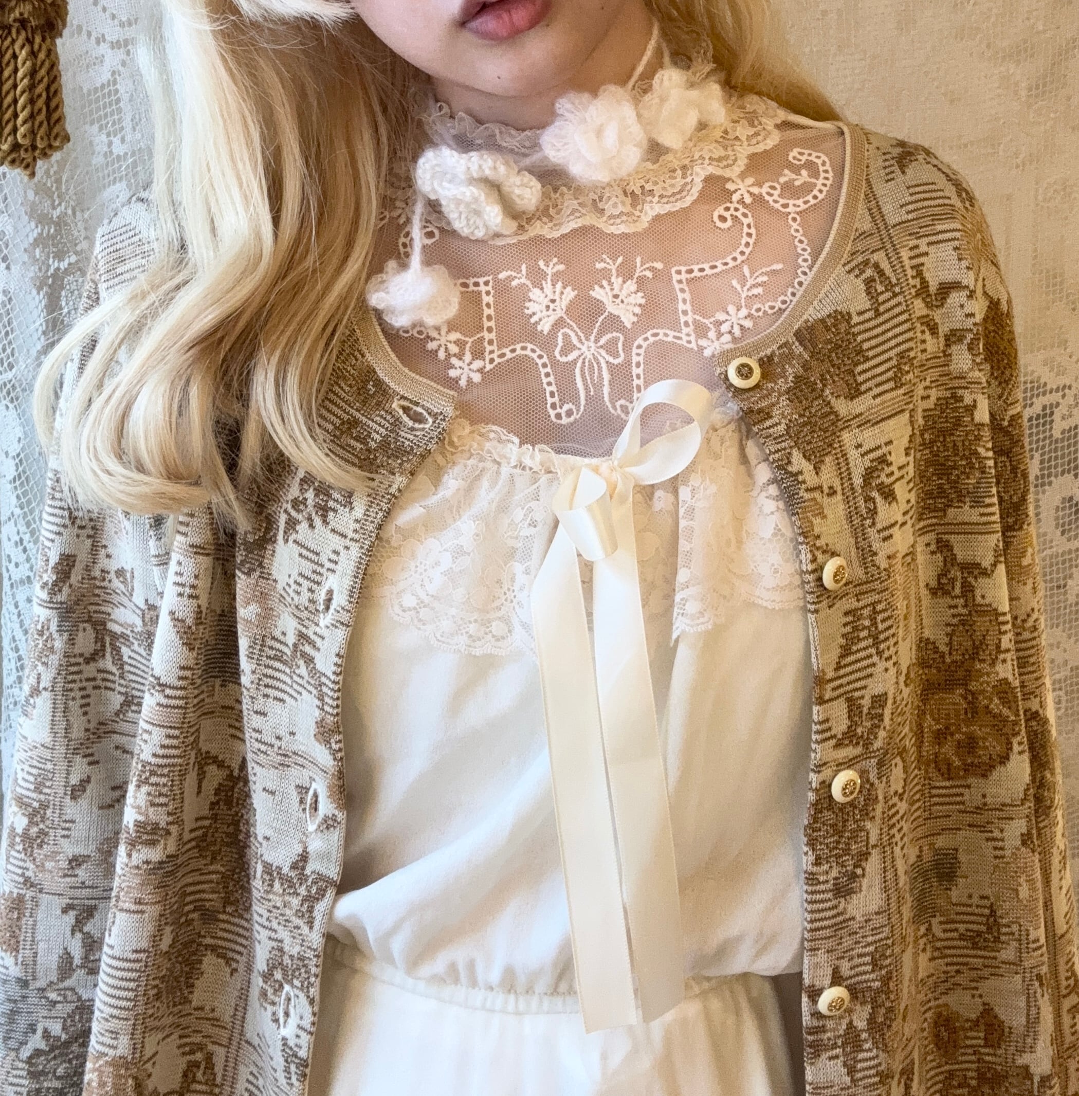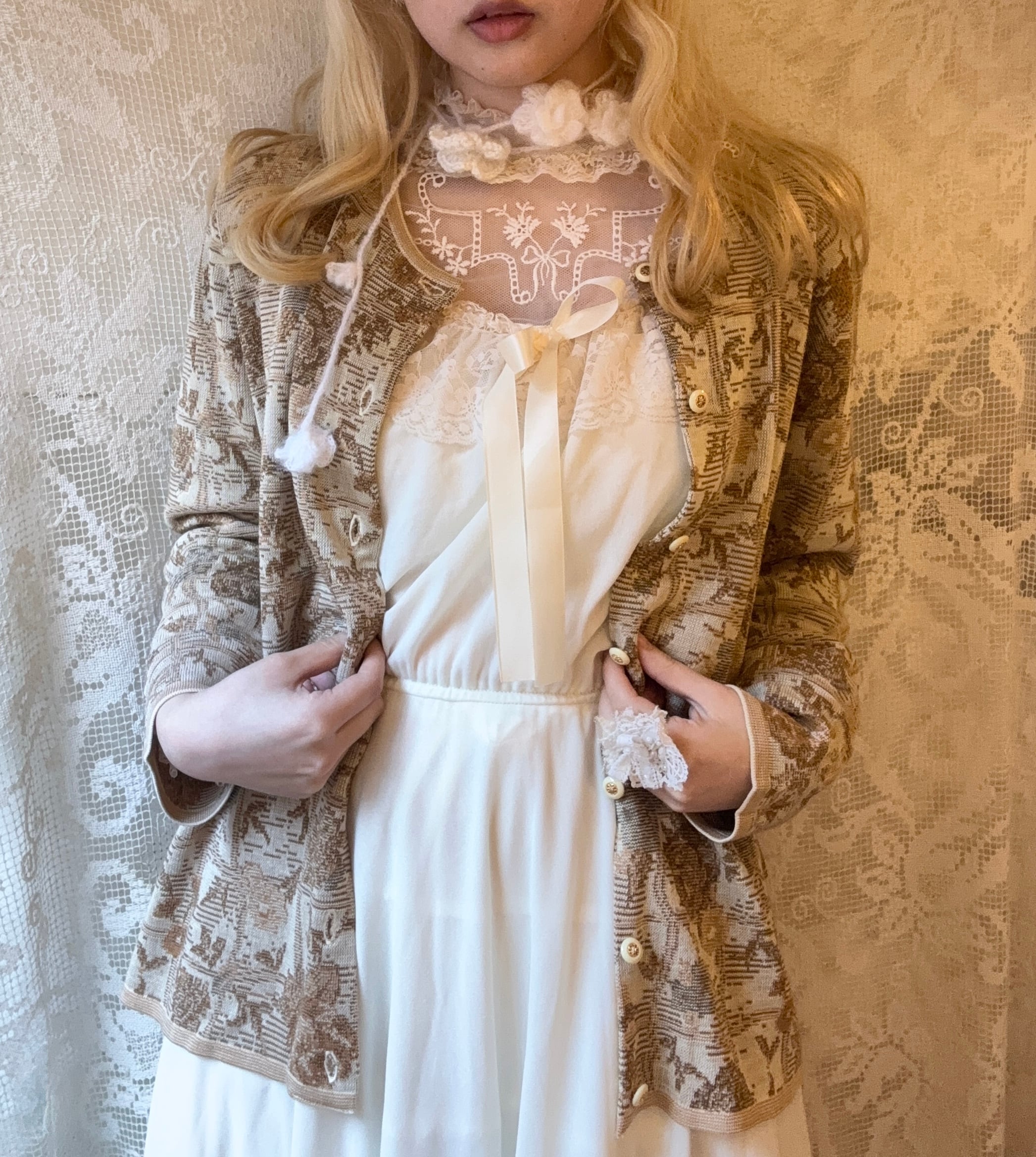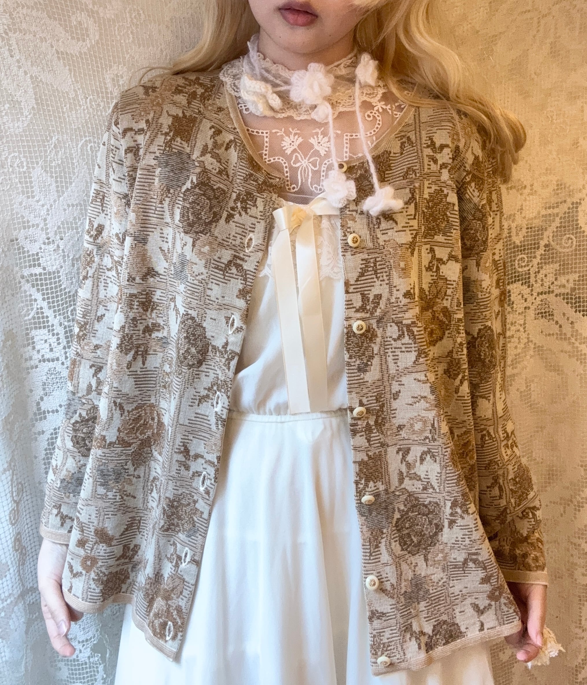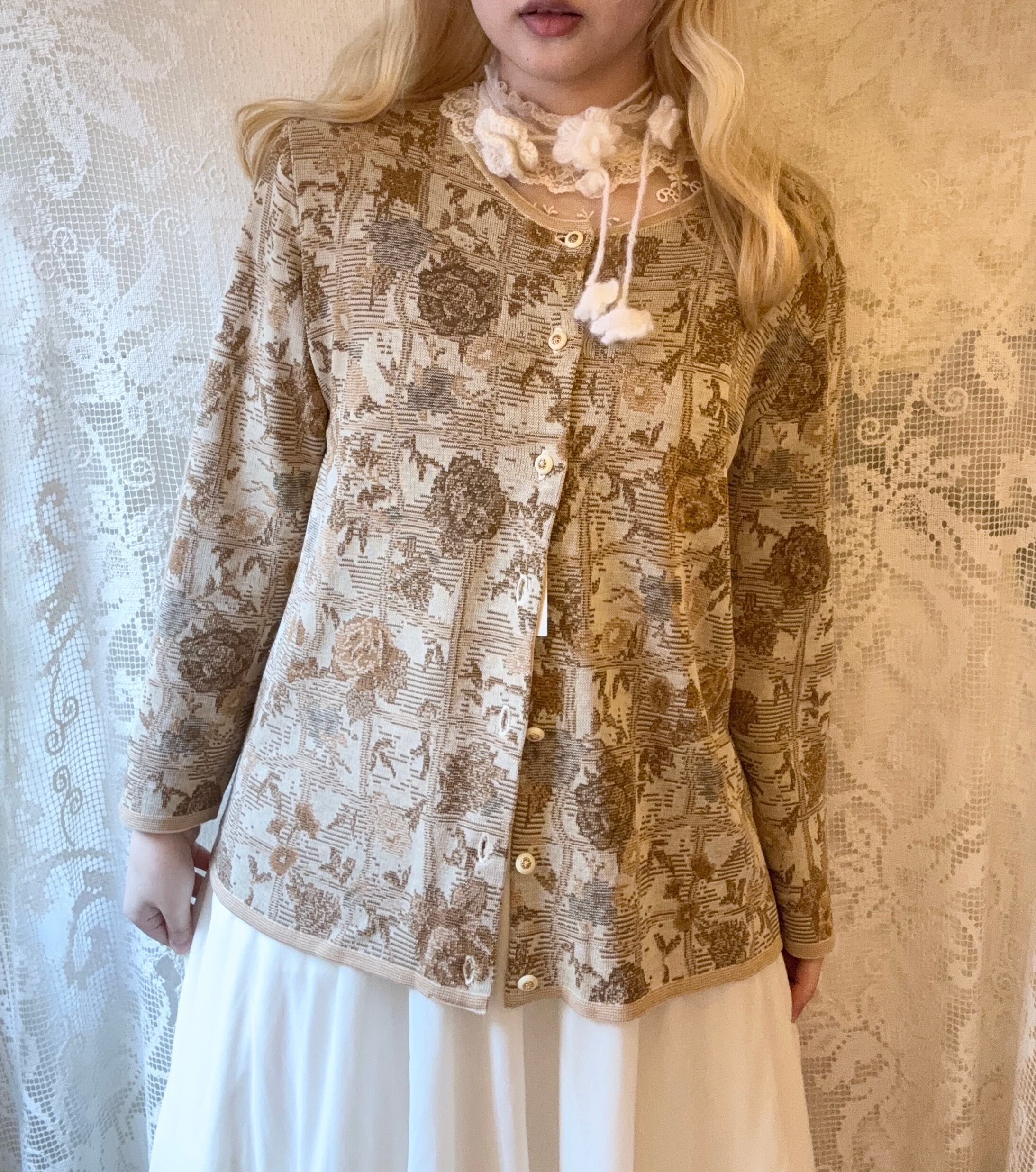 Vintage調の柄が可愛いジャガードニットカーディガン˖ ࣪⊹