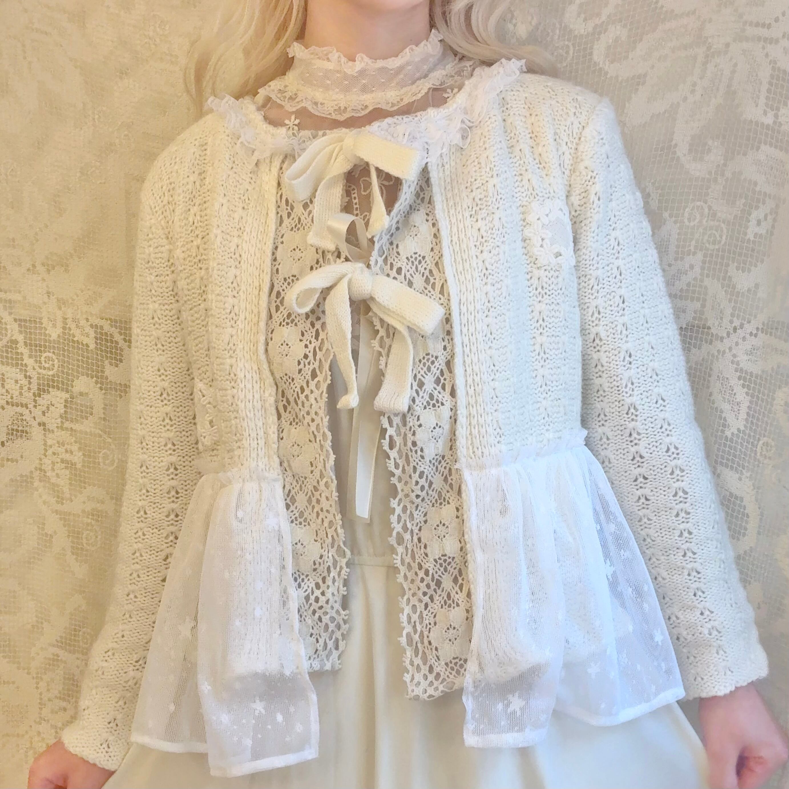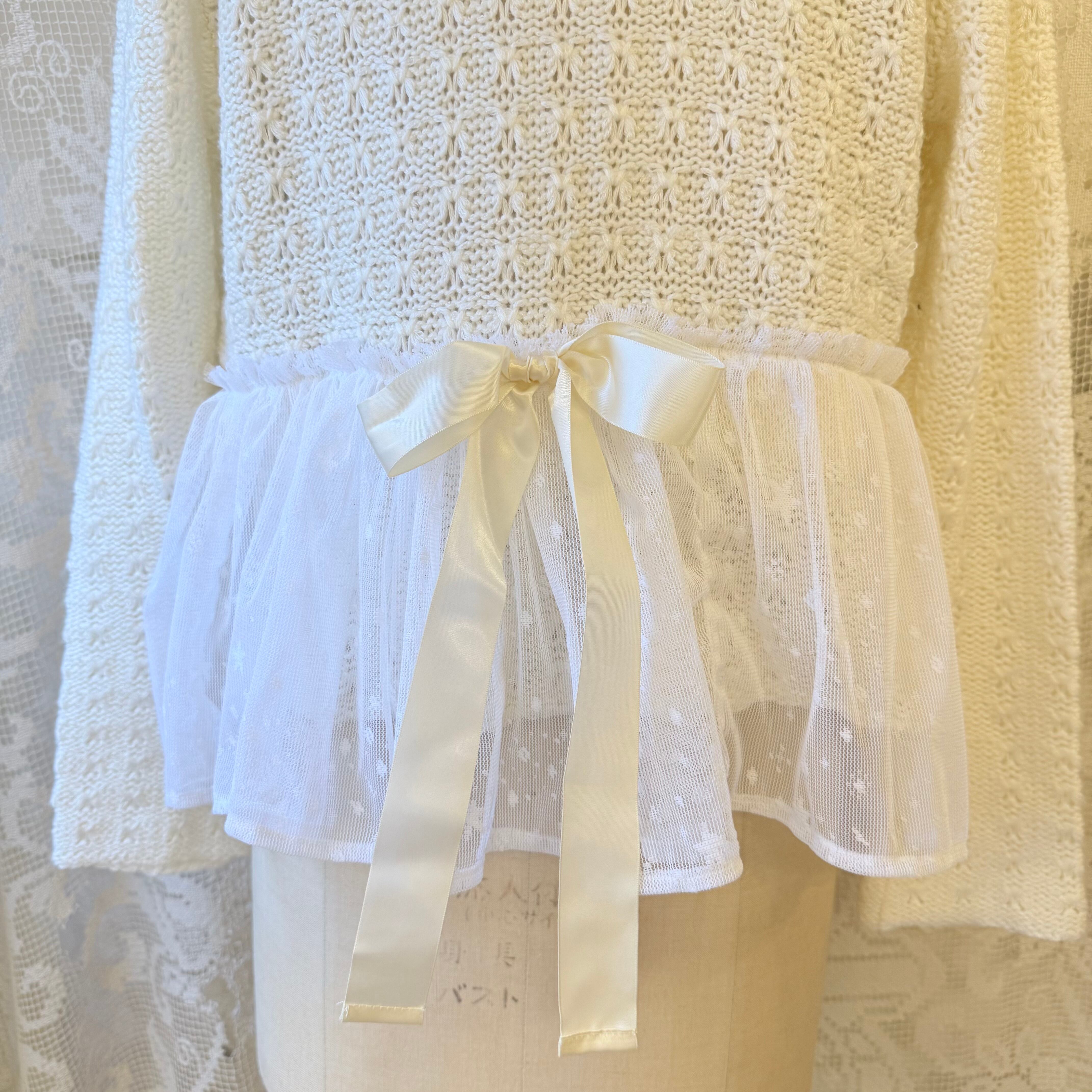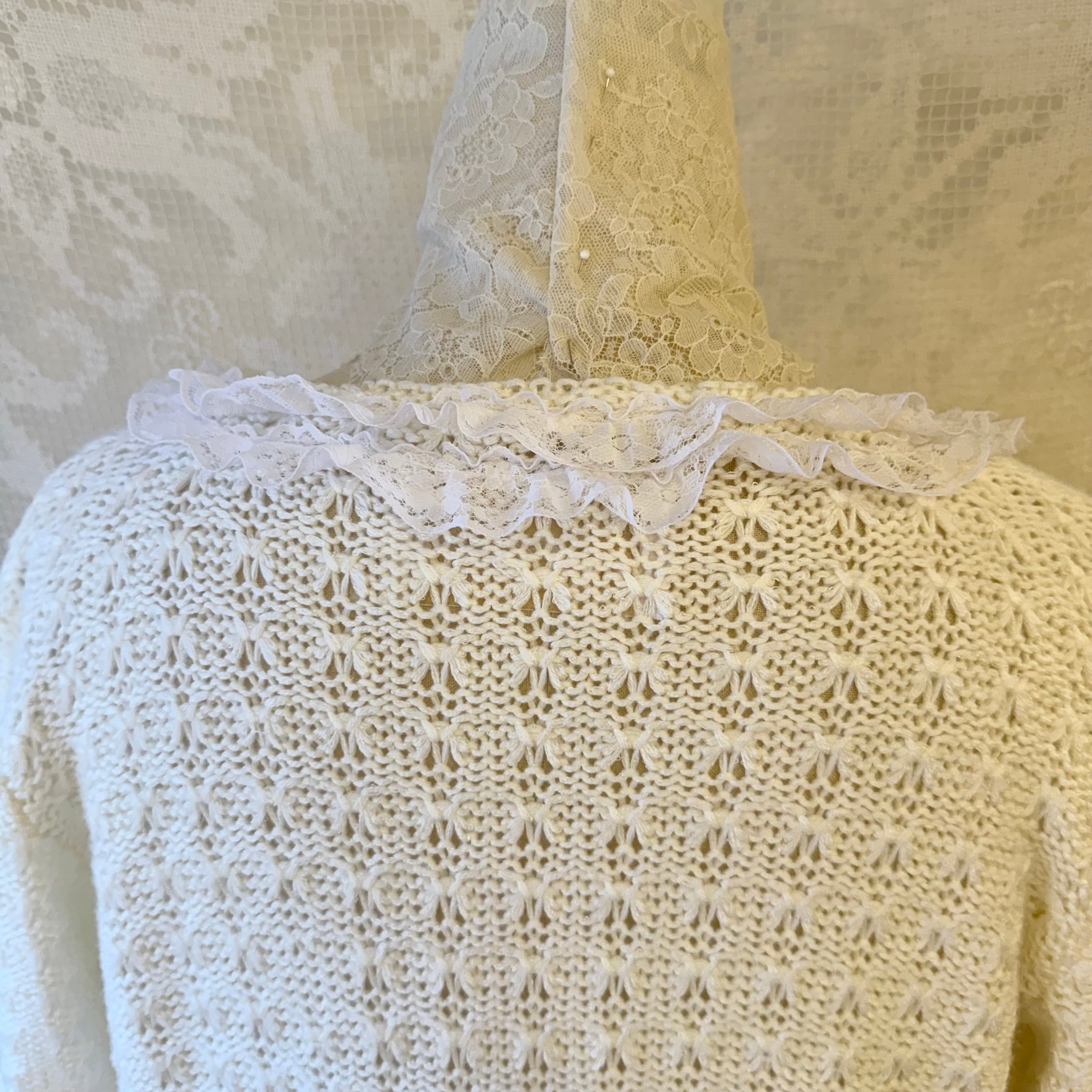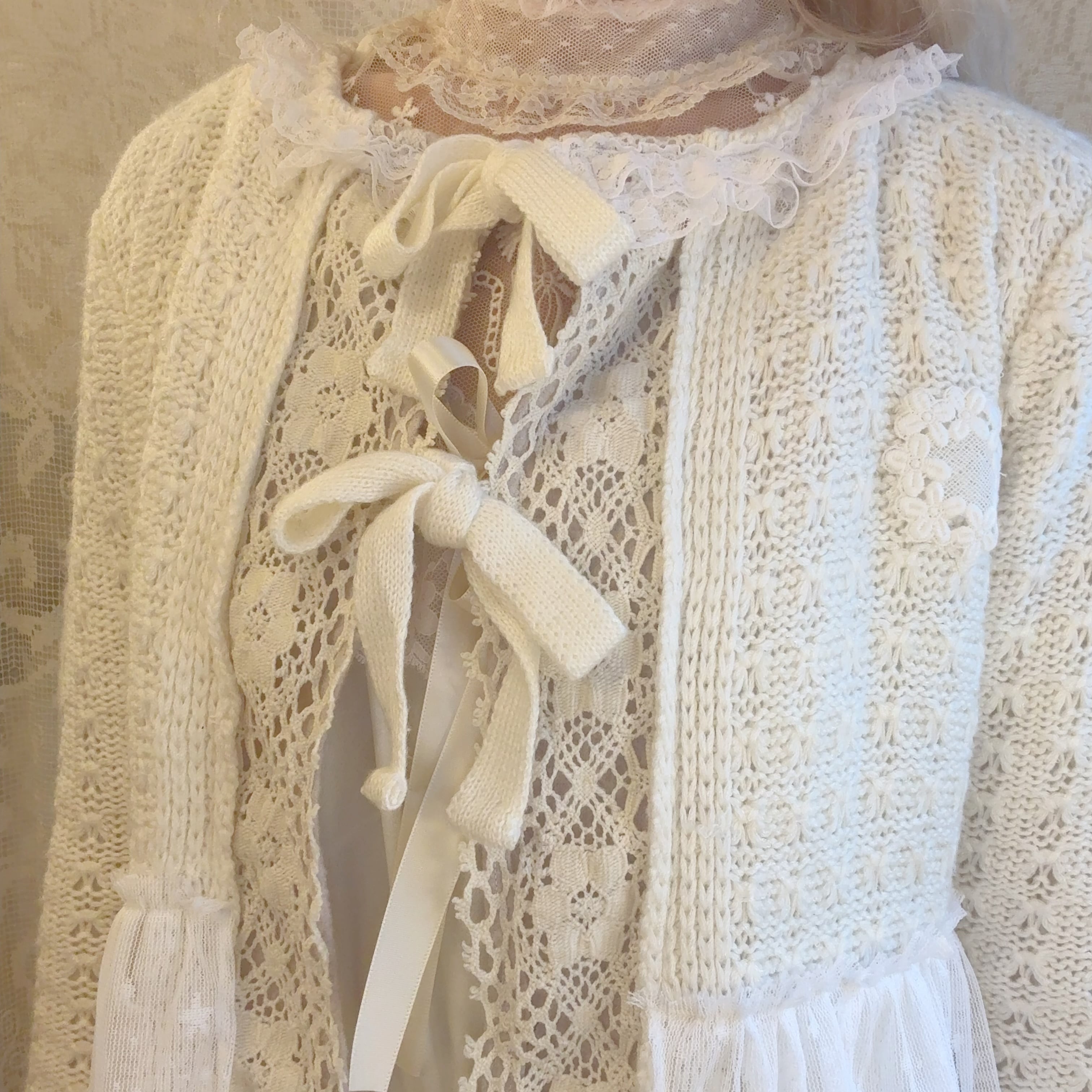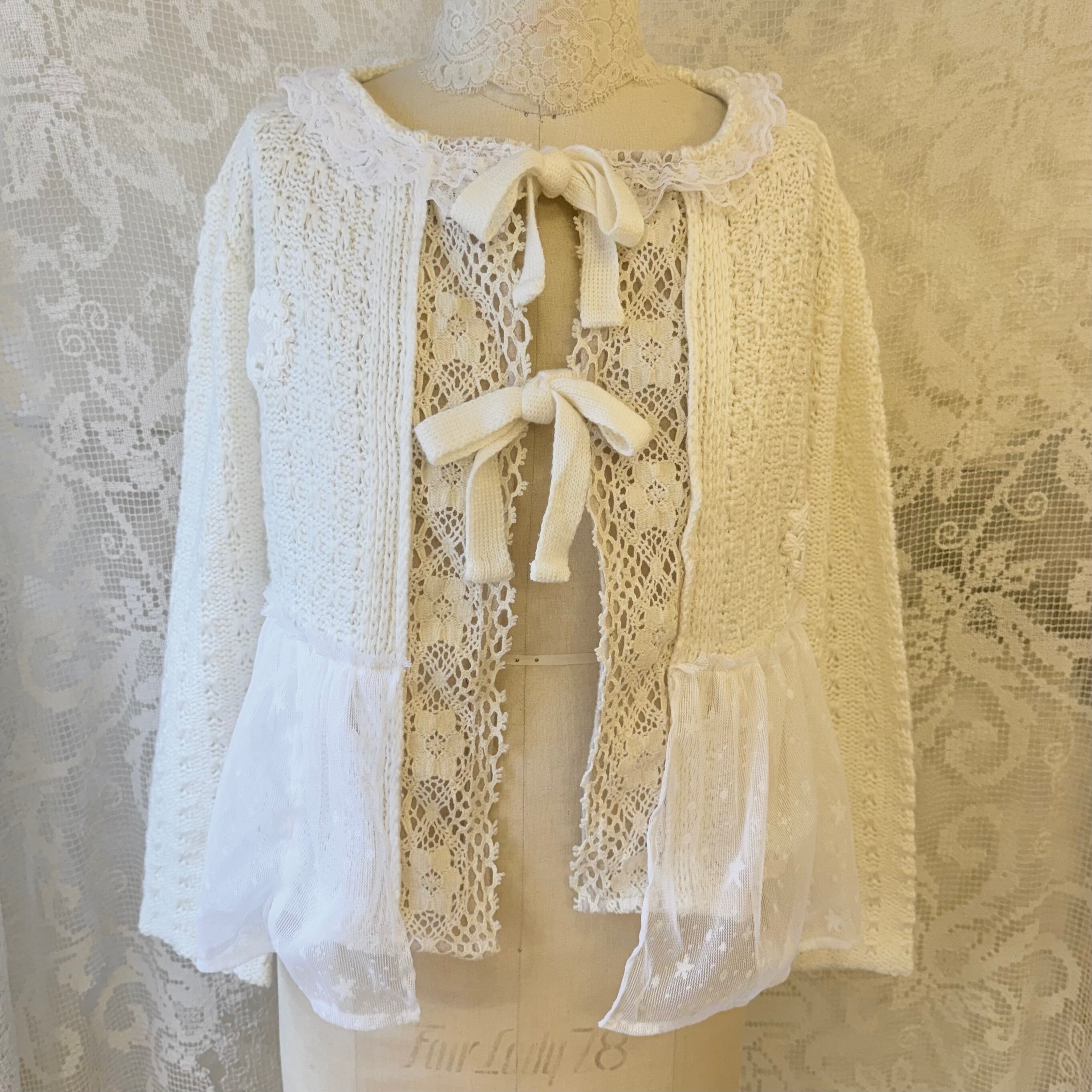 usedの春ニットにvintageレース等を装飾したリメイクカーディガン。