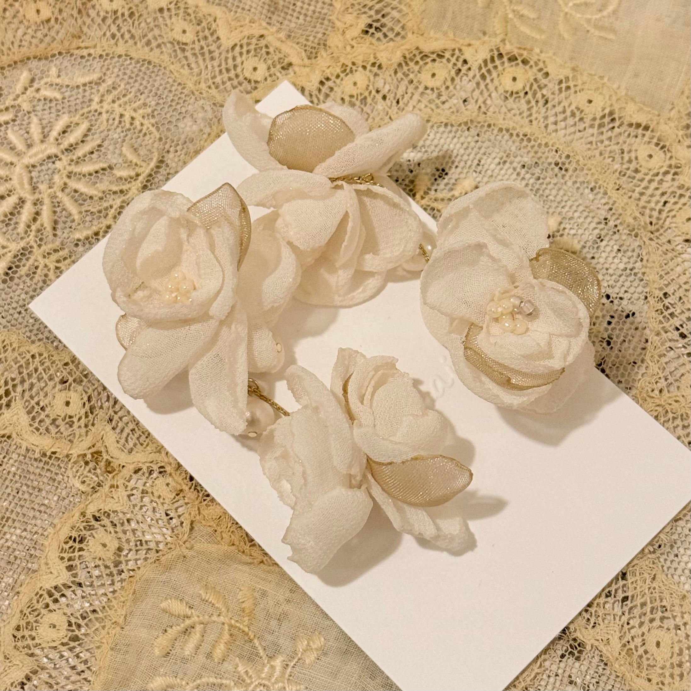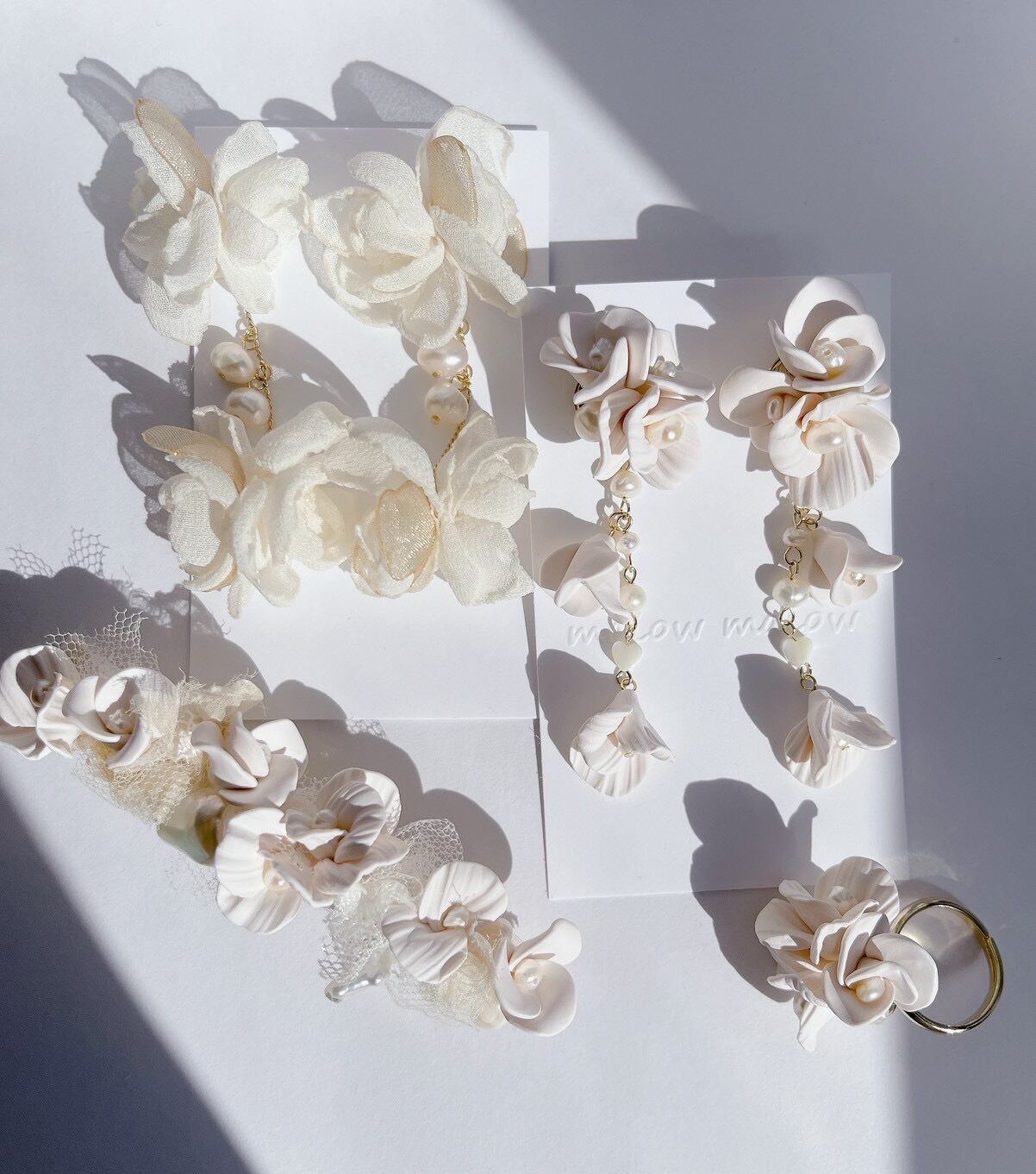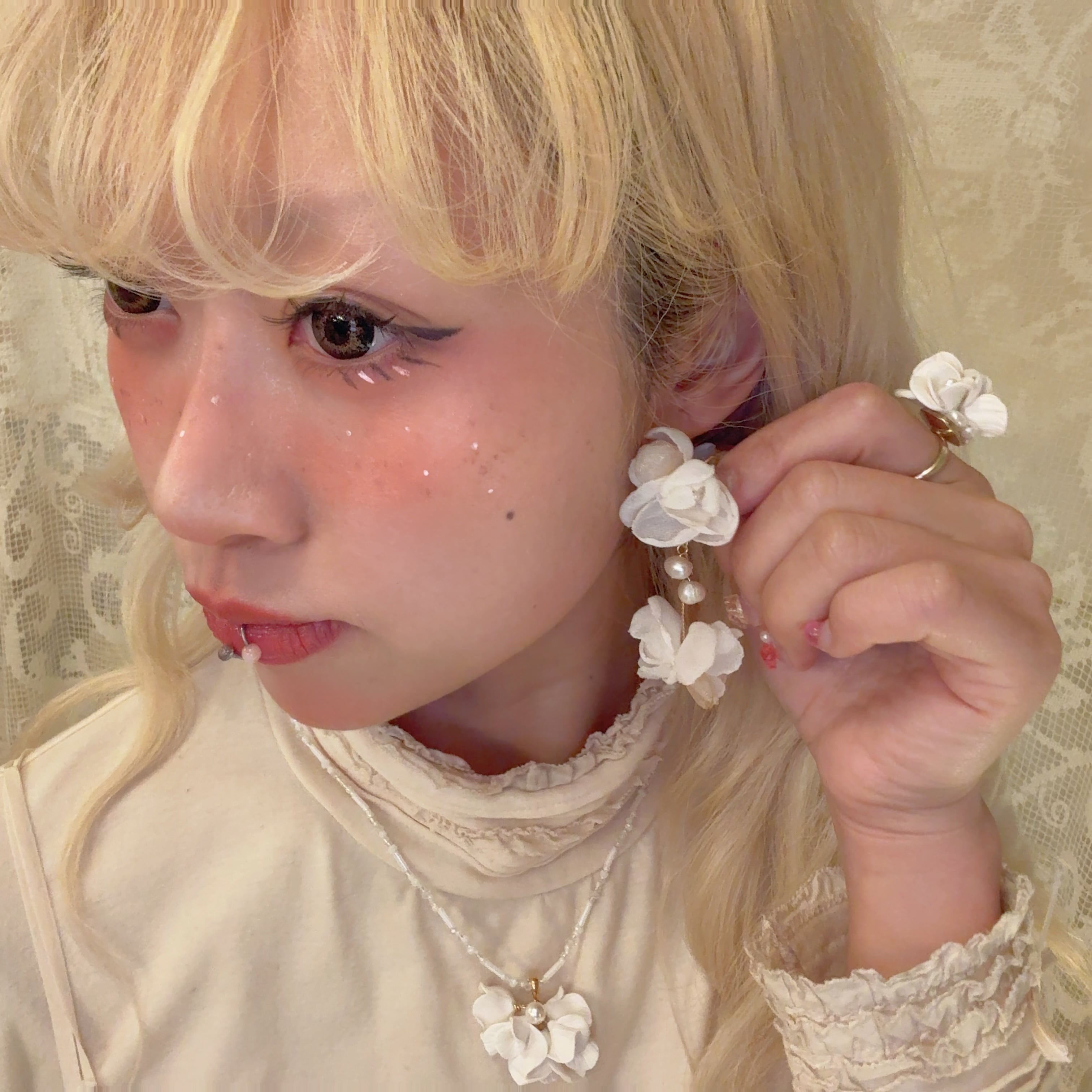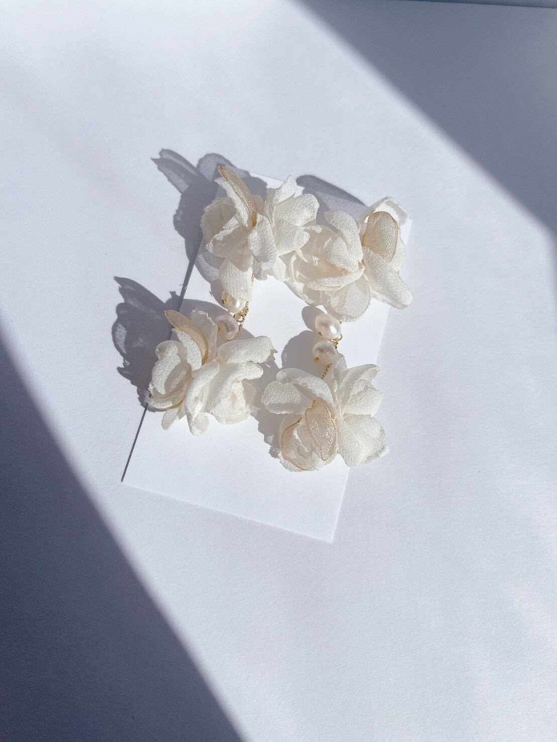 花びら一枚一枚のパーツからハンドメイドで制作した繊細なデザインのピアス♡ ˖ ࣪⊹