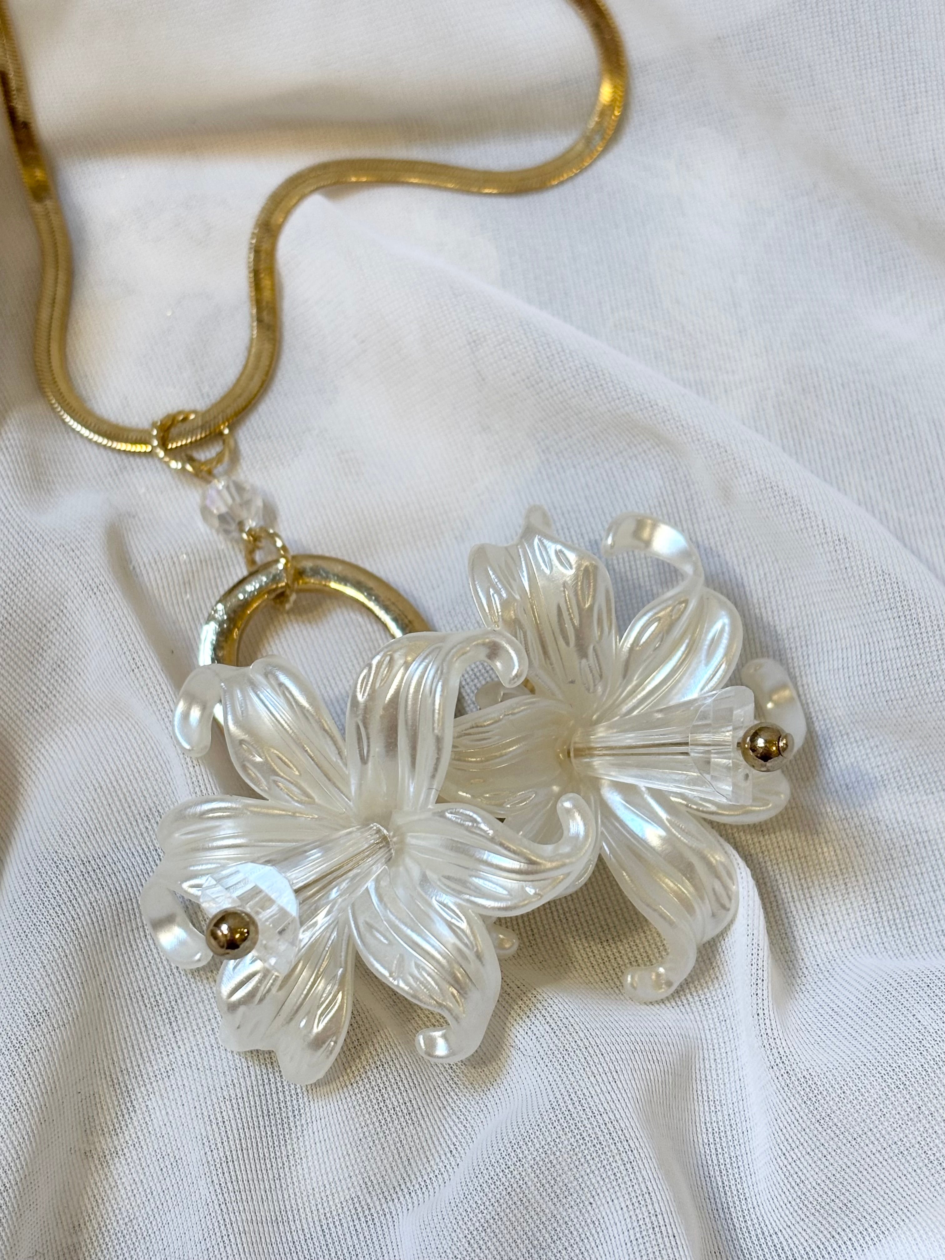 大きなTwin Lilyのモチーフがゆらりと輝くチェーンネックレス