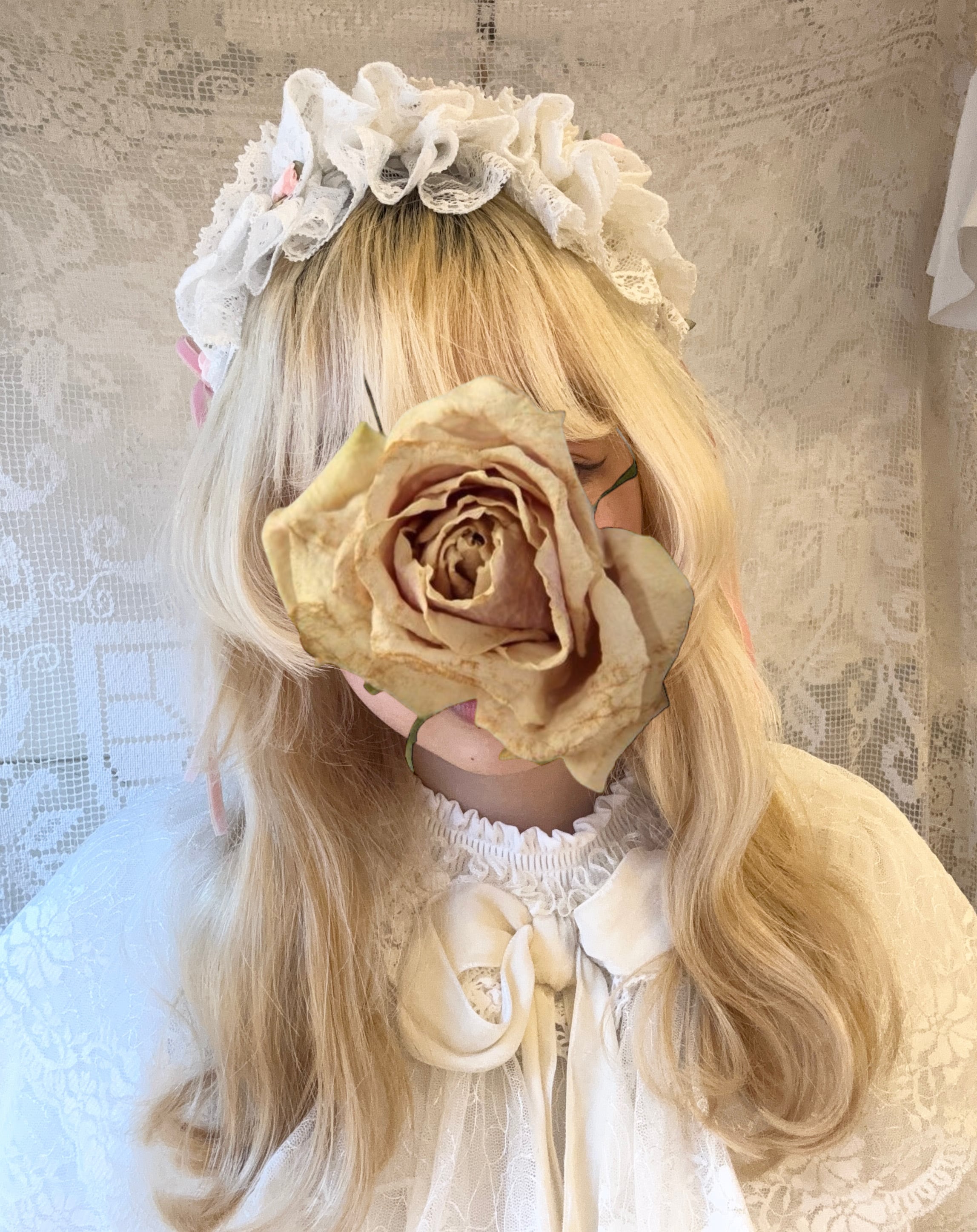 PinkのRibbonとRose…Lovelyなデザインが可愛いヘッドドレス。