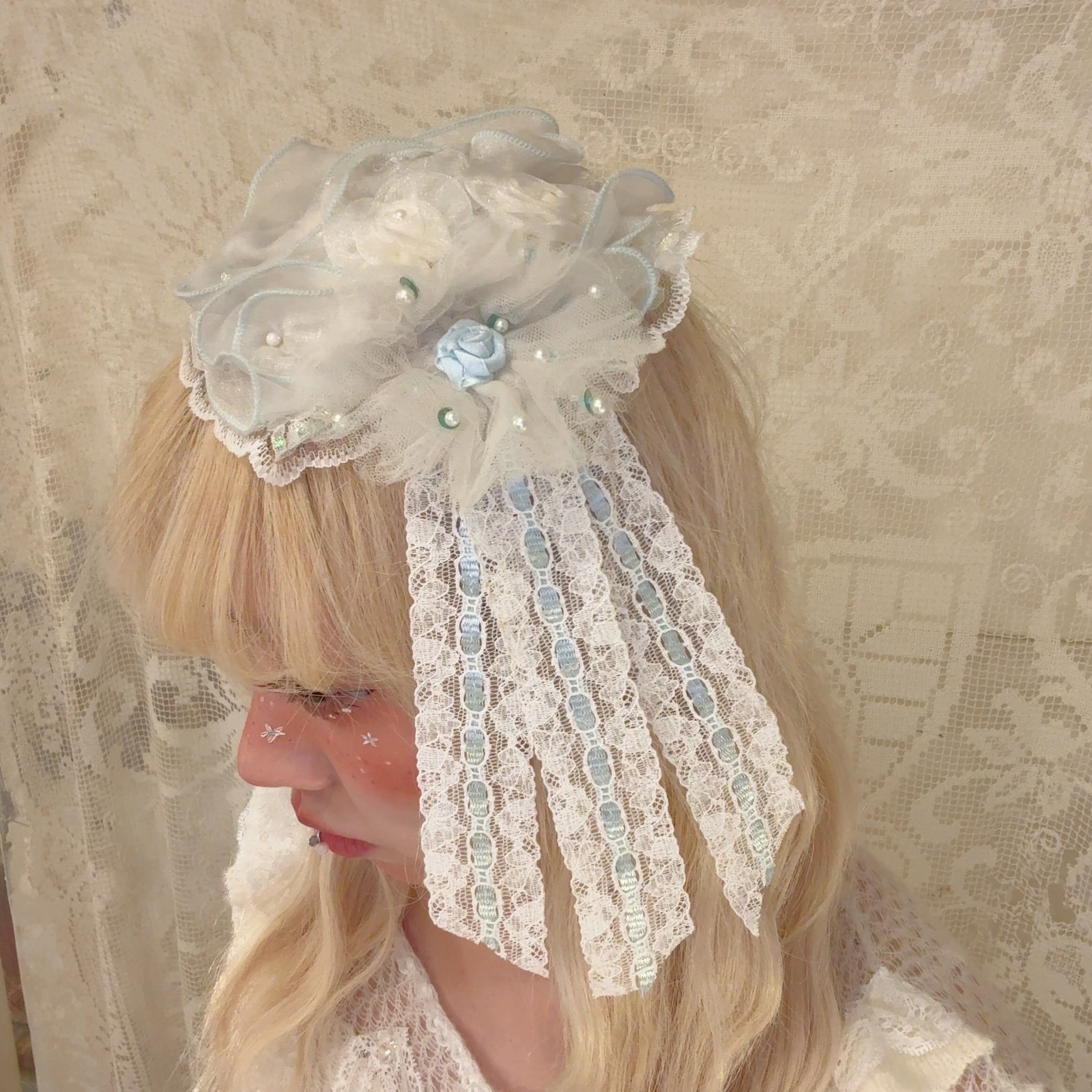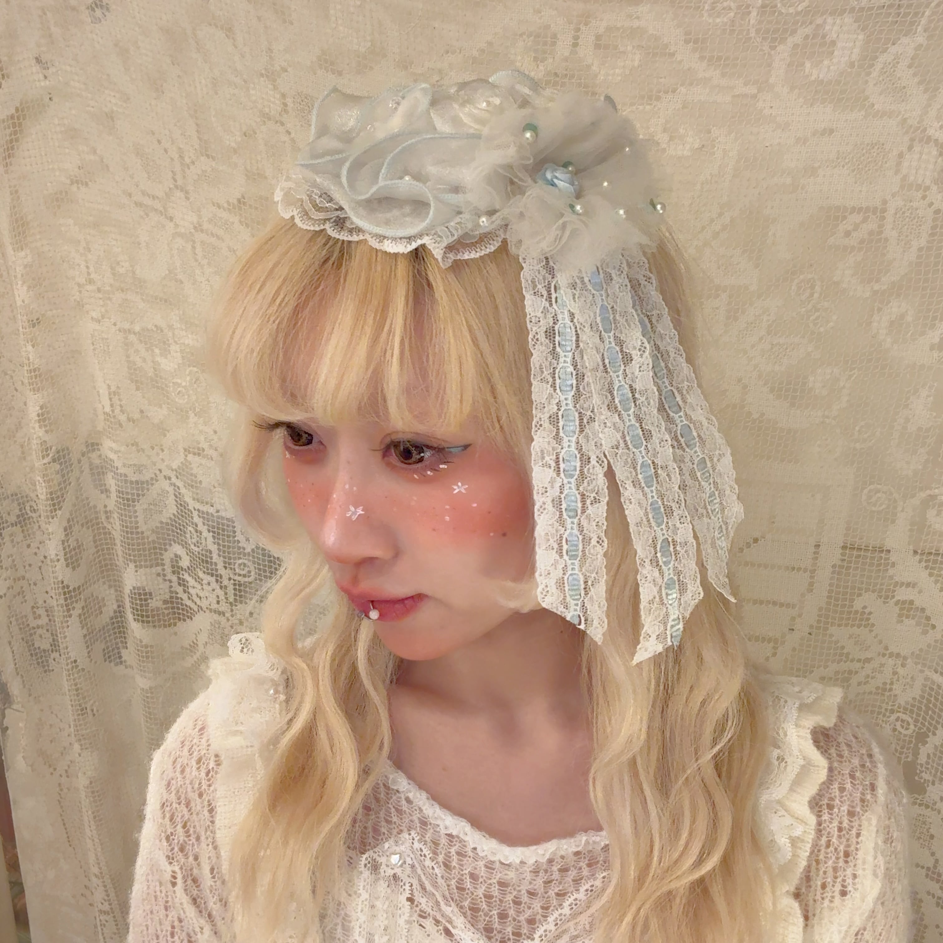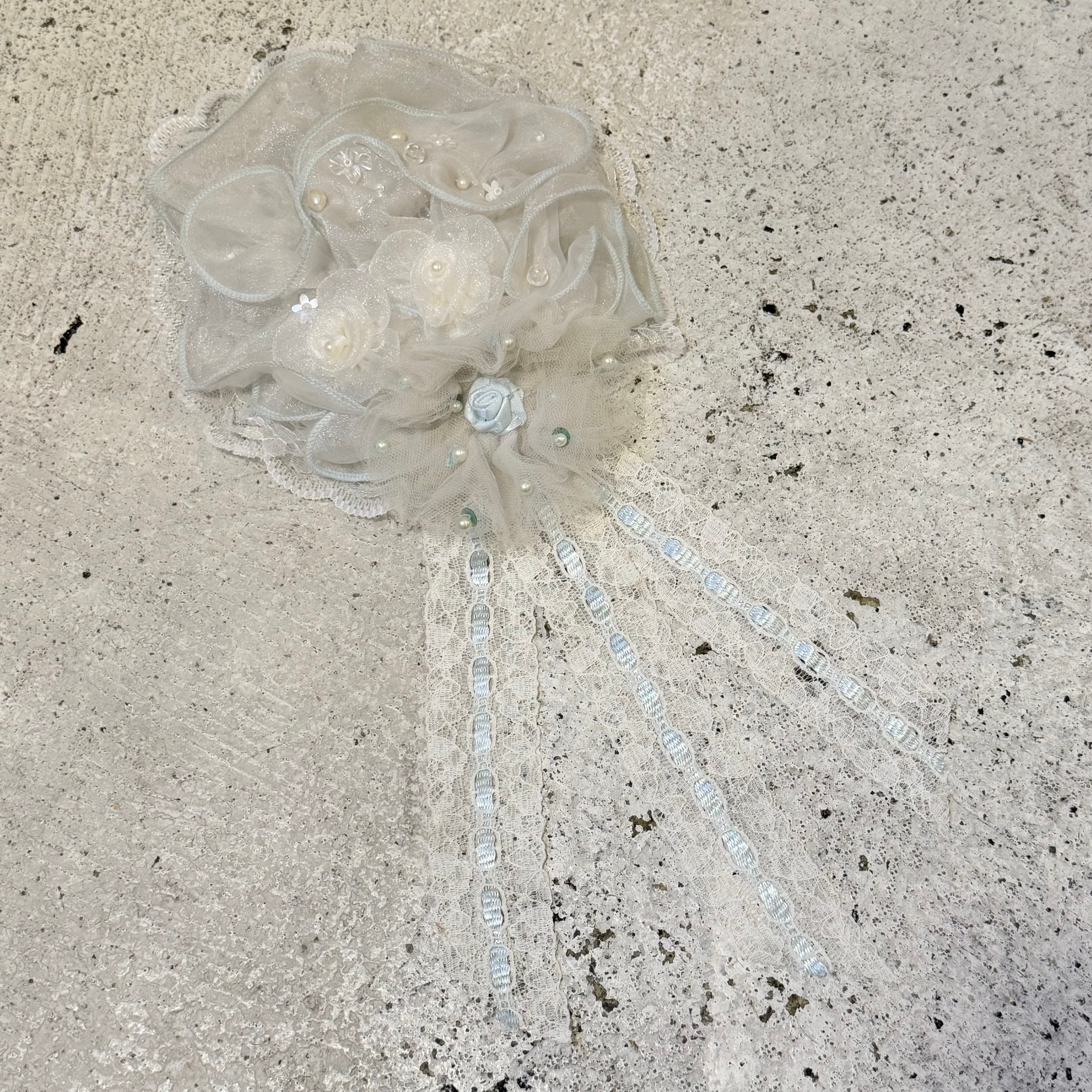 vintage dressのカケラやアンティークレースをコラージュした繊細な装飾が美しいバレッタです。˖ ࣪⊹