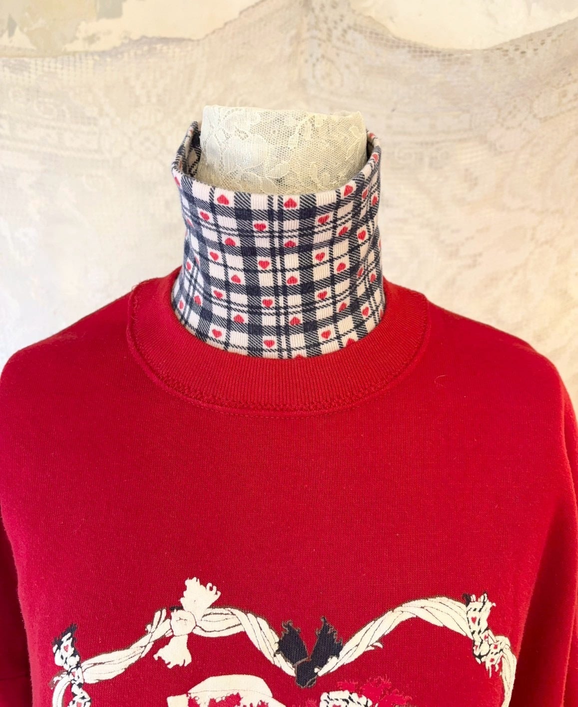 赤×ネイビーのカントリー系の色合いやハートたっぷりのデザインがとても可愛いです♡
