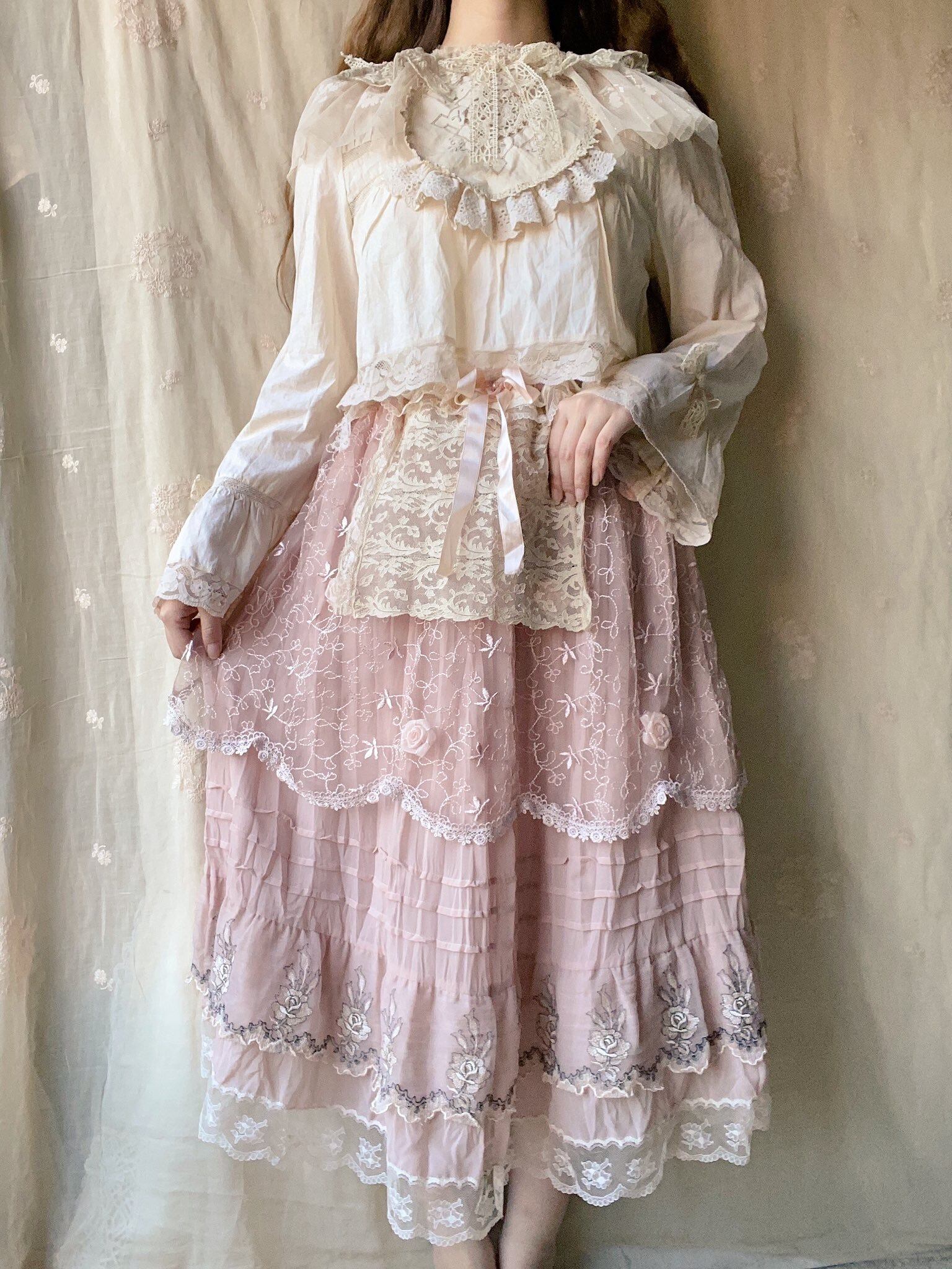 薔薇にまみれたくすみピンクのスカート。