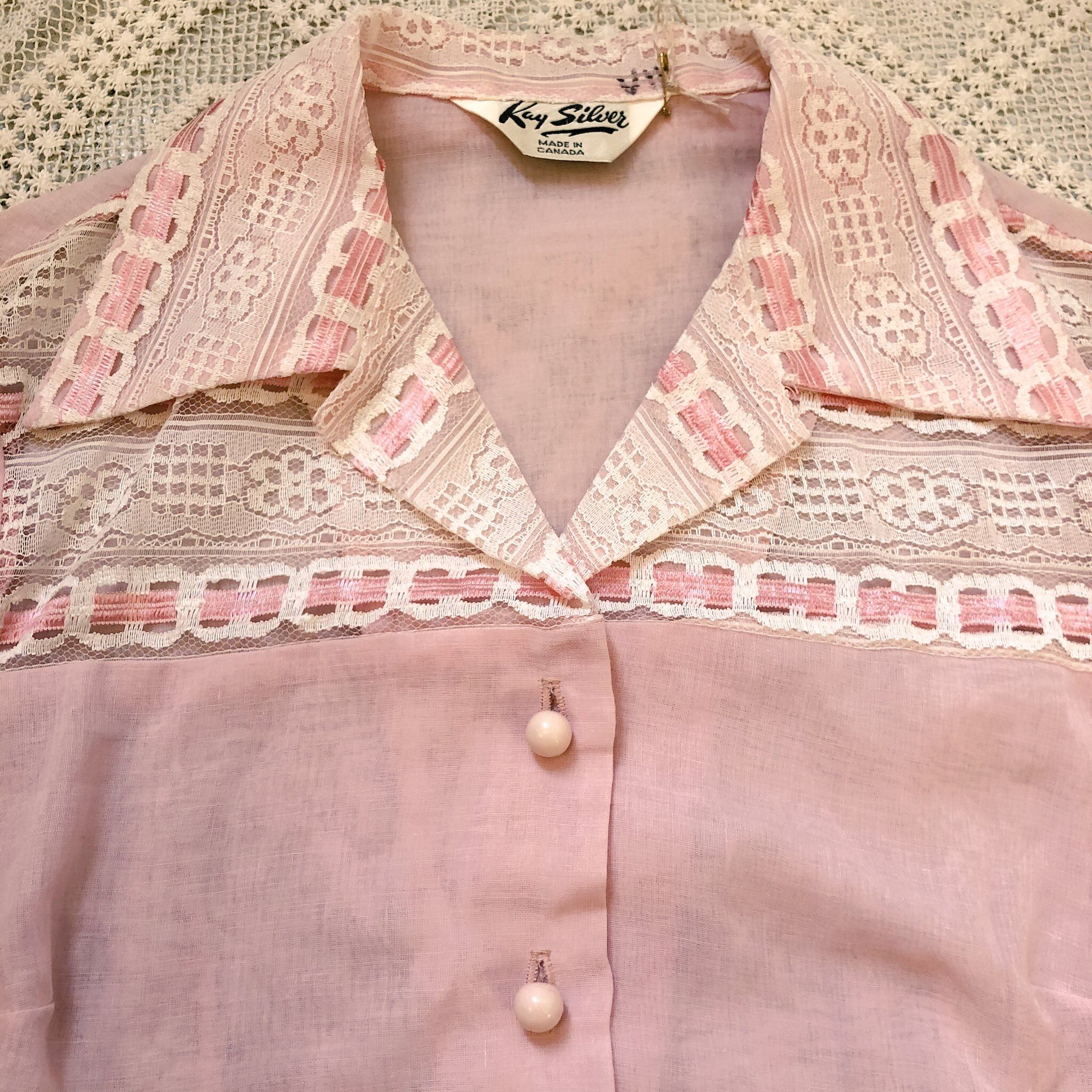 襟と袖周りがリボンを通してあるようなデザインのレースになっていてとっても可愛いです。