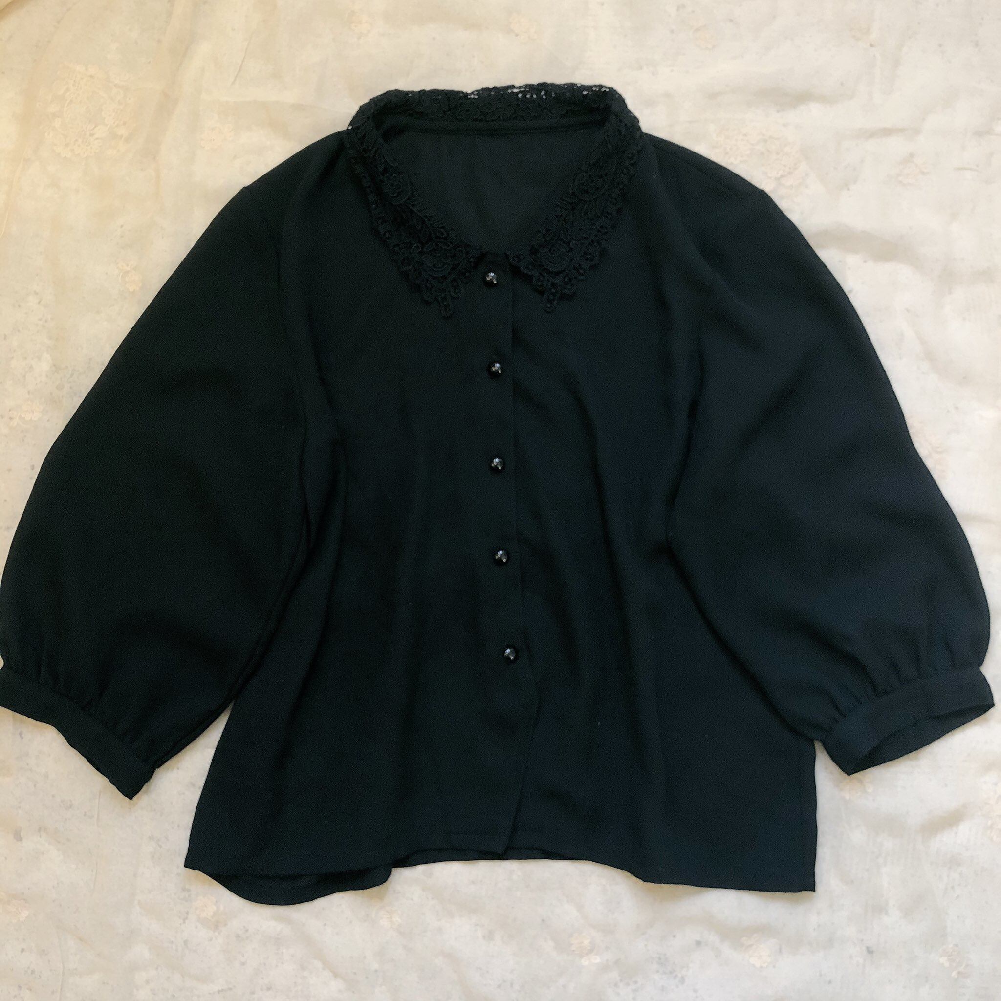 シンプルですがちょこんとしたレース襟に球体のボタンがついていて可愛いです。