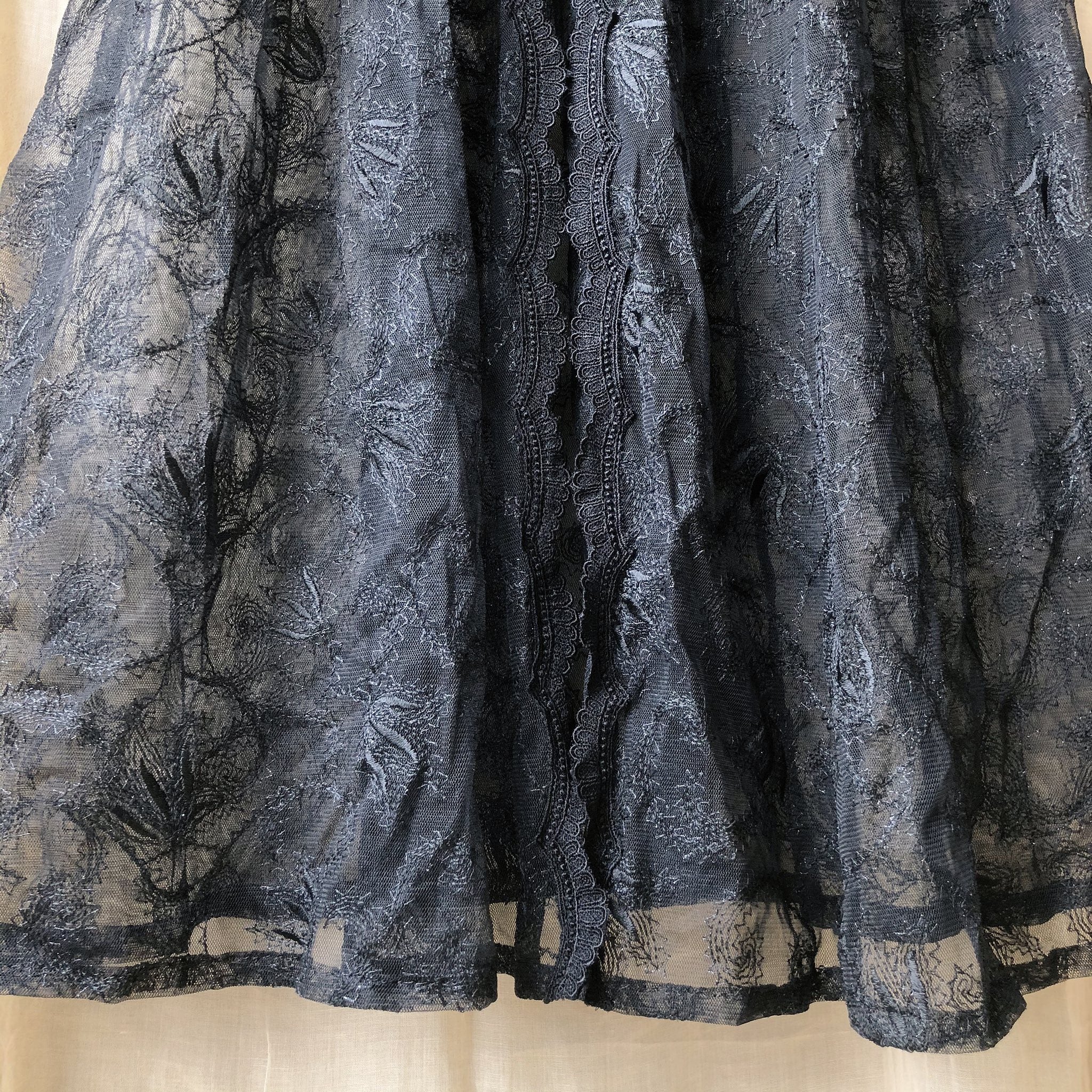 チュール生地に葉っぱのような模様が少し光沢のある繊細な糸で刺繍されています。