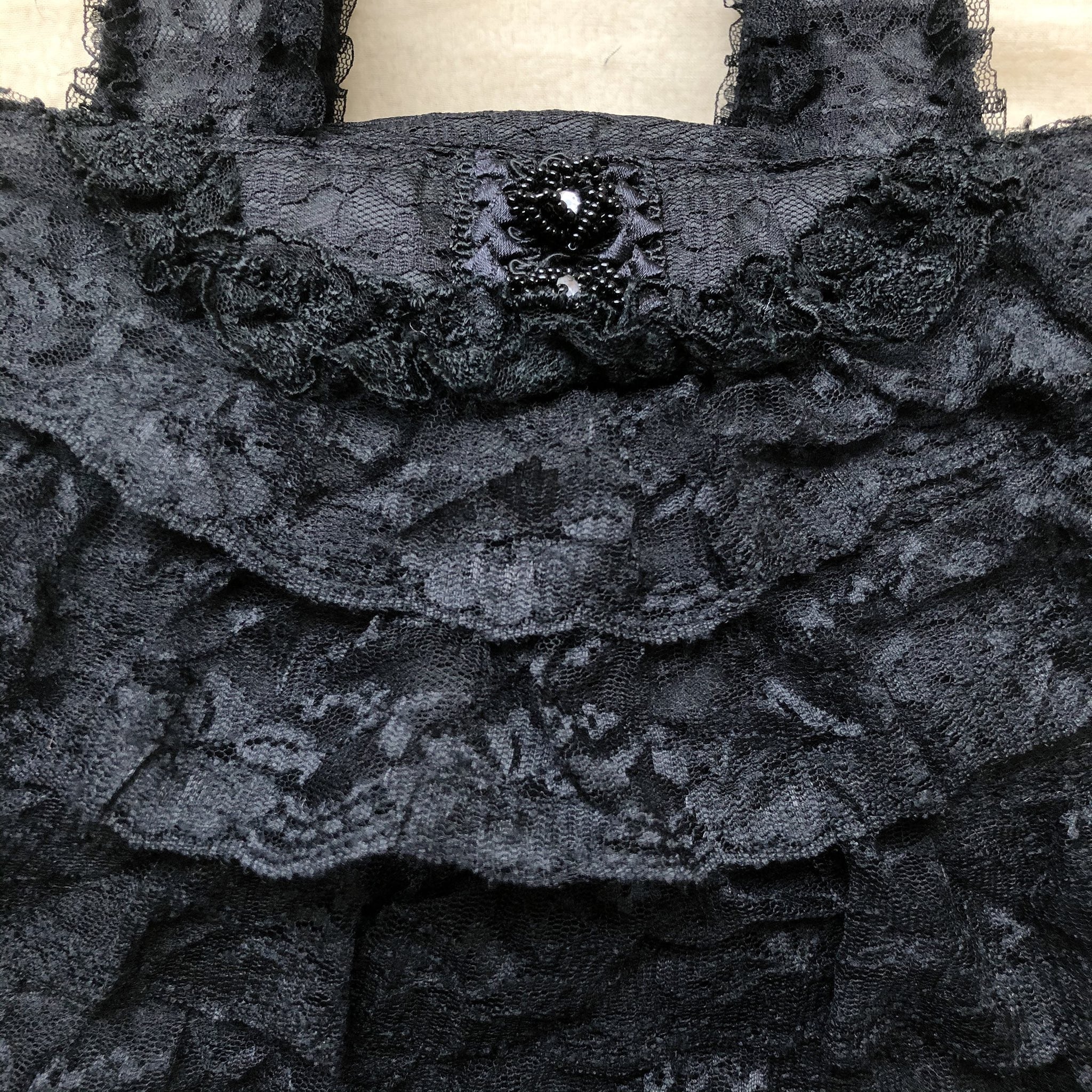ブラックの総レースのミニボストンバッグ。