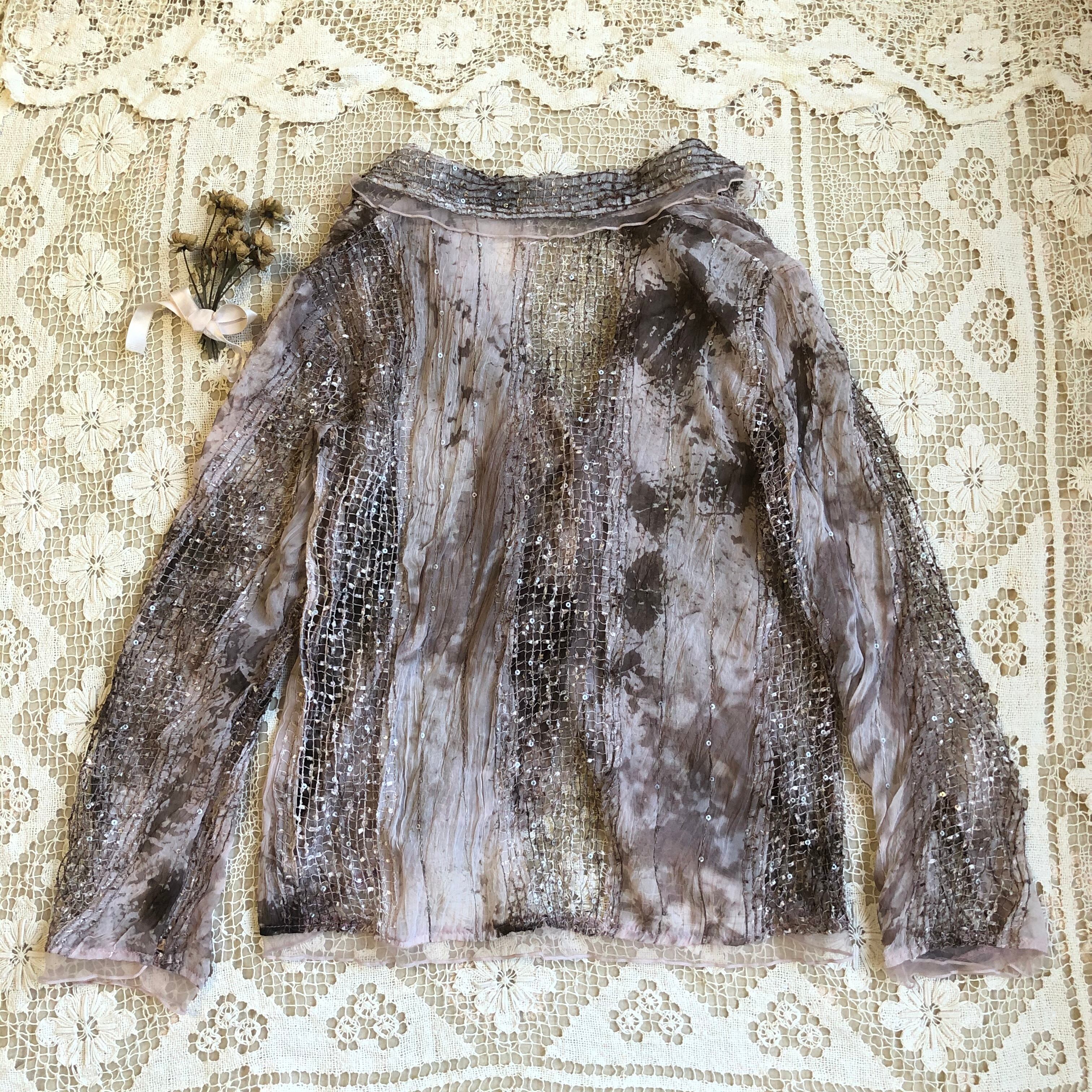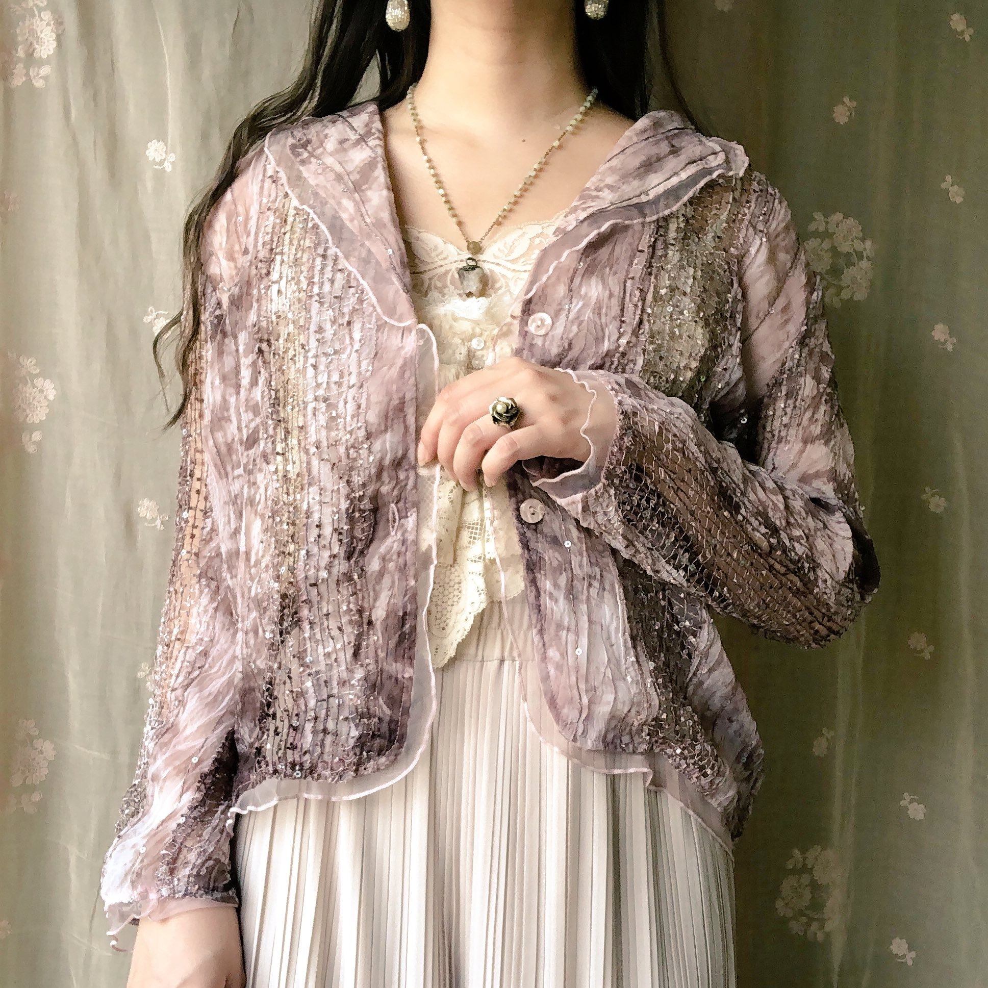 シフォン系の生地とざっくりした編みめのmixカーディガンです。