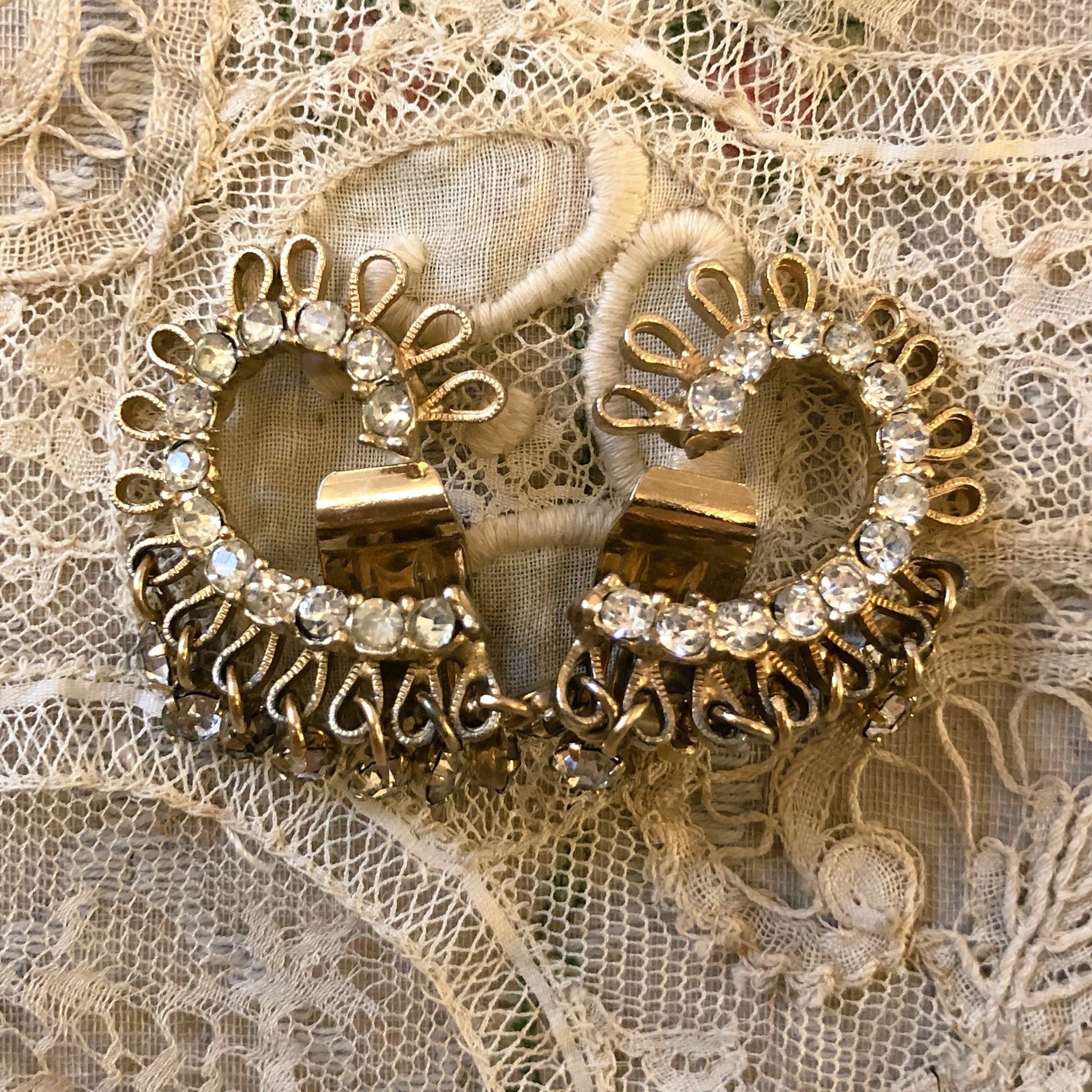 繊細なゴールドの湾曲のところにシャラシャララインストーンがついていて動くと揺れるのが可愛いです。