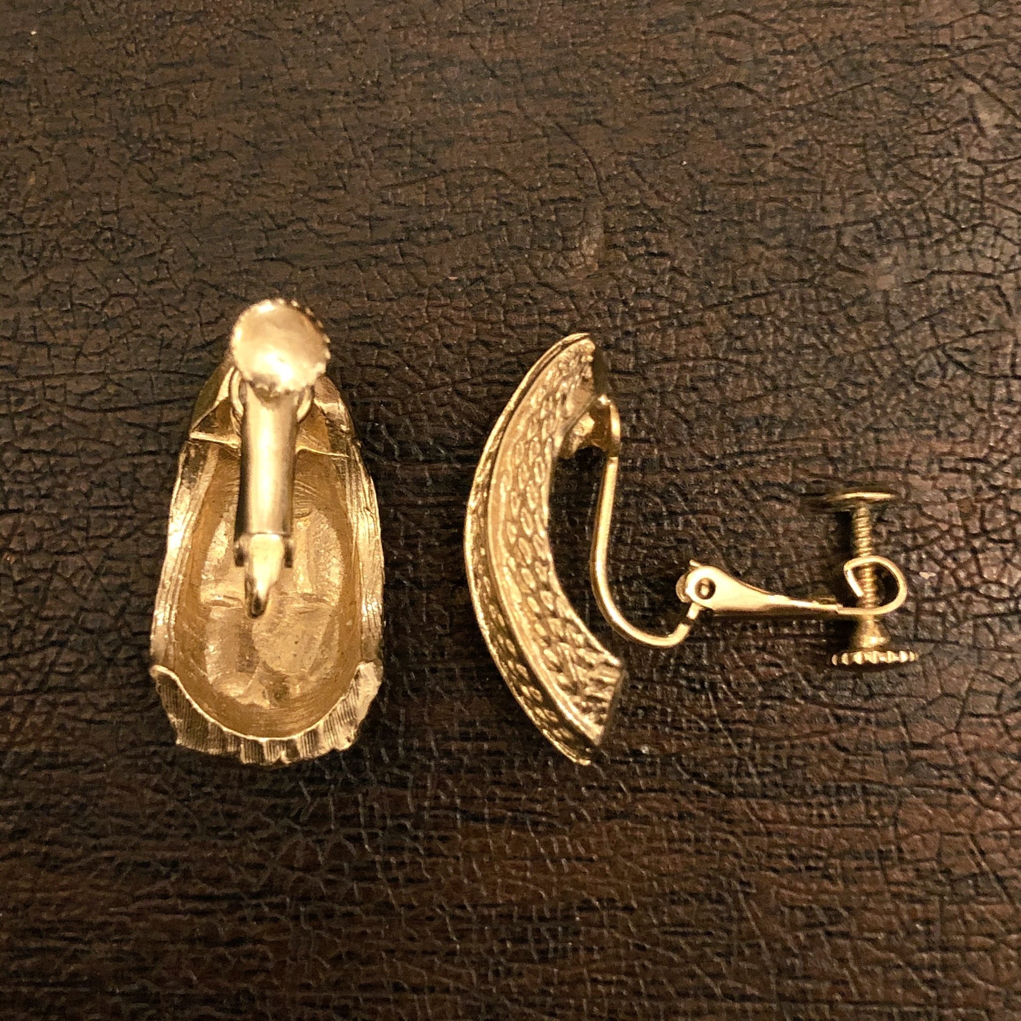 湾曲した立体的なゴールドモチーフのイヤリング。シンプルで使いやすいデザインです。