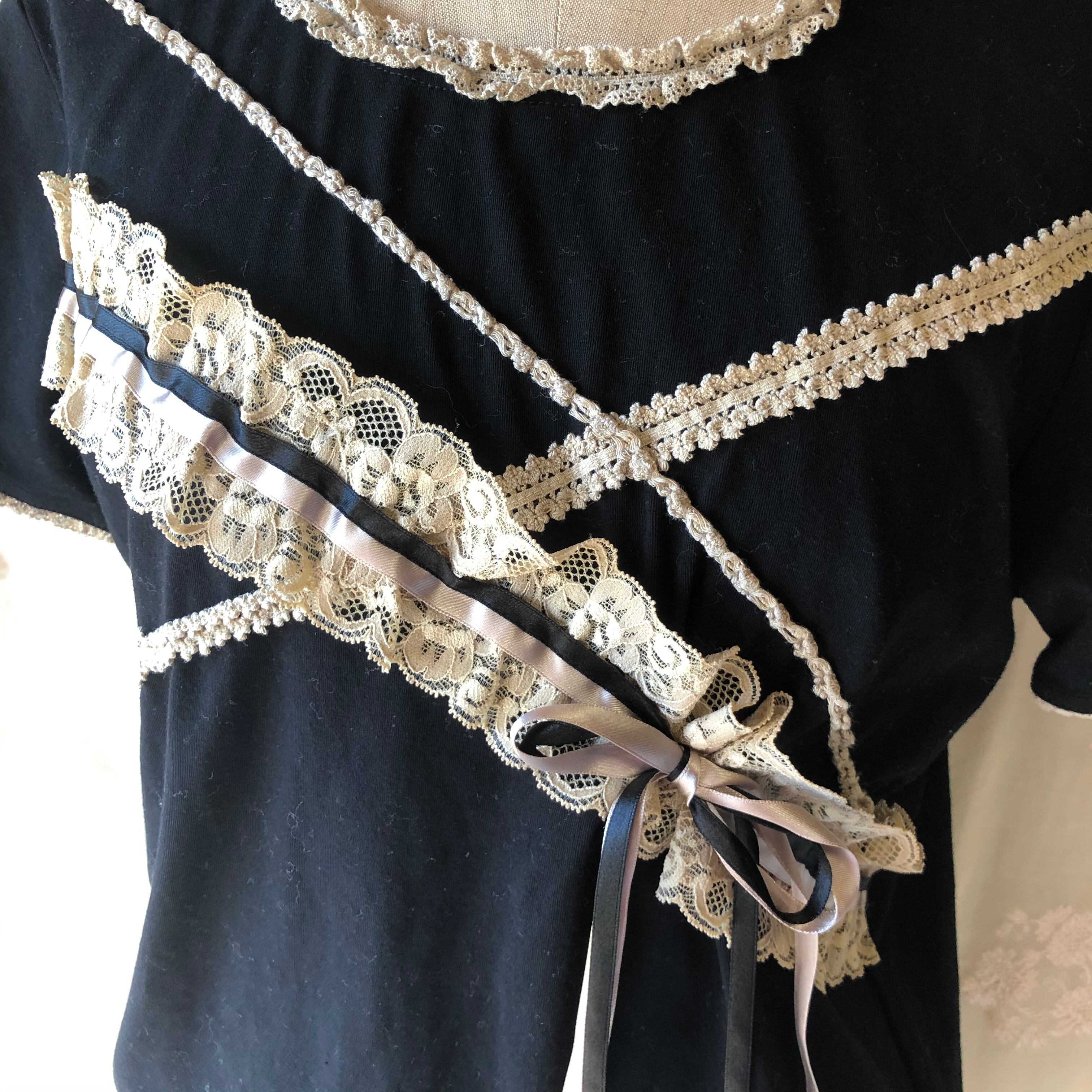 黒地にベージュのレースやリボンの装飾が可愛いトップス。