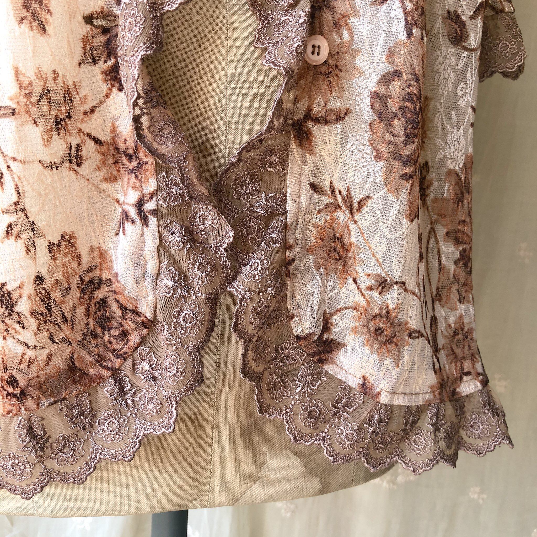 ブラウンのお花模様のレース生地が可愛いゆったりカーディガン。