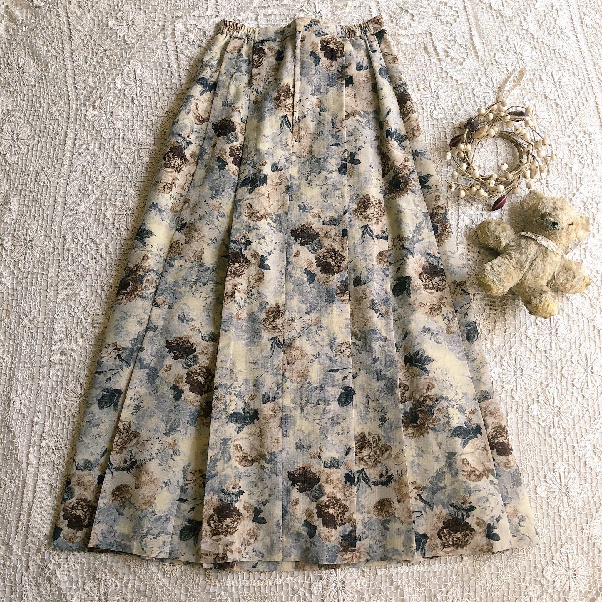 ベージュに優しいブラウンの花柄が可愛いスカート。